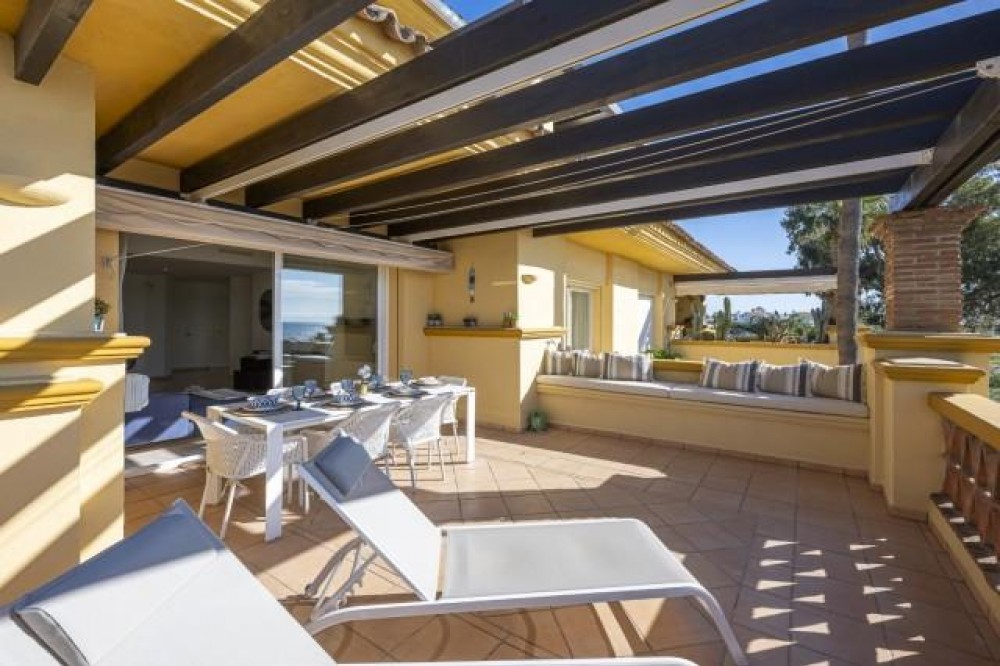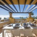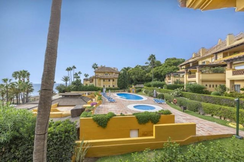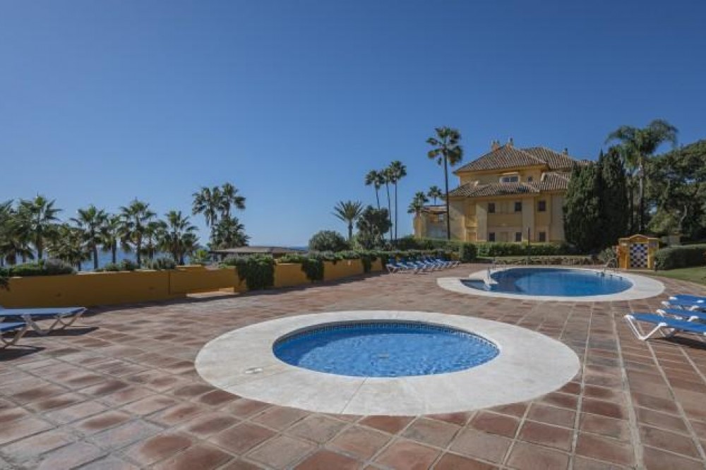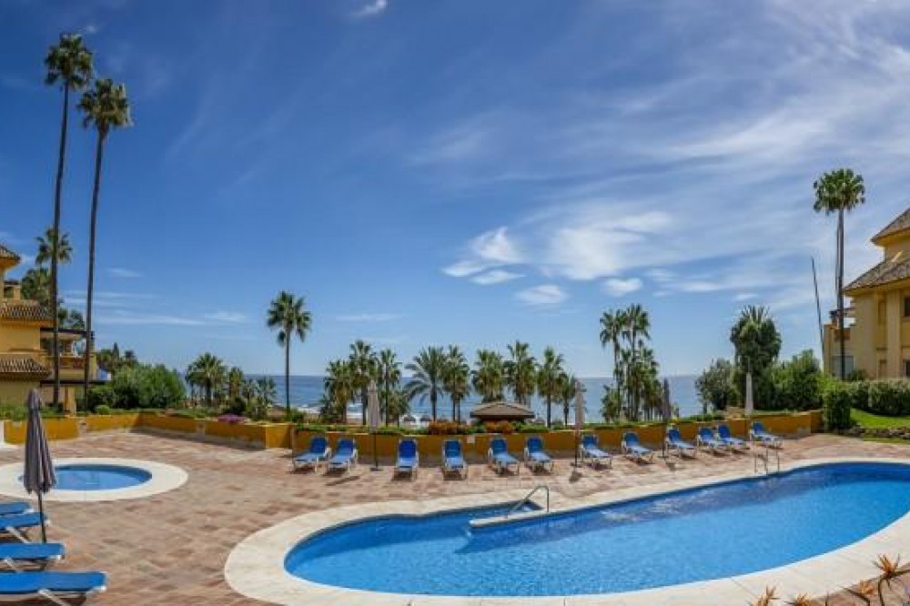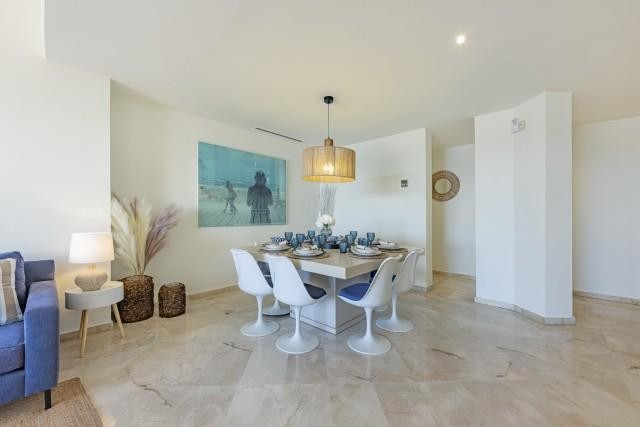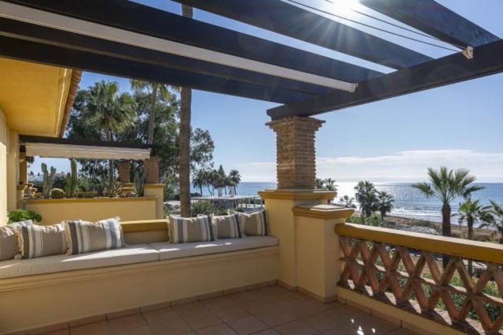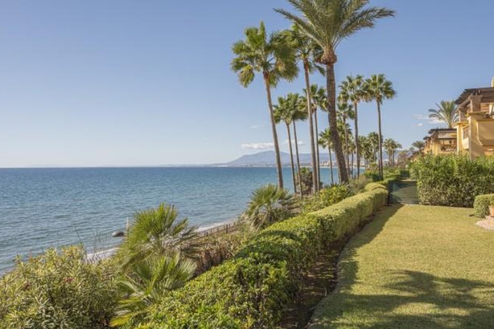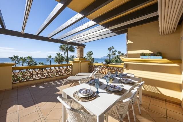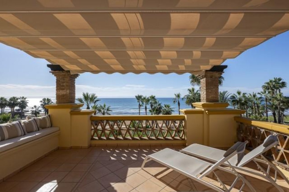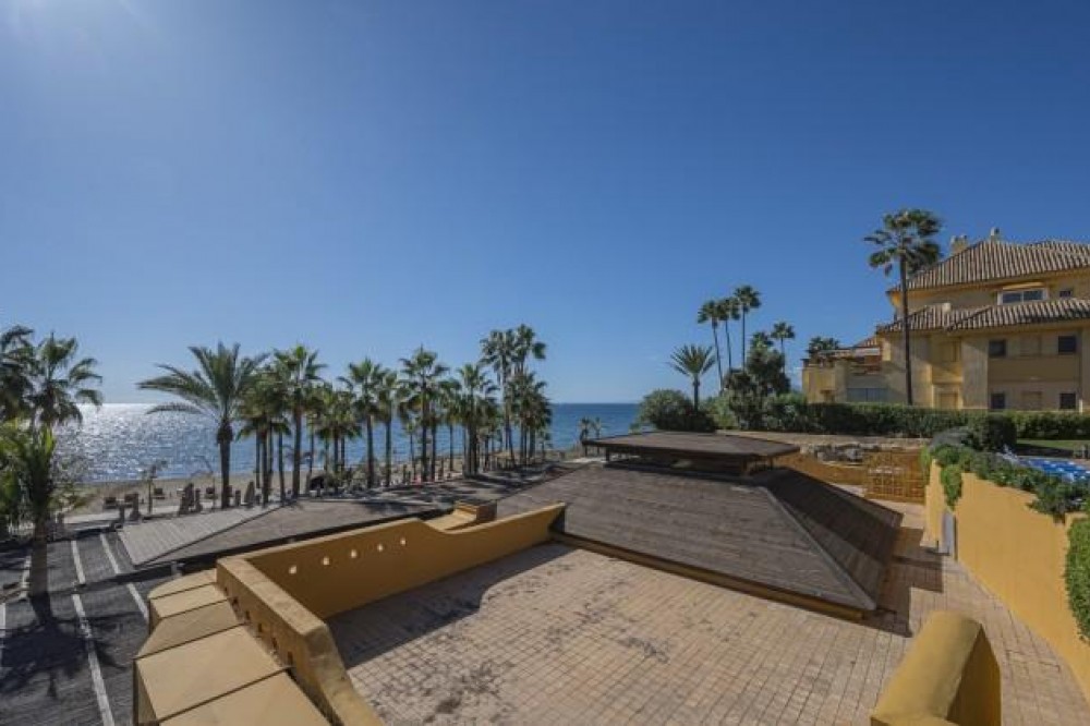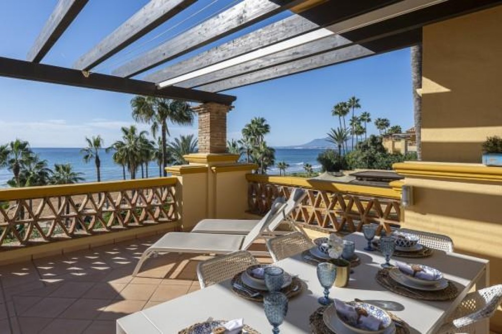 - This stunning 3-bedroom apartment offers breathtaking sea views and is situated in a serene beachfront community, nestled around the prestigious Rio Real Golf Course in East Marbella. Bathed in natural light, the apartment features an inviting entrance hall, a fully equipped kitchen, a spacious living and dining area with panoramic views, three generously sized bedrooms, and three elegant bathrooms. The living area opens onto a fabulous 45 m² southfacing terrace, perfect for al fresco dining and soaking in the Mediterranean ambience. Two of the bedrooms boast direct sea views and en-suite bathrooms, while the third has its own private terrace. The property includes a convenient parking space and two storage rooms. The Rio Real Playa complex is a haven of lush gardens and two communal swimming pools. It is only a 5-minute stroll to the renowned Trocadero Beach Club and within proximity to the Rio Real Hotel & Golf Club and its exclusive amenities. Malaga International Airport is just a 30-minute drive away. The Rio Real Playa community enhances the living experience with two communal pools (one heated) and beautifully maintained garden areas. Courtesy parking for friends and guests is also available. Additional features include air conditioning, electric shutters, built-in wardrobes, a laundry room, double glazing, and a secure gated community. Experience the ultimate in beachfront living with this extraordinary apartment in Marbella East.