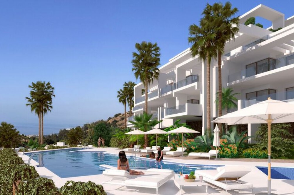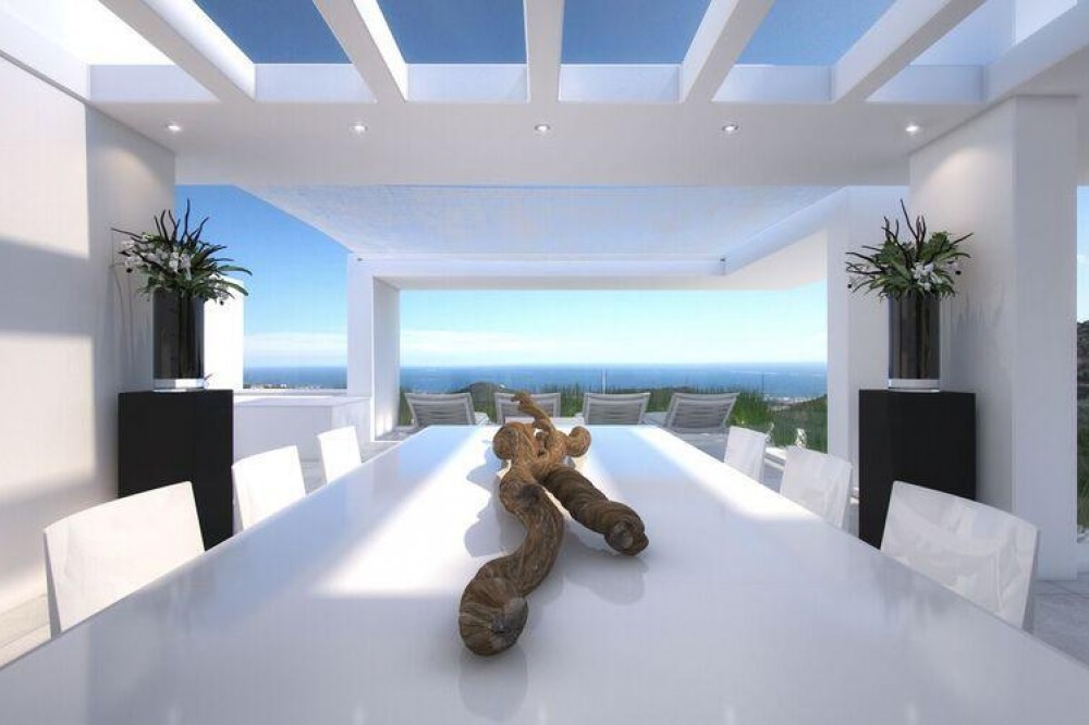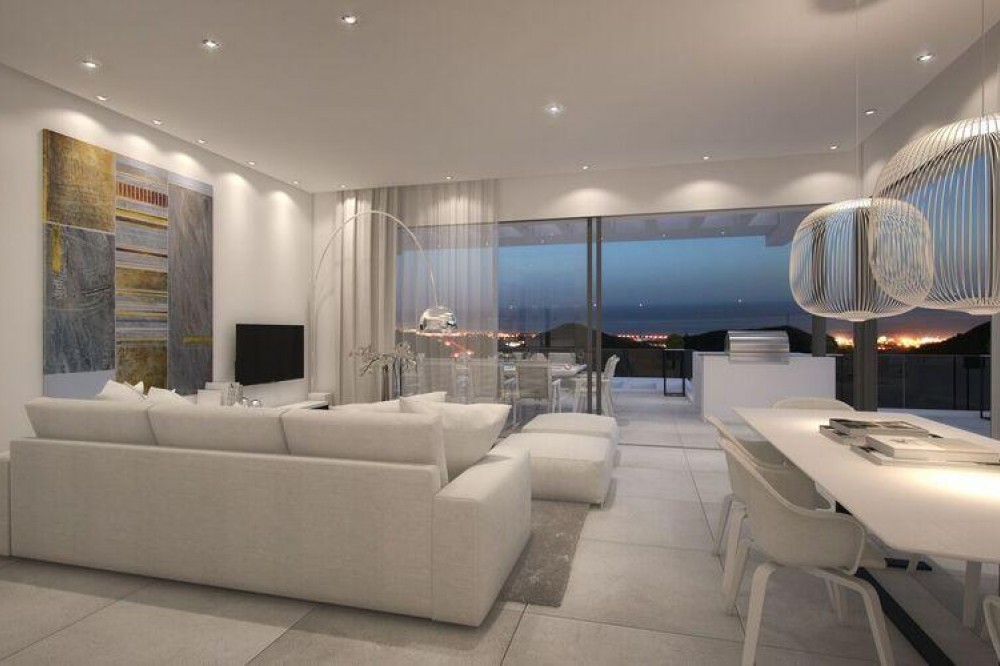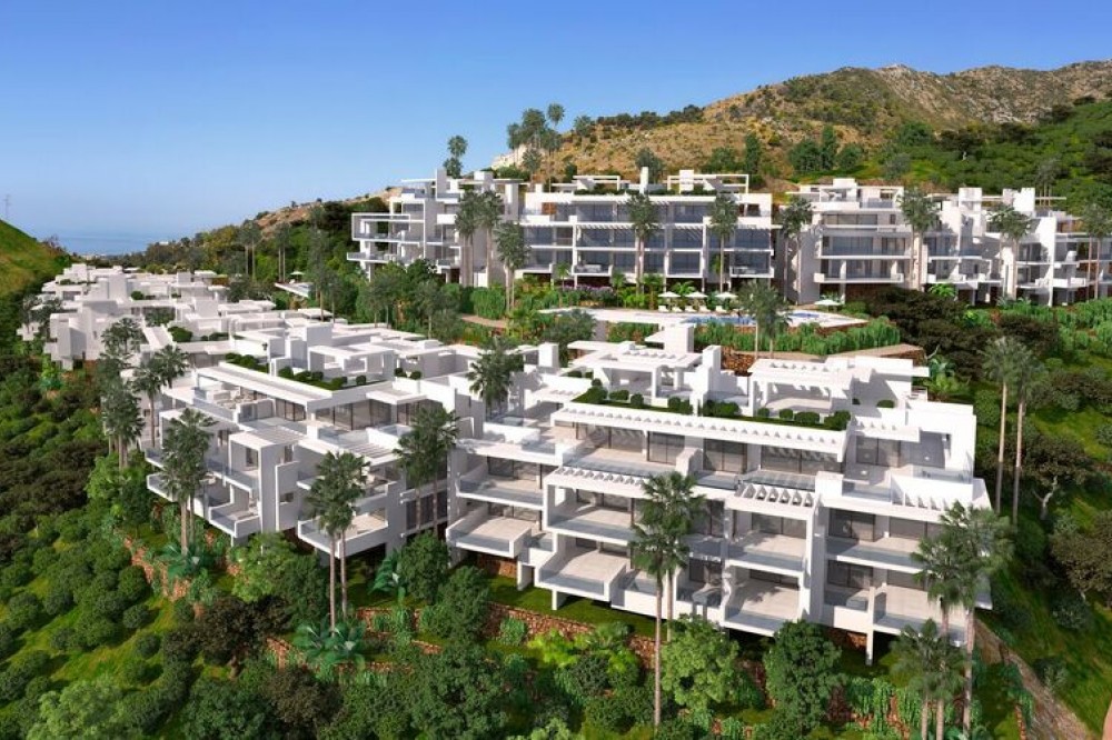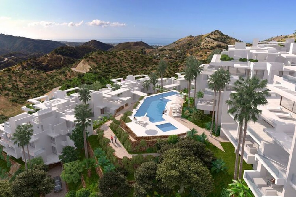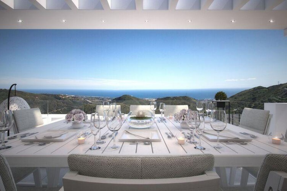 - 2 bed, 2 bath apartments from 799.000 euros (only 2 units left) 3 bed, 2 bath apartments SOLD! 3 bed, 2 bath duplex penthouses from 1.800.000 euros Prices excl. 10% VAT These contemporary apartments, penthouses and villas in 4 phases are nestling in the hills just behind Marbella, in the municipality of Ojén. The area is tranquil and surrounded by green belt and mountains with south facing impressive panoramic views down towards Marbella and the sea. They are only 5 minutes away from La Cañada, the well know commercial Centre in Marbella. The apartments are being built of the highest quality with state of the art modern architectural design and large interior spaces, lots of natural light blending with the natural surroundings and high specification fixtures and fittings. The development will include a health club with spa, gym, fitness studio and indoor pool as well as a business centre with wifi. The complex will house 2 outdoor pools (including one heated), 2 kids pools, strategically placed to enjoy the fantastic views, other services are 24 hour security, concierge service and onsite rental management. This apartment is large with total constructed area of 15,94 m2, of this 110,31 m2 interior space and 44,63 m2 of terrace. The property will comprise a spacious, light open plan living room / dining area with a beautiful kitchen including top end domestic appliances, leading out onto the south facing terrace with spectacular views of the sea and Marbella, 2 bedrooms with fitted wardrobes and 2 bathrooms. The property includes 1 parking space and a storage room. Benefit from special discounts on some units for pre-launch prices, these properties will be snapped up quickly! This luxury development in keeping with nature and surrounded by the mountainside is close to the village of Ojén, for a real Spanish flavour, a short drive to Juanar, a nature reserve with wonderful walks through pine forests and hiking trails leading up to the "Concha" mountain peak with spectacular views overlooking the Mediterranean coast, Marbella, Gibraltar and the coast of Africa. For the best of both worlds, it is only a short drive down to La Cañada, a well known shopping centre behind Marbella with all the shops you can imagine and Marbella town centre with it's amenities, shops, restaurants and bars and the beach. Málaga airport is around 40 minutes by car