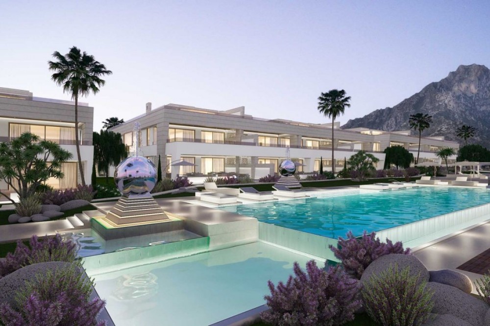 - Marbella Hills offers a unique concept of modern quality design implementing the highest grade materials to create an eco-friendly and comfortable atmosphere. The modern façade shows commitment to horizontal design in the exterior perspective, paramount thickness in wall structure made of natural stone that offers a grand entrance and imposing volume. Comfortable, functional and endowed with a long list of details providing exclusivity and identity, the apartments translate into a warm and welcoming environment allowing residents the possibility to implement their own style and character. Our project is continuously a step ahead of the market trend enriching Marbella by proposing contemporary architecture in our belovedl.The project consists of 20 apartments distributed into 5 buildings on a 8.000 m2 plot of prime land. All blocks hold 4 apartments, each groundfloor having a private garden overlooking the elaborate garden landscape. The 6.000 m2 communal area features a large pool, sun deck and designer gardens, making for idyllic surroundings in the most pleasant of environments. Marbella Hills symbolizes the utmost quality standard in fusion with functional and creative high-end luxury residential living.Floor plans are conceived with an emphasis on spacious open areas, maximum floor to ceiling height level, as well as a premium on large format windows making for plentiful natural light throughout. Basements will have from 106 to 154 m2 allowing to comfortably have up to 4 bedrooms in total as well a the possibility of adding a home cinema, gym, entertainment or second kitchen.Each apartment consists of two fully integrated floors. The main floors offer an open-plan kitchen, multi-use wide format large living/ dining area and three bedroom suites. In ground floor units the basement provides a fourth bedroom suite along with a multi-purpose area suitable for a prospective entertainement/cinema or fitness room. There is flexibility in terms of distribution by using essential partitions, giving the possibility of integrating several uses on the lower floor. In penthouse units , the large sun-roof deck area is ideal for barbecues and private sunbathing with exceptional views, completing the luxury concept.