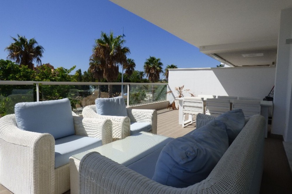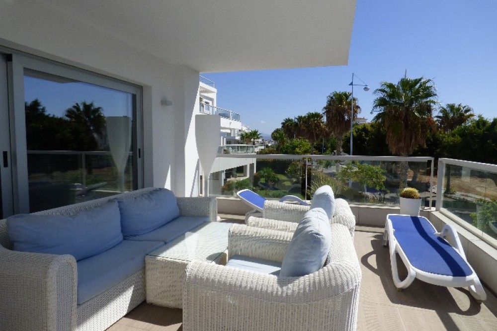 - Apartment for sale in Jade Beach, San Pedro de Alcantara. This south facing, first floor apartment is located less then 400 meters from San Pedro beach and its promenade leading to Puerto Banus and Marbella. An excellent location, only 5 minutes'' drive to Puerto Banus and less than 10 minutes to the centre of Marbella. It is a rare opportunity to find a property within walking distance to all kind of facilities, as the beach, international schools, San Pedro town centre with nice Spanish restaurants, shops, boutiques and of course the new Boulevard that offers amusements throughout the year. The apartment has been built to a high standard using quality materials and modern design. It comprises of 3 spacious double bedrooms and 2 bathrooms (one en-suite). The open plan kitchen and living area leads directly to an extensive terrace with a dining area and plenty of room for a sofa area and separate sunbathing area. The kitchen is fully fitted with breakfast bar and separate laundry room. Features are under floor heating in bathrooms, air conditioning, underground parking space, storage room and communal swimming pool.Possibility of enclosing the terrace with glass curtains gaining extra living area for the winter, but still have an open terrace in the summer or whenever one wishes..2 underground parking spaces plus 1 big storeroom included in the price. Furniture not included!!