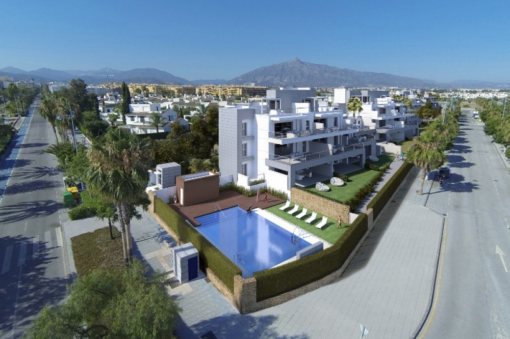 - 2 bed, 2 bath apartments are 100m2 built plus terrace of 30 m2 SOLD OUT! 4 bed, 3 bath apartments are 120m2 built plus terrace of 40m2, from 1.410.000 euros Edificio San Pedro Beach located second line to the beach in San Pedro de Alcantara Marbella offers a very rare and special opportunity to buy a modern design, fantastic quality, brand new apartment between the beach and the new San Pedro Boulevard. This new development consists of just 44 apartments, all with allocated underground parking and storerooms. There will be both two and three bedroom apartments on the ground floor and first floor, with amazing three-bed penthouses. All apartments will have large terraces, a southerly orientation and the development will have attractive communal gardens and two swimming pools when it is complete. Specifications include fitted kitchen with oven, cooker, hob and integrated white goods, air conditioning and heat pump, wide floor to ceiling sliding terrace doors, built-in wardrobes in the bedrooms and all properties will be built to the latest European technical code. Completion is scheduled for 2025