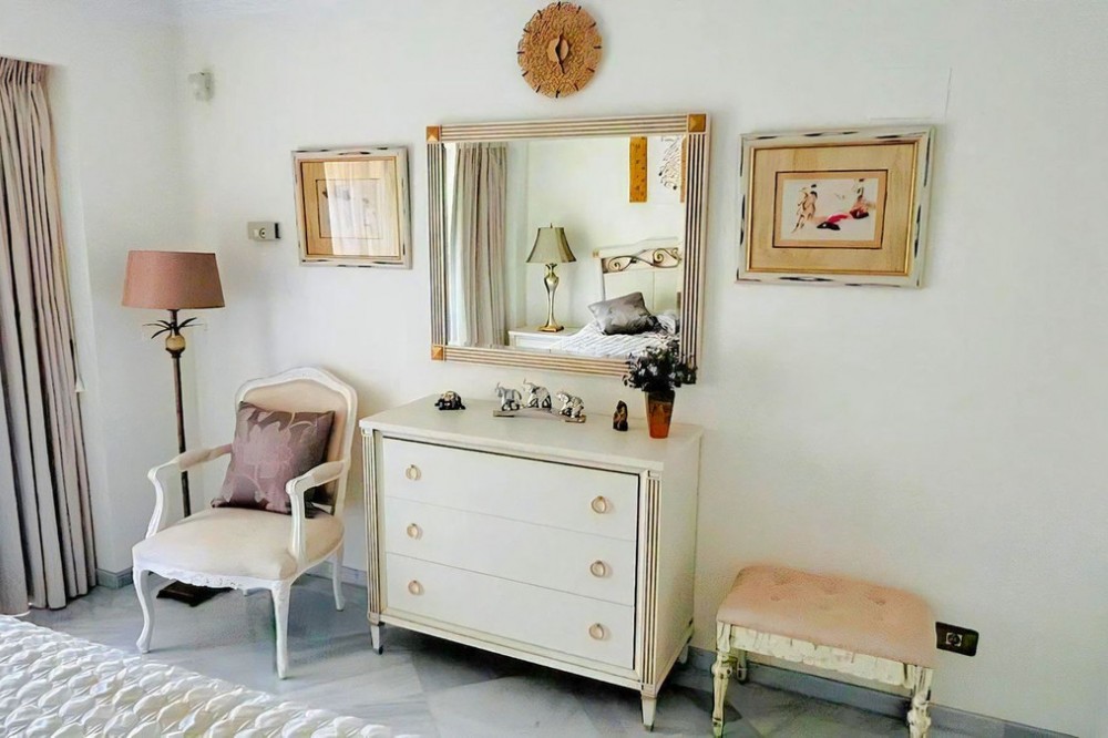 - OPPORTUNITY: Beach side 3 bed luxury apartment, Marbella Golden Mile. Rare opportunity to buy an exclusive apartment in the sought after Don Gonzalo complex, just a few steps away from the popular Playa de Fontanilla beach and the pleasant Golden Mile promenade which leads all the way to Puerto Banus. Apartment details: * Prestigious, iconic complex with 24h security and concierge service * Very large apartment on the 1st floor, in very good state but with classic furniture * 3 generous bedrooms and 3 en-suite bathrooms * Spacious and bright (large 42 sqm living room) * South-west-facing * 23 sqm terrace with garden and pool views * Air conditioning for cooling and heating * Fully equipped kitchen with all appliances * Fitted wardrobes * Marble floors * Extensive well cared for sub-tropical gardens and 2 impressive community pools. * Directly surrounded by several other exclusive residential blocks such as Gran Marbella, Mare Nostrum, Marbella House. * All amenities are within walking distance: El Corte Ingles, Mercadona are just across the main street. * Very wide choice of supreme restaurants are also in the immediate vicinity, not to forget the array of beach clubs and fish restaurants on the nearby promenade. * Only a short walk of just a few minutes to the marina of Marbella which counts plenty of leisure facilities and eateries. Several 5 star hotels are also close by and offer a good choice of luxury faculties and restaurants. Please note the apartment does not come with underground parking space nor storage room!! The price is slightly negotiable.
