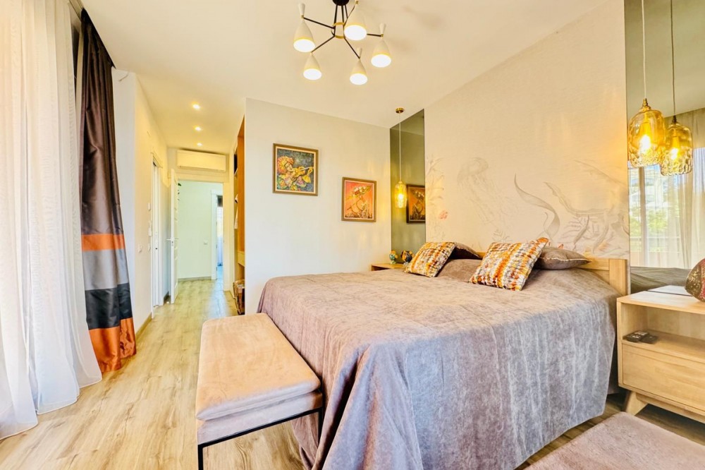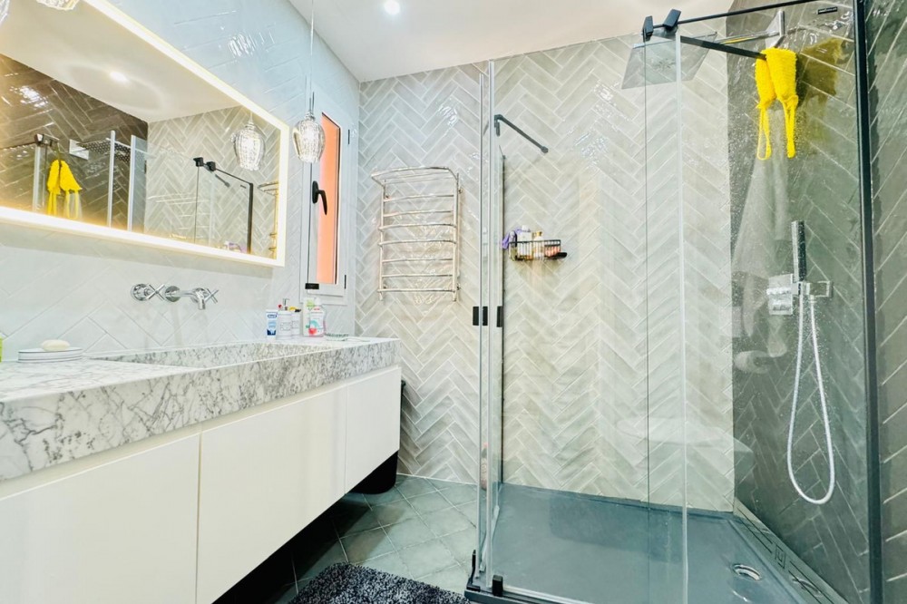 - The property boasts an elegant layout and well-defined spaces. It features a closed area of one hundred forty-four meters and forty square decimeters, complemented by a covered terrace of sixty meters and nine square decimeters, and an uncovered terrace of eight meters and fourteen square decimeters. Additionally, it includes a laundry room of three meters and eighteen square decimeters, with fourteen meters and sixty-six square decimeters in common areas. Bahia de Marbella The interior is organized with an entry hall leading to a kitchen, a guest bathroom, a living-dining room, and another hallway. The resting area includes a bedroom with its own bathroom, a master bedroom with a master bathroom, and a second bedroom also with its own bathroom. The layout is completed by a laundry room, a covered terrace, and an uncovered terrace, ensuring comfort and functionality throughout all spaces. The property also includes two parking spaces and storage rooms located in the basement.