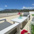 - The contemporary 3-bedroom duplex penthouse with terrace and roof terrace - both with panoramic views of the mountains and the Mediterranean - is located in one of the most sought-after locations surrounded by the fairways of the Santa Clara Golf Course and just a few minutes drive to beautiful sandy beaches and all amenities. The west-facing penthouse on the Santa Clara Golf Course will fascinate you with picturesque sunsets. The floor-to-ceiling panoramic windows of the open-plan living room with dining area and fully equipped kitchen offer you fantastic views of the mountains and the Mediterranean Sea from every angle. The 29m2 large terrace in front of the living room seamlessly combines the indoor and outdoor areas, creating an extremely spacious and airy living environment. On the same level is the master bedroom with sea views and bathroom en suite with bathtub and shower as well as a dressing area. There are also two further bedrooms that share a family bathroom with spacious shower and a guest toilet. The highlight is the magnificent 110 m2 roof terrace with panoramic views, which gives you plenty of scope for social events with your family and friends. Within the upscale private resort, you can enjoy attractive communal facilities for your relaxation and fitness. These include extensive, Mediterranean gardens with 4 large outdoor pools, sun loungers and chill-out beds, an outdoor lounge bar area, a spa with sauna, steam bath, indoor swimming pool and fitness studio, as well as a coffee shop and co-working lounge. - Includes 2 parking spaces in the underground garage and 1 private storage room - Underfloor heating throughout and air conditioning (cold/warm) - A dream home for living, working and relaxing holidays - Ideal penthouse in the south for couples and families - Perfect location for golfers - Ready to move in immediately