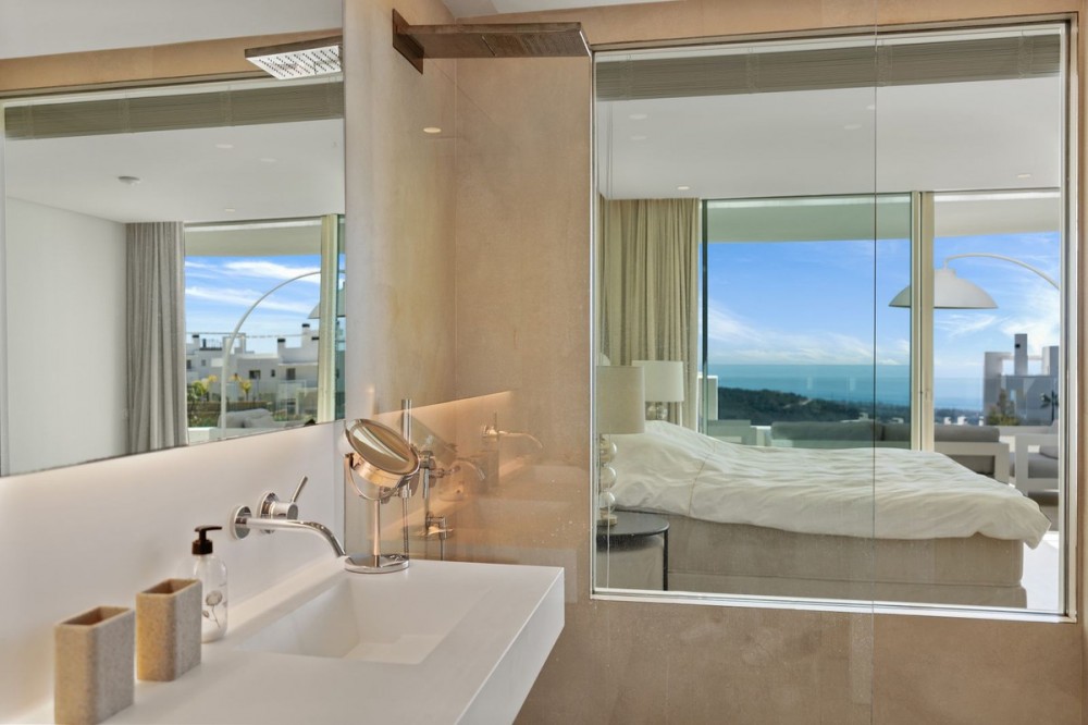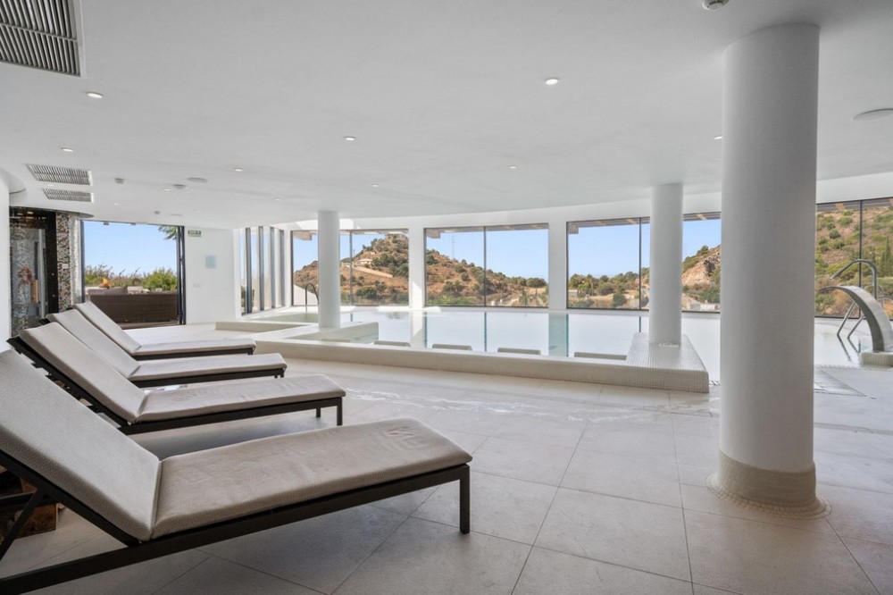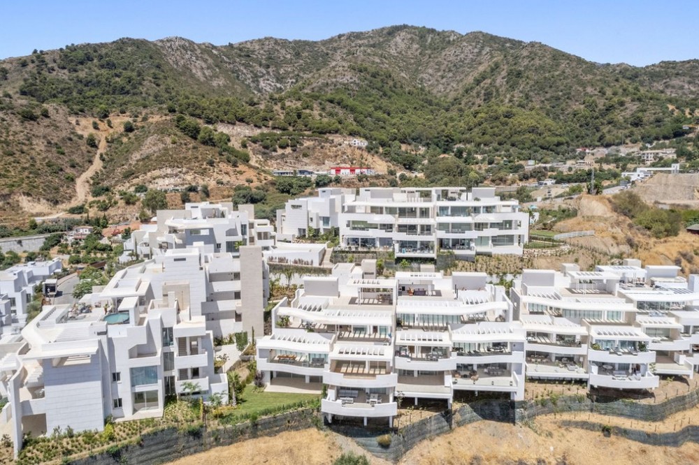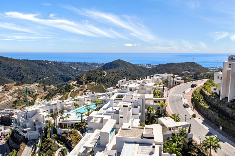 - PALO ALTO, one of the finest projects offering a superior lifestyle with world-class amenities. Las Jacarandas Impressive contemporary flat, with sensational sea and mountain views. Las Jacarandas has two private outdoor pools with children's play areas and gardens. Residents also have full access to all the amenities of Palo Alto including, concierge services, a world-class health club, horse riding, spa and beauty facilities, paddle tennis courts, gym, tennis courts, a social club, a kids club, and endless space to enjoy the natural beauty of Sierra de las Nieves. The flat itself features high quality designer furniture (optional), wooden floors in the bedrooms combined with marble floors in the living area. The large open plan living and dining area with large glass windows to enjoy the views, leads out onto the spacious terrace. The flat has a spacious, bright open plan living/dining room with a beautiful open plan kitchen including top-end appliances, with American fridge integrated microwave and oven, with a separate room off the kitchen with washing machine and tumble dryer leading to the terrace, 3 bedrooms with fitted wardrobes and 2 bathrooms. There is also 24/24 security. The property also has 1 underground parking space. For the best of both worlds, it is only a short drive to La Cañada, a well-known shopping centre behind Marbella with all the shops you can imagine and the centre of Marbella with its amenities, shops, restaurants and bars and the beach.
