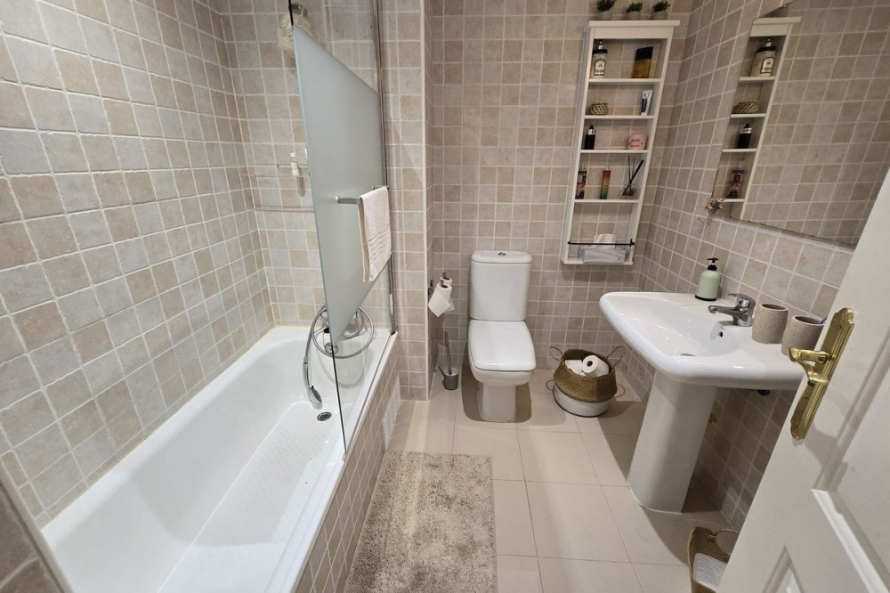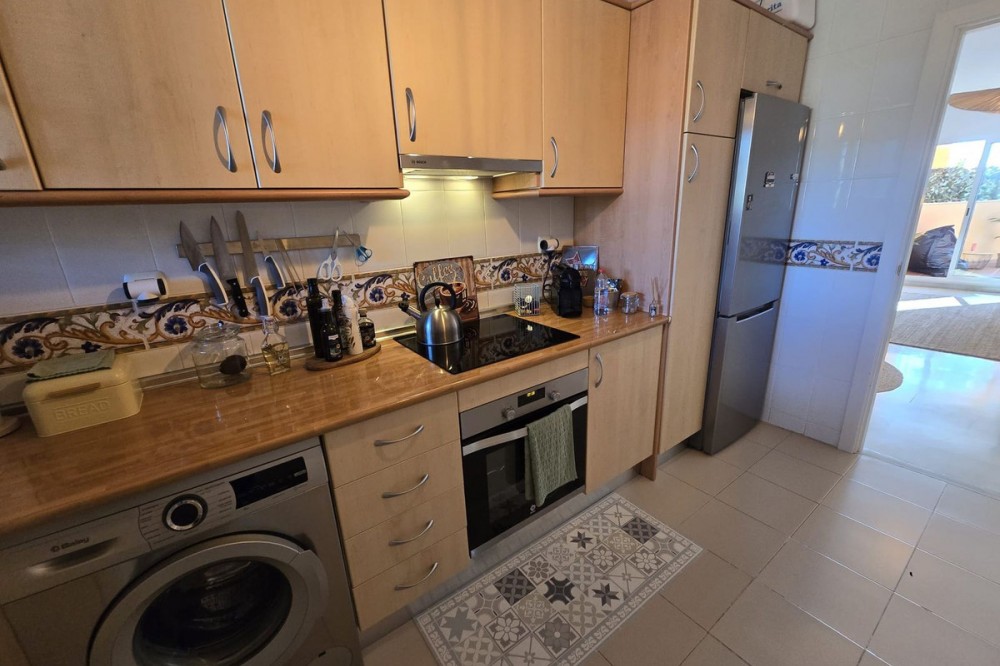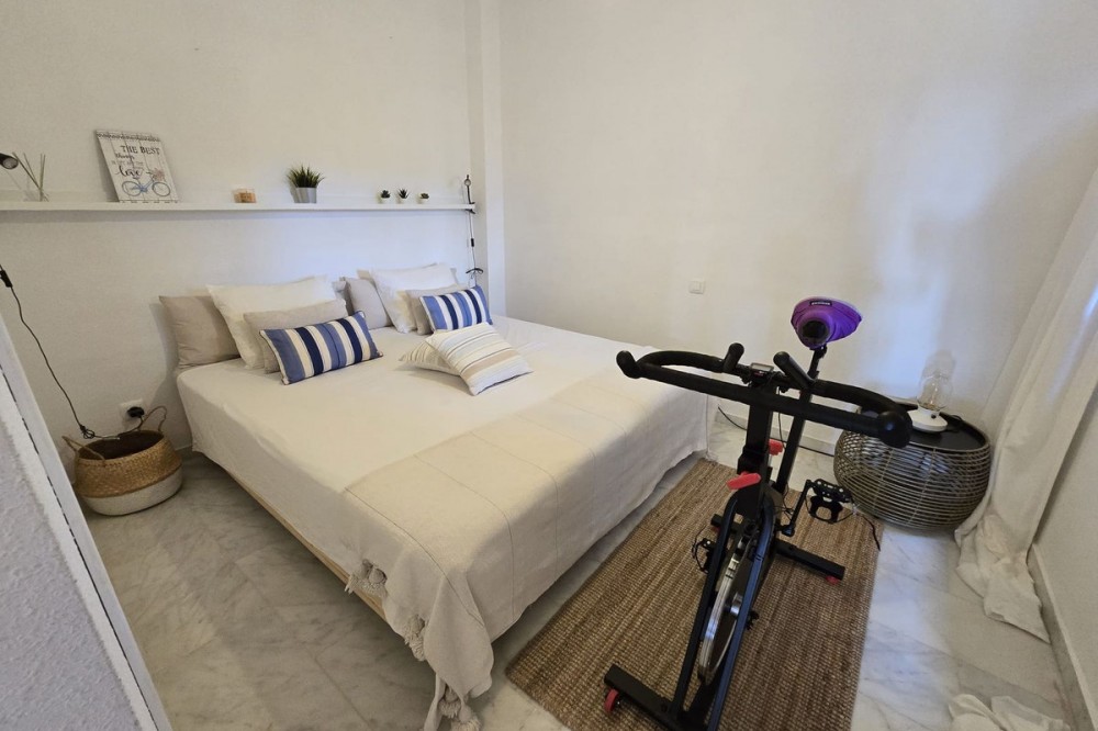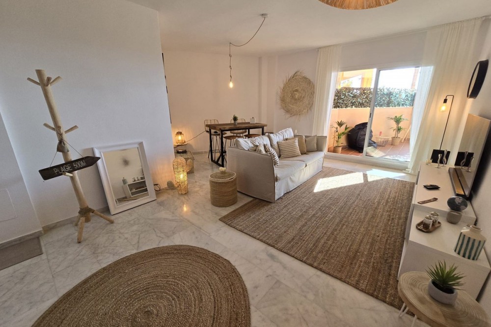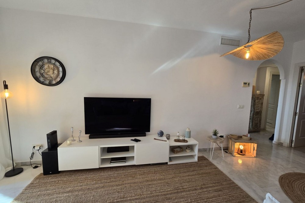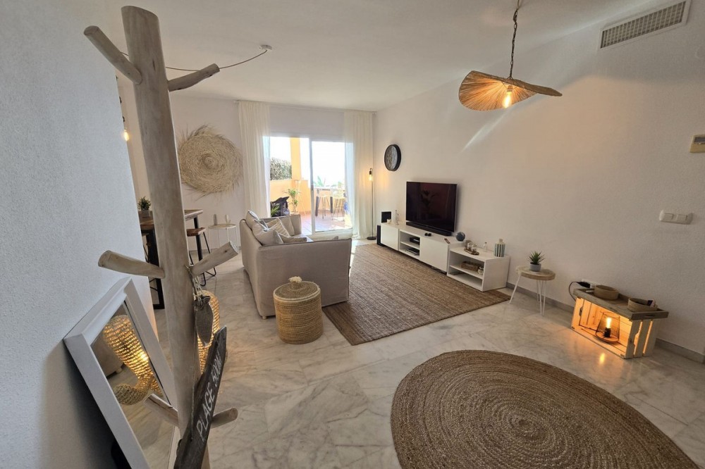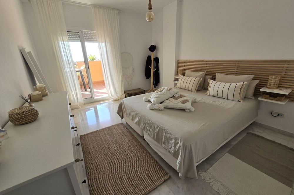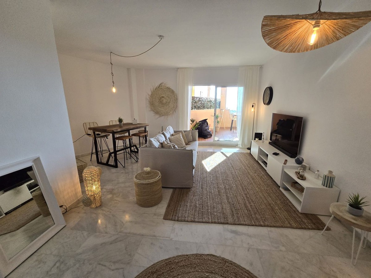 - Charming flat for sale in Reserva de Marbella with sea views, only 15 minutes drive from the centre of Marbella. The flat consists of 2 bedrooms with 2 complete bathrooms, one of them en suite, living-dining room (quite spacious as it is a corner flat), fully fitted kitchen, fitted wardrobes, air conditioning, lift. It is situated in the middle floor with fantastic views to the sea, it has a garage space and storage room. The urbanisation offers communal swimming pool, tropical gardens, security 24h