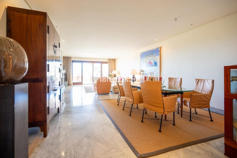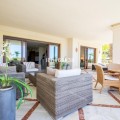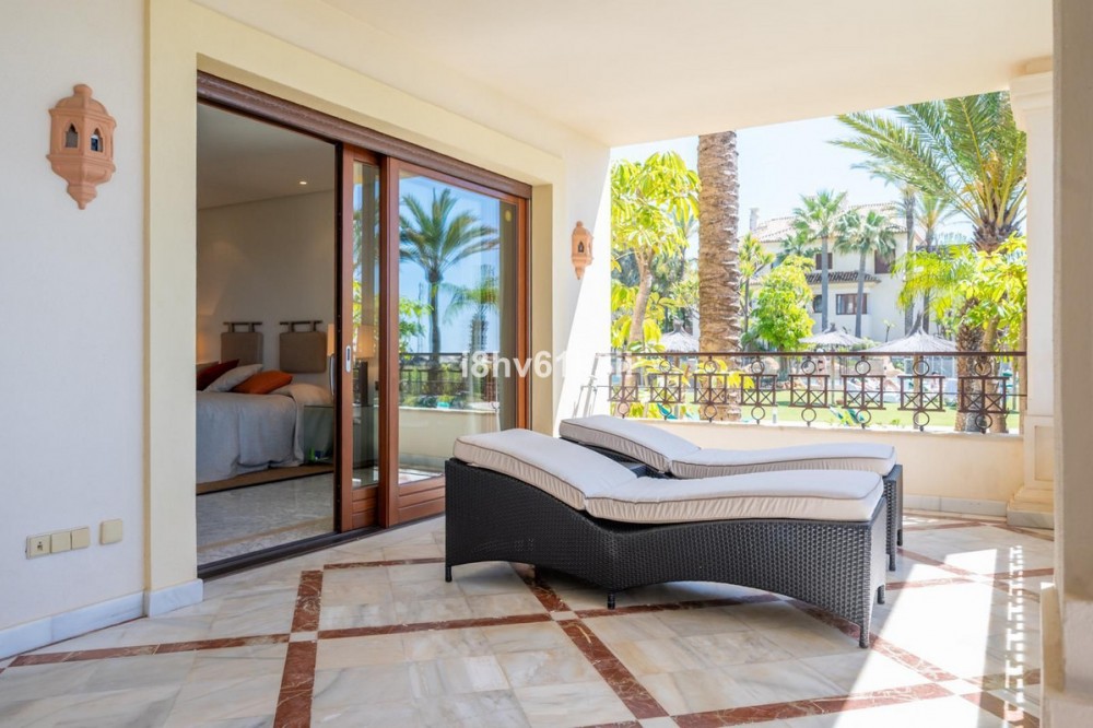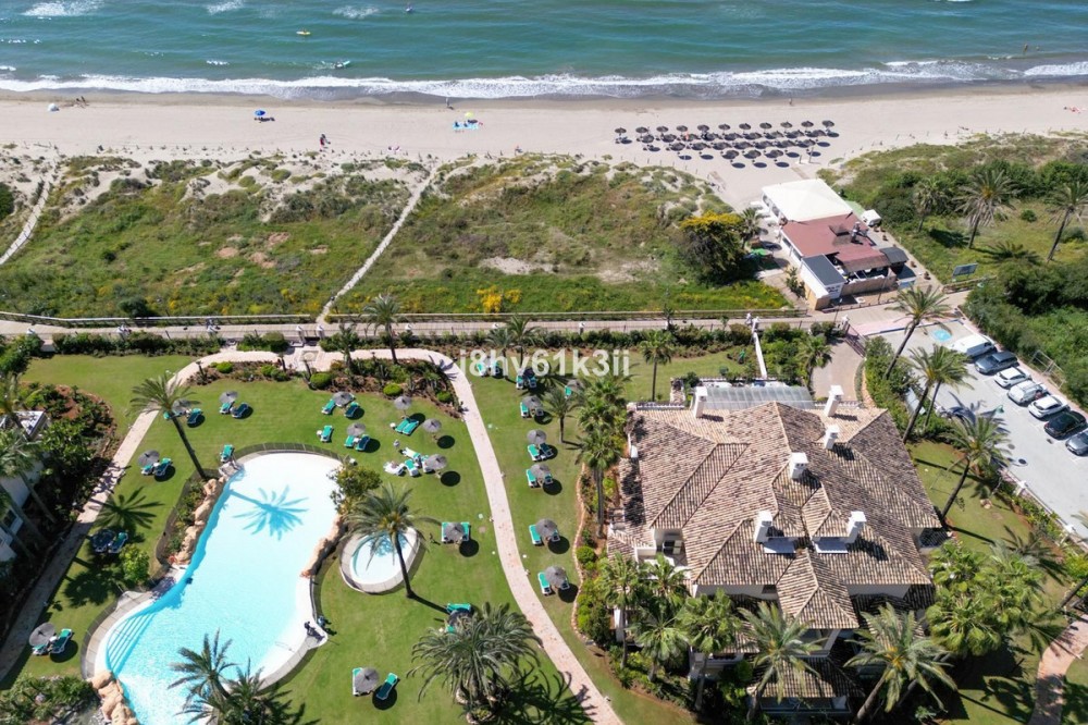 - The luxurious three-bedroom ground-floor apartment, front line beach in Los Monteros Playa, is finished to the highest of standards and taste. The property has just been beautifully refurbished including a brand new high-tech kitchen. It is perfectly positioned in one of the poolside apartment blocks, with stunning views of the sea and protected sand dunes. The apartment comprises a very spacious living- and dining room, with an open fire and direct access to the double terrace with sea views, a fully fitted kitchen, and a separate dining terrace and laundry room. Just off the main entrance hall is a guest bathroom. The left-wing comprises the 3 double bedrooms, all en-suite. The main bedroom's entrance has numerous built-in wardrobes, has direct access to the terrace, has sea views, and has a double bathroom with a very large shower. Further features: alarm, under-floor heating throughout, A/C, 2 closed underground parking spaces, storeroom, and marble floors.