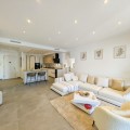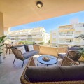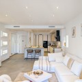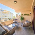 - This luxurious 2 bedroom 2 bathroom apartment located in the prestigious beachfront urbanization in San Pedro has been completely transformed with top-quality renovations, offering a modern and sophisticated living experience. Every aspect of the home has been upgraded, including a brand-new water system and electrical wiring throughout. The kitchen is a chef's dream, featuring sleek, high-end furniture from Germany and the latest Bosch appliances, including a 21-bottle wine cooler, dishwasher for 12, induction cooktop, oven, and microwave. State-of-the-art sensor-activated cabinets add a touch of innovation, while a Philips drinking water filtration system ensures convenience and health. The apartment offers luxurious comfort with heated floors in both bathrooms, and a master switch controls all the lights and outlets, giving you complete control over your space. A central air conditioning system keeps the entire apartment cool, and a built-in safe and digital peephole provide additional security. For ultimate ease, a robotic vacuum cleaner takes care of the floors, and the apartment comes with a two-year warranty on all furniture, appliances, and renovations. This is a rare opportunity to own a fully renovated, high-end property in one of the most sought-after beachfront locations, where modern luxury meets coastal serenity.