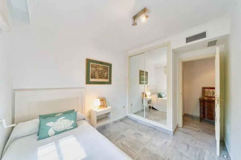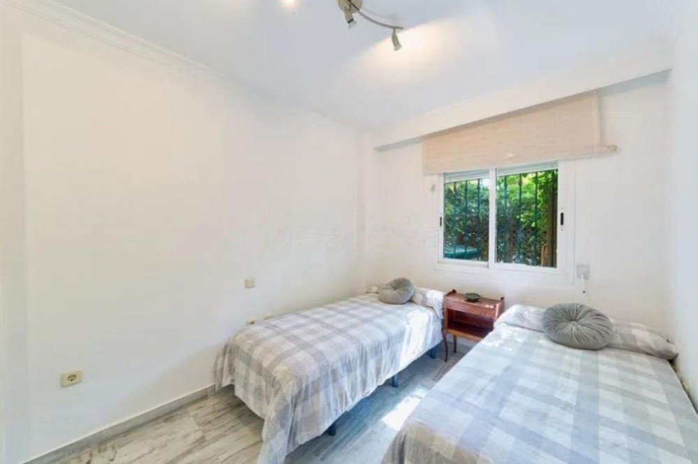 - Apartment in the La Dama de Noche Urbanization, located in Nueva Andalucía, a 5-minute walk from Puerto Banús. It consists of 3 bedrooms, 2 bathrooms, one of them en suite. Built-in wardrobes in all rooms, even in the entrance hall. Equipped kitchen and laundry room, underground parking space included and free parking in the urbanization itself. On-site security and 24-hour surveillance throughout the urbanization. Swimming pools, paddle tennis courts, restaurant, children's park, and large gardens. Ground Floor Apartment, Marbella, Costa del Sol. 3 Bedrooms, 2 Bathrooms, Built 150 m², Terrace 20 m², Garden/Plot 90 m². Setting : Close To Shops, Close To Schools, Close To Marina, Urbanisation. Orientation : South West. Condition : Excellent. Pool : Communal, Children`s Pool. Climate Control : Air Conditioning, Hot A/C, Cold A/C. Views : Garden. Features : Covered Terrace, Lift, Fitted Wardrobes, Near Transport, Private Terrace, WiFi, Paddle Tennis, Utility Room, Ensuite Bathroom, Access for people with reduced mobility, Marble Flooring, Double Glazing, 24 Hour Reception, Near Church, Fiber Optic. Furniture : Part Furnished. Kitchen : Fully Fitted. Garden : Communal. Security : Gated Complex, 24 Hour Security, Safe. Parking : Underground, Garage, Covered, Private. Category : Golf, Resale.