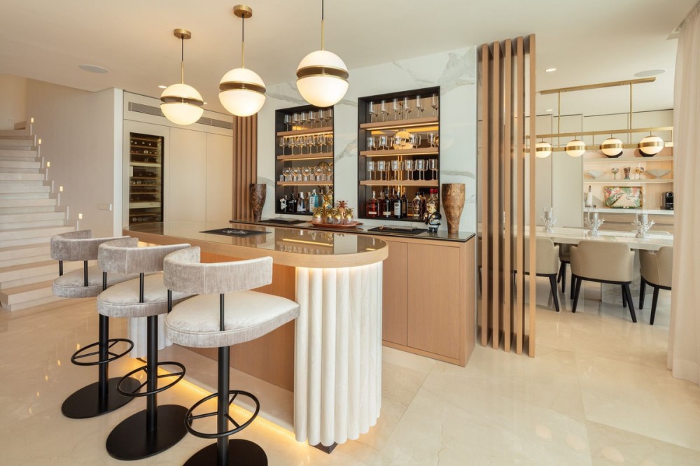 - Experience the epitome of beachfront luxury at Penthouse One, an extraordinary property within Marbella's prestigious Puente Romano Resort on the Golden Mile. This opulent duplex apartment offers a seamless blend of indoor and outdoor living, creating a resort-style ambiance perfect for relaxation and entertainment. With its expansive terraces and breathtaking sea views, you can savor the Mediterranean climate and culinary delights in the outdoor cooking area. With meticulous attention to detail in design and furnishings, Penthouse One boasts six en-suite bedrooms, each exuding elegance, and style. The state-of-the-art kitchen, equipped with high-quality Gaggenau appliances, is a culinary haven, while the dining area offers unforgettable sea views for a memorable dining experience. The main living level showcases four spacious en-suite bedrooms with stunning sea or mountain views, creating a sense of serenity and natural beauty. A private lift or staircase leads to the luxurious master suite, featuring his-and-hers walk-in closets and bathrooms, providing a serene sanctuary with panoramic Mediterranean views. Beyond the apartment, Penthouse One grants access to 5-star modern facilities, including a well-equipped gymnasium and a heated pool with a resistance swimming apparatus. The vast terrace space invites you to bask in the beauty of sunrises and sunsets, offering unforgettable moments of tranquility. Unmatched in beauty and desirability within the Puente Romano area, Penthouse One stands as a truly exceptional property.