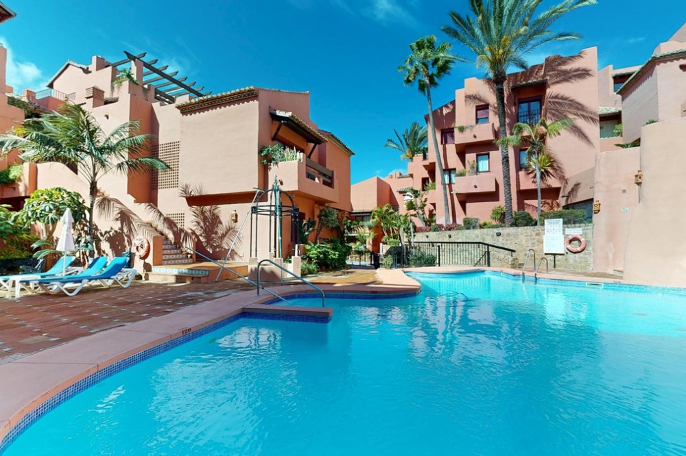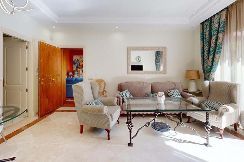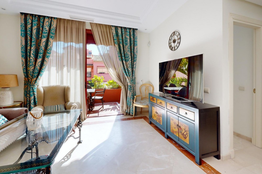 - This modern single storey property, located in the urbanisationJardines de Don Carlos, has three bedrooms and two bathrooms, and is ideal for those looking for comfort and an excellent location. It is located just a few metres from the beach in Elviria, which makes a perfect choice for enjoying the sea and the sun.Upon entering, we are greeted by a large glazed terrace with orientation East, from which we can appreciate the views to the gardens and to one of the communal swimming pools, an ideal space to enjoy all year round. This terrace connects with a bright living room that leads to a second terrace, where the sun shines all morning.The property has three spacious bedrooms with fitted wardrobes.The two bathrooms, one of them en-suite, have been recently refurbished to include shower trays. The kitchen is spacious and has top of the range appliances and a separate utility room. The property is equipped with air conditioning and central heating. The floors are marble and the windows have double Climalit glazing and automatic shutters.An ample storage room and a garage space with electric charger are included in, which is an added advantage for owners ofelectric vehicles. This urbanisation offers three swimming pools, gymnasium and sauna, making an ideal place to enjoy your leisure time.The location is unbeatable as it is close to all amenities, such as restaurants, supermarkets, pharmacies, and has easy access to the motorway. Marbella centre is only 10 minutes away by car.Do not hesitate to contact us at for more information or to arrange a viewing. This property is an opportunity you will not want to miss!The Abridged Information Document is at your disposal. Costs: Tax (ITP or IVA+AJD) + notary and registry fees.MPR