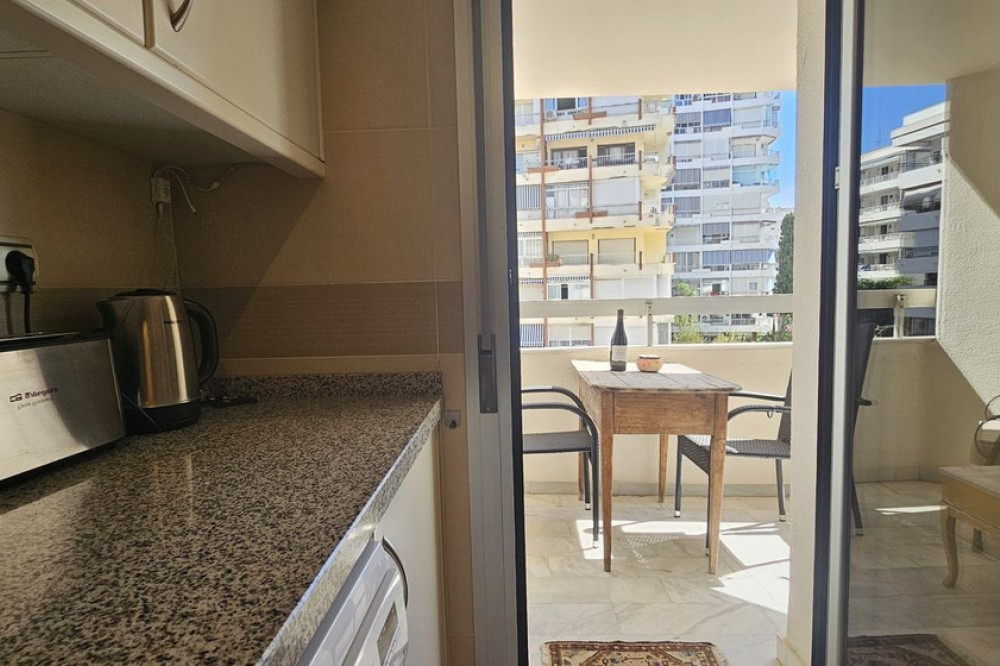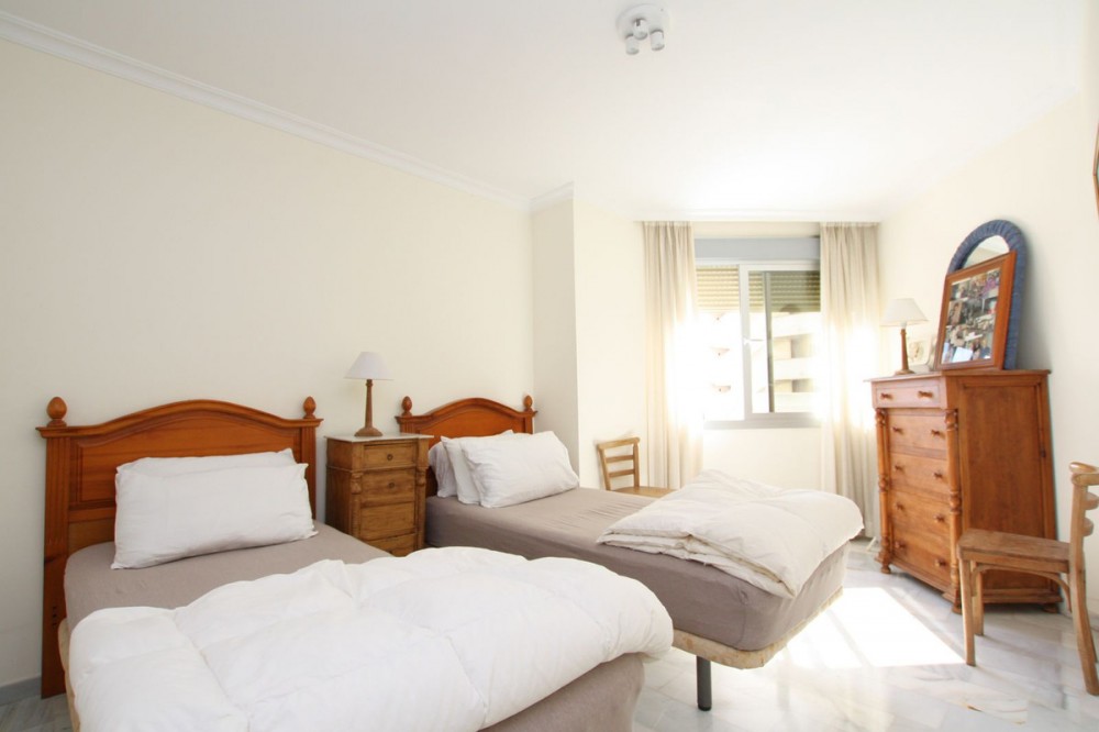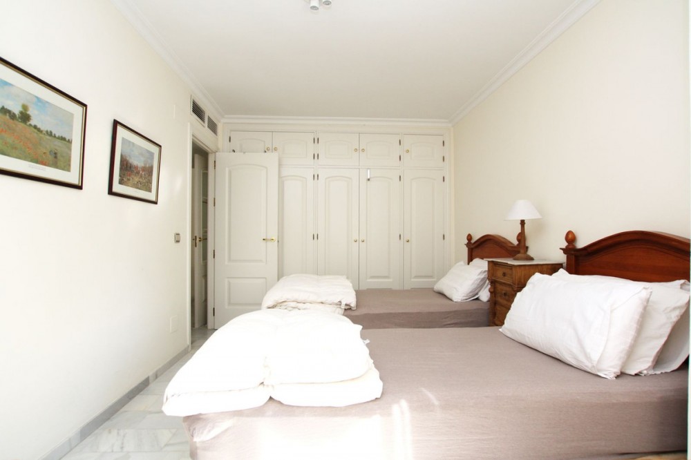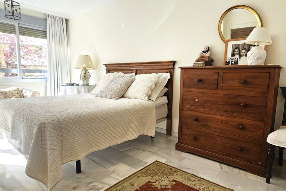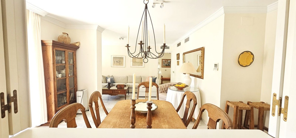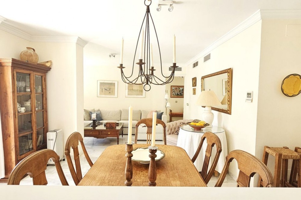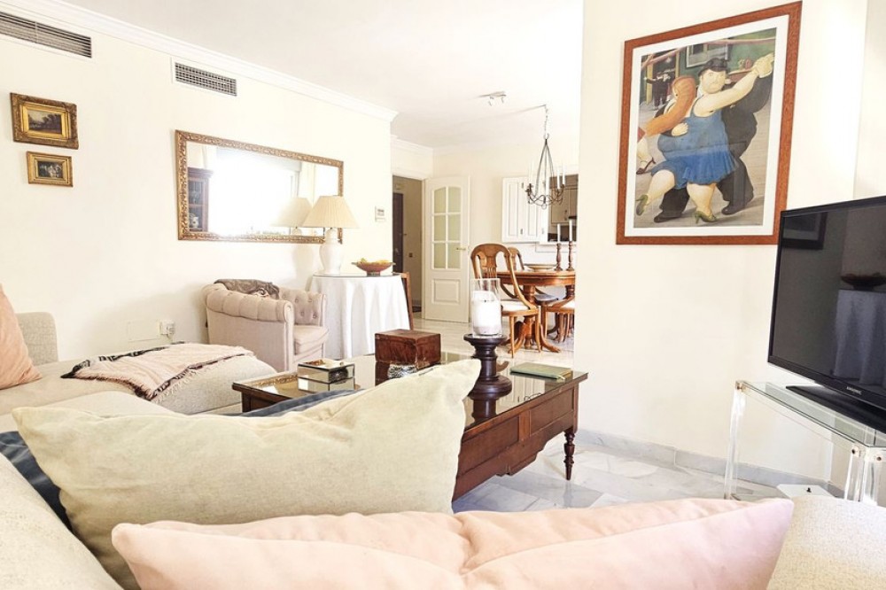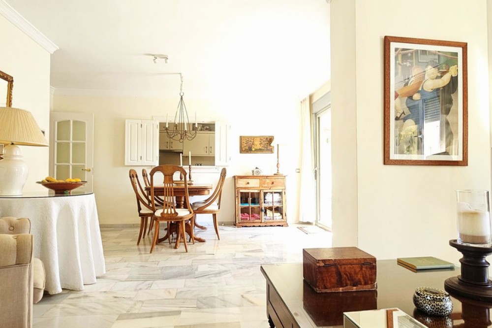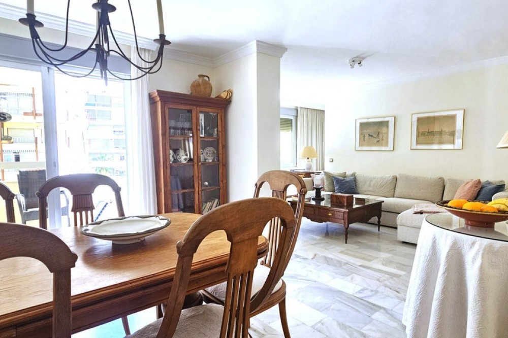 - Spacious and bright 2-bedroom apartment in the center of Marbella. Fantastic 136sqm apartment with 2 large bedrooms, the master with en-suite bathroom and two more full bathrooms. Spacious living/dining room with direct access to the terrace. Furnished and equipped kitchen connected to the living-dining room by a serving hatch and also with direct access to the terrace. The price also includes 2 parking spaces, one for a car and the other for motorcycles, and a storage room. The building has a concierge and swimming pool.