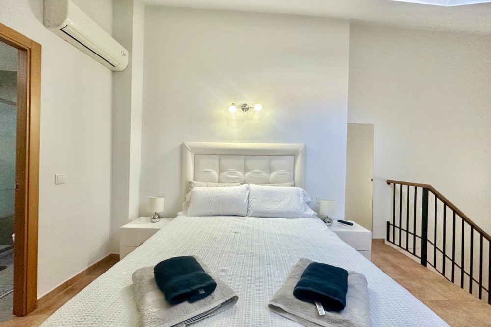 - This recently renovated duplex penthouse is situated in the heart of Marbella’s historic Casco Antiguo, offering a prime location surrounded by the city’s vibrant amenities, charming streets, and rich cultural heritage. A city center apartment building, with a built area of 95m², the property is thoughtfully designed to maximise comfort and style, providing an ideal choice for those seeking urban living with a touch of elegance. The duplex penthouse comprises 3 spacious bedrooms and 3 bathrooms, 2 of which are en-suite, ensuring privacy and convenience for residents and guests alike. The open-plan, fully fitted kitchen flows seamlessly into the dining and living areas, creating a welcoming space for both relaxation and entertaining. Attention to detail is evident throughout, with features such as air conditioning, double glazing, fitted wardrobes, and security elements including an alarm system, security entrance, and security shutters. The property includes balconies, offering pleasant street and urban views, providing the perfect setting to enjoy Marbella’s lively atmosphere. Residents will benefit from the property’s proximity to a host of amenities, including shops, restaurants, schools, playgrounds, the beach, golf courses, and the port. Excellent transport links make commuting effortless. This duplex is ready for immediate occupation.