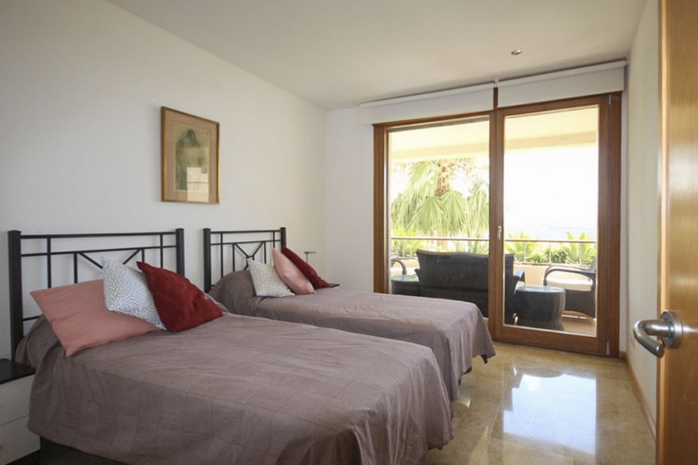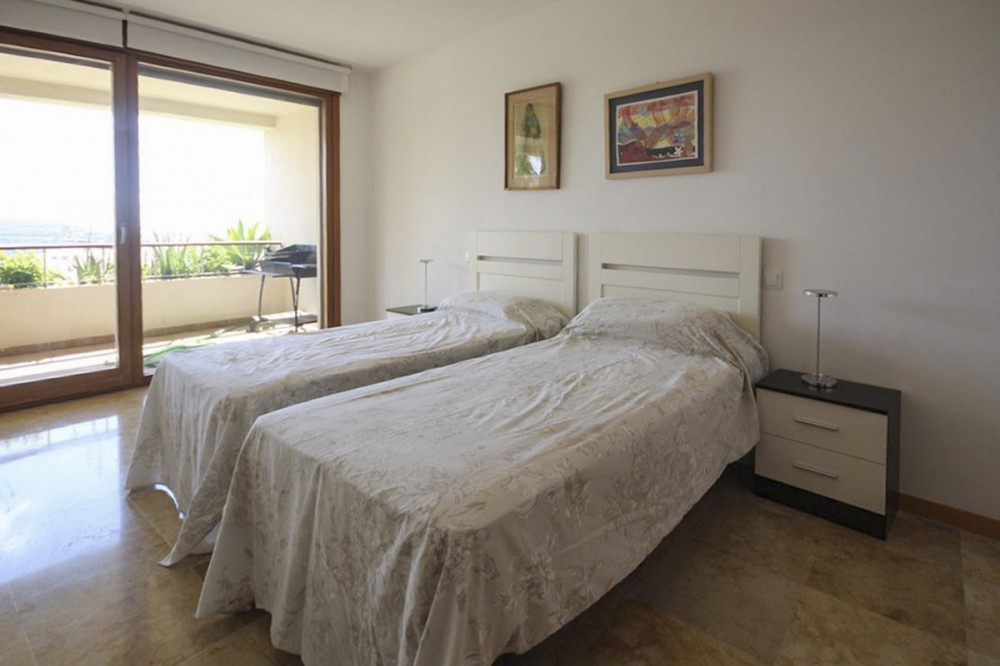 - Lomas de los Monteros, Marbella East. This beautiful elevated ground floor apartment boasts 150 square meters of living space, featuring three spacious bedrooms, all with built-in wardrobes, two full bathrooms, and a guest toilet. It includes a large living-dining room and a separate, fully equipped kitchen. Marble floors throughout. The apartment is being sold fully furnished as seen in the photos. The apartment offers panoramic views of the Mediterranean Sea and the surrounding countryside. Located within a luxurious, secure, gated community with lush tropical gardens and three large swimming pools. Situated in the hills of Altos de los Monteros, it offers peace and tranquility within a protected natural environment, yet is just a short drive from the main road and the center of Marbella. Built with high-quality materials and finishes. The price includes three private parking spaces and two storage rooms. Water and hot/cold air conditioning are included in the community fees. Please do not hesitate to contact us; we would be happy to arrange a viewing!