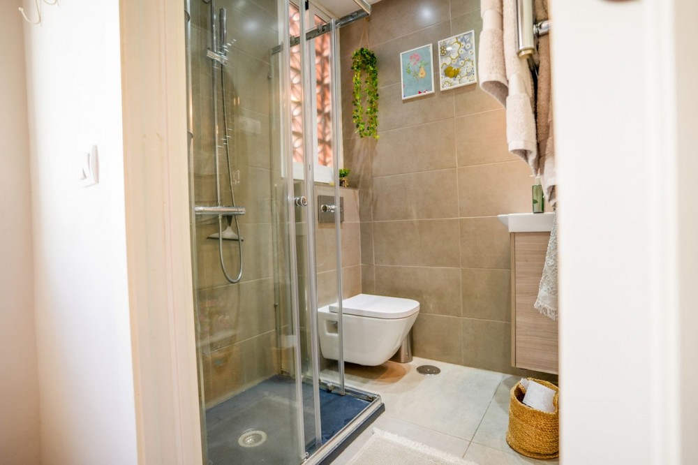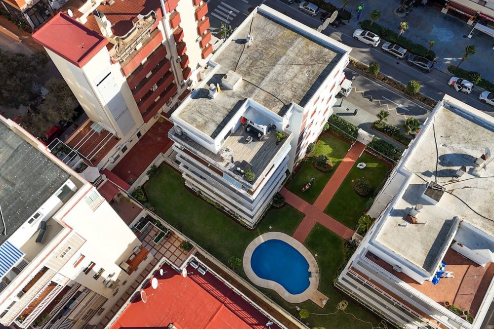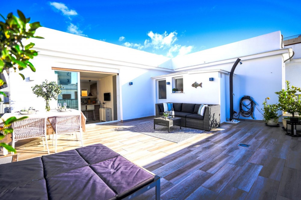 - A truly and unique gem in Marbella. Beachside penthouse, located in the lively centre of Marbella and just a pleasant minutes’ walk from the beach. This beautiful and cosy 1-bedroom penthouse apartment comes with a magnificent private terrace facing southwest. From the terrace you can enjoy the sun throughout the day, from the first rays of the morning sun until the sunset. The property is in an excellent state having been completely renovated. The living room and the kitchen are perfectly integrated, with easy access to the outside terrace. The cosy bedroom has an en-suite bathroom with shower. Upon entering the apartment through the new handcrafted security door in pinewood you come straight into the hallway with lots of wardrobe space. As you proceed you are then welcomed by a stunning kitchen island that is harmoniously integrated with the living area and the terrace, giving the impression that it is part of the living room. Enjoy the peaceful views from the living room where sunlight pours in to fill everysquare inch. The choice of materials and colour infuses this area with a sense of peace and comfort. The penthouse's crowning feature is its private terrace of 56 m2. Whether you are hosting an intimate gathering for your friends or enjoying a quiet evening under the stars, this is your personal paradise. At the terrace you will also find an outdoor shower and a utility room with plenty of storage. This property is located in a very sought after address within a tranquil, private and gated community including a small garden and pool. Everything is very well kept. The property also includes a large garage space in the same building. The lift takes you directly from the garage to your apartment. This apartment has a valid tourist license, which also makes it a very attractive investment opportunity. The apartment has never been rented, only for private use by the owners. Highly recommended property.