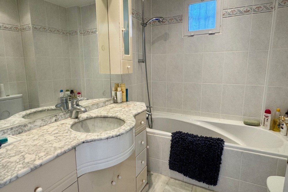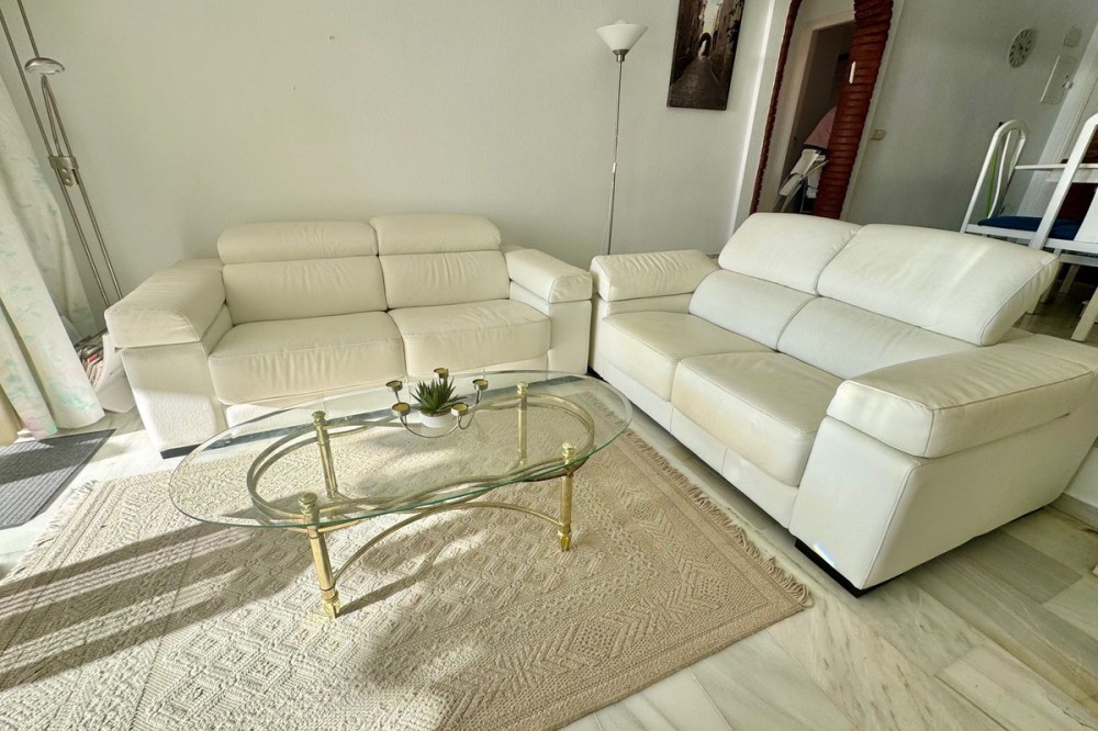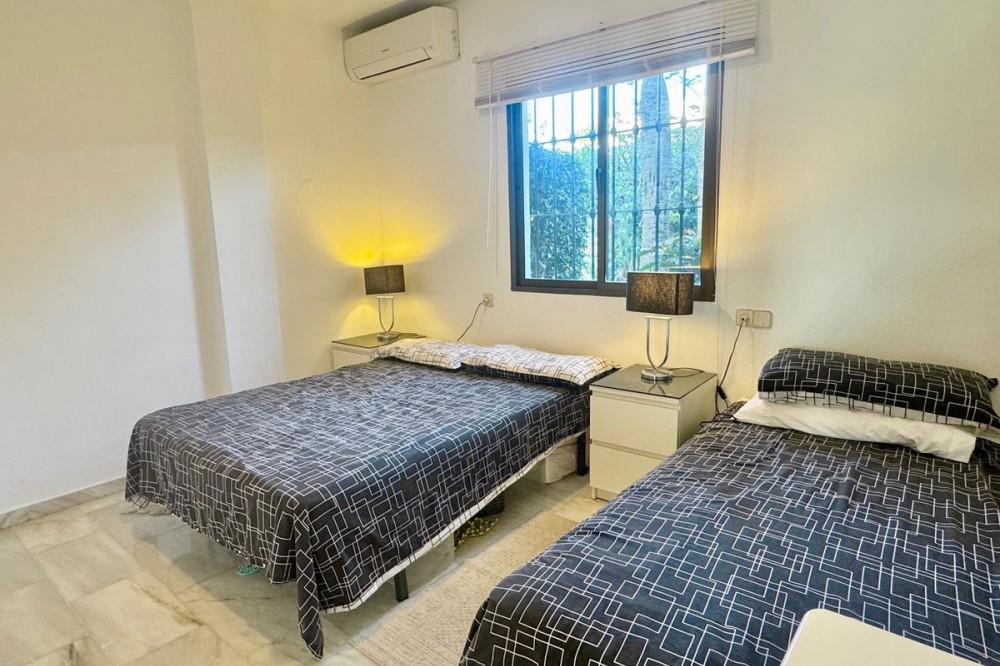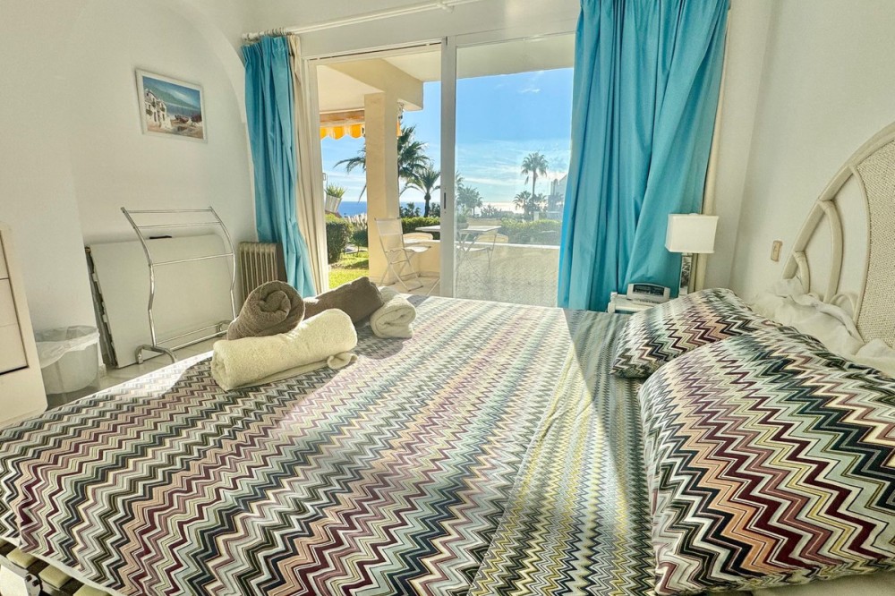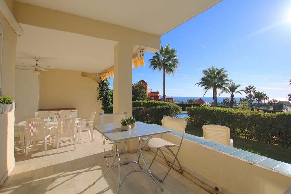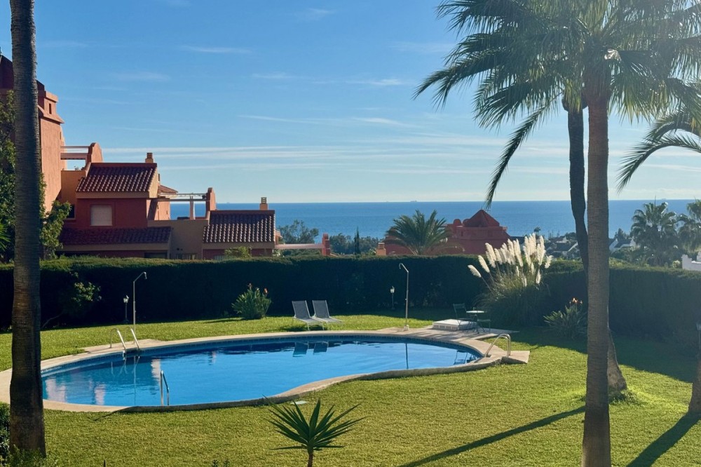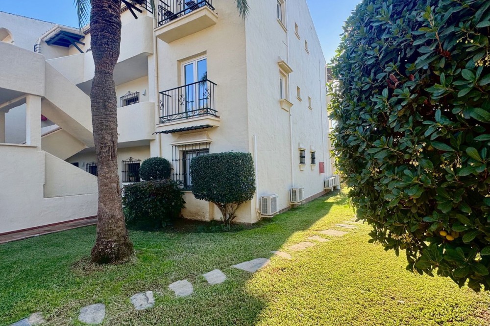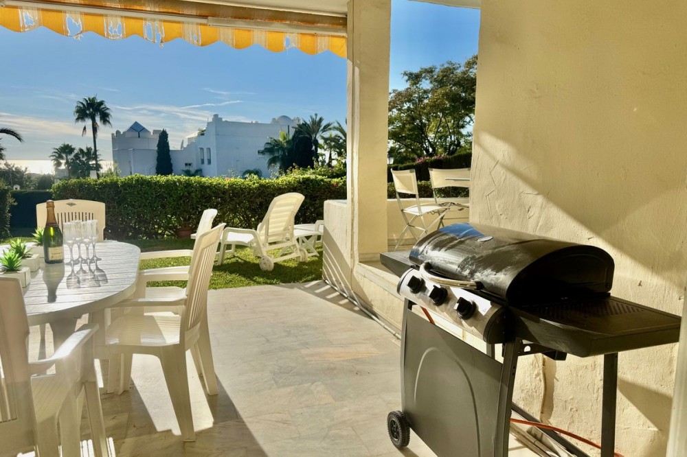 - A fantastic opportunity to own a ground-floor corner apartment in the highly desirable Reserva de Marbella (Las Chapas). Situated within an exclusive gated community of just 18 residences, the complex boasts beautifully landscaped gardens and a large communal pool. The location is ideal—just a short walk to local amenities and a pleasant 25-minute stroll to the picturesque Marbesa beach and the protected Artola dunes. This bright and airy corner apartment offers excellent potential for modernisation and enjoys impressive sea views. A spacious terrace, accessible from both the living room and main bedroom, flows directly into a private garden area, creating a tranquil and secluded outdoor space. Inside, the property features two generous bedrooms and two bathrooms. It comes fully furnished and includes full air conditioning for year-round comfort. A private parking space located just outside the community adds to the convenience.