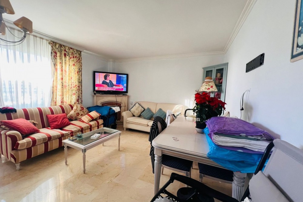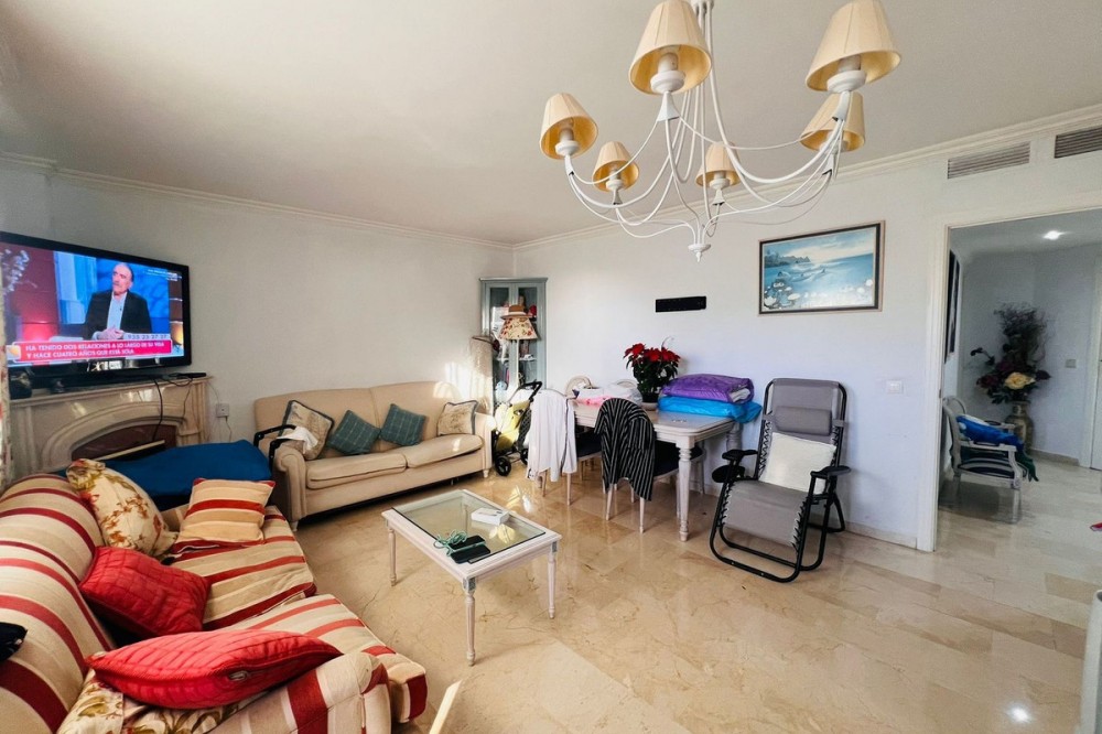• Discover this amazing opportunity to acquire a fantastic apartment with sea views! This bright property, located in a privileged area, features 3 spacious bedrooms and 2 bathrooms—perfect for enjoying the comfort and space you need. The living–dining room is ideal for sharing unforgettable moments with family and friends, while the kitchen offers everything you need. The terrace with glass enclosure is the perfect place to relax and take in the views, whether you're having a morning coffee or enjoying a drink at sunset. In addition, this apartment includes a parking space and is equipped with marble floors and pre-installed air conditioning. The building has a swimming pool and garden, providing an ideal space for leisure and fun. Just a few steps from the beach and surrounded by shops, you'll have everything you need within easy reach. Although it is currently rented until mid-January, you have the option to reserve it now or continue with the rental. Don’t miss out on this unique opportunity!