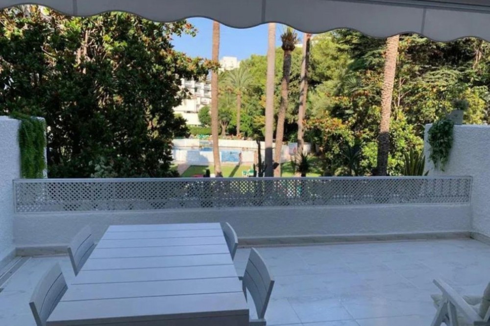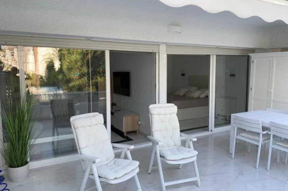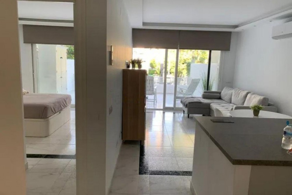 - Renovated apartment for sale. One bedroom, brand new bathroom, American kitchen with plenty of storage space, two built-in wardrobes, hot/cold air conditioning and electronic radiators. Smooth paint. Indirect lights adjustable in intensity and perimeter recess to create atmospheres. Very bright. Camouflaged designer sockets. On the terrace, a room for a washing machine and storage has been built. It has a washer-dryer. Electric awning. The apartment has 58 useful square meters and the terrace 30 useful square meters. Brand new hot water heater. Water is not paid for, it is included in the community fee. Possibility of making a second bedroom since the square footage of the house is large. Quiet urbanization designed by the architect Fernando Higueras, with a tropical garden, with two swimming pools, fountains, an artificial river with fish, frogs, ducks.. . IT HAS DIRECT PEDESTRIAN ACCESS TO THE BEACH, without having to cross the road, two showers for when you return from the beach to remove the sand, with direct access to the pool from the beach. Parking included in the price. Less than 3 minutes walk to 3 supermarkets, 24-hour pharmacy, El Corte Inglés, parks, cafes, restaurants. The urbanization has a coworking room. Middle Floor Apartment, Marbella, Costa del Sol. 1 Bedroom, 1 Bathroom, Built 65 m², Terrace 30 m². Setting : Town, Suburban, Commercial Area, Beachside, Close To Shops, Close To Sea, Close To Schools, Urbanisation. Orientation : East. Condition : Good, Recently Renovated, Recently Refurbished. Pool : Communal, Children`s Pool. Climate Control : Air Conditioning, Hot A/C, Cold A/C. Views : Garden. Features : Covered Terrace, Lift, Fitted Wardrobes, Near Transport, Private Terrace, WiFi, Ensuite Bathroom, Access for people with reduced mobility, Marble Flooring, Double Glazing, Courtesy Bus, Near Church, Fiber Optic. Furniture : Part Furnished. Kitchen : Fully Fitted. Garden : Communal. Security : Gated Complex. Parking : Underground, Garage, Covered, Private. Category : Beachfront, Resale.