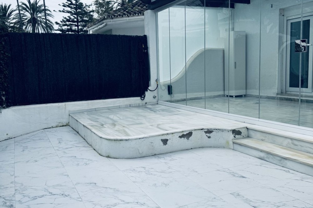 - WONDERFUL APARTMENT LOCATED IN A BEACHFRONT DEVELOPMENT, FROM THE GARDEN GATE, ABOUT 50 METERS AWAY, YOU HAVE ACCESS TO ONE OF THE BEST BEACHES IN MARBELLA. Located in a secure tropical complex with three swimming pools, including a children's pool, and gardens with streams and fountains. The interior layout consists of a foyer, hall, hallway, kitchen/dining room, living room, a very spacious bedroom with a sitting/rest area (previously two bedrooms), two bathrooms, and a toilet. On the same ground floor, accessed through another entrance, there is a small living room with an open kitchen, a bedroom, and a bathroom. ON THE UPPER FLOOR there is a bedroom, a dressing room, and a bathroom, connected to the main floor by an internal staircase. Currently, the property has the peculiarity of being divided into three apartments, as it has separate doors for each one. This is because it has a tourist license, and due to its excellent location, it is perfect for renting out as separate apartments. High profitability proven in vacation rentals. Likewise, if you are thinking of making it your primary residence, it is also ready for that. Whether you are looking to invest or disconnect. From the garden gate, you can access a spectacular residential complex with tropical gardens and swimming pools, all very well maintained. 150 m from beach bars and restaurants: Chiringuito Las Mimosas, La Plage Casanis, The Beach House, Perla Blanca.100 m from the best restaurants in the area. 700 m from the pharmacy. 500-800 m from Lidl, Mercadona, Carrefour, and Supercore Express. 2 km from the Santa Clara golf course. 5 km from the center of Marbella. 35 km from Malaga airport.