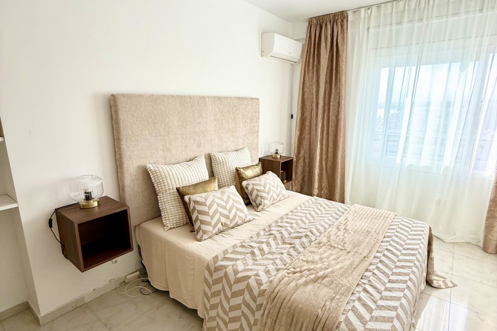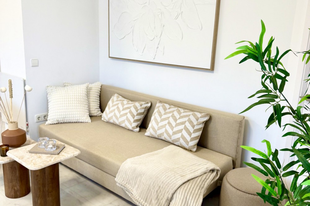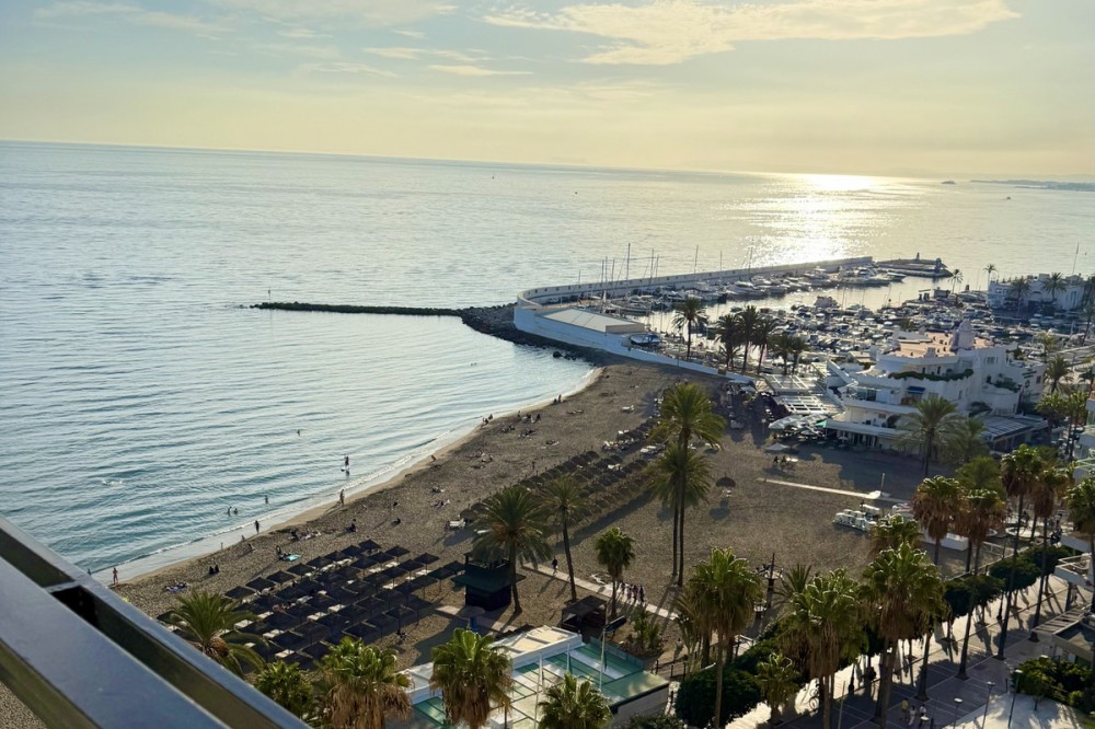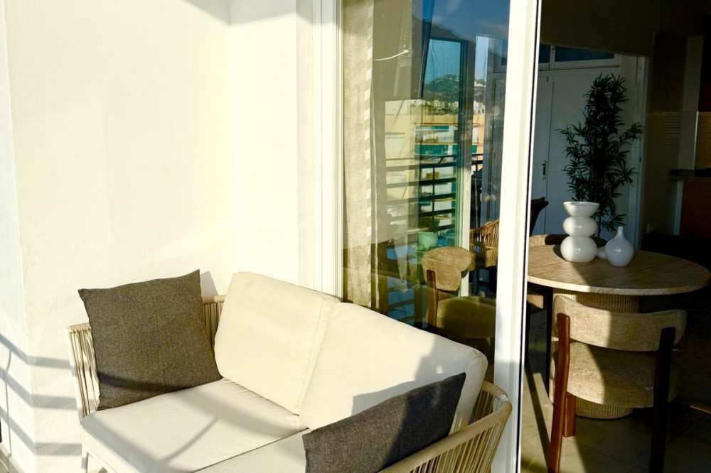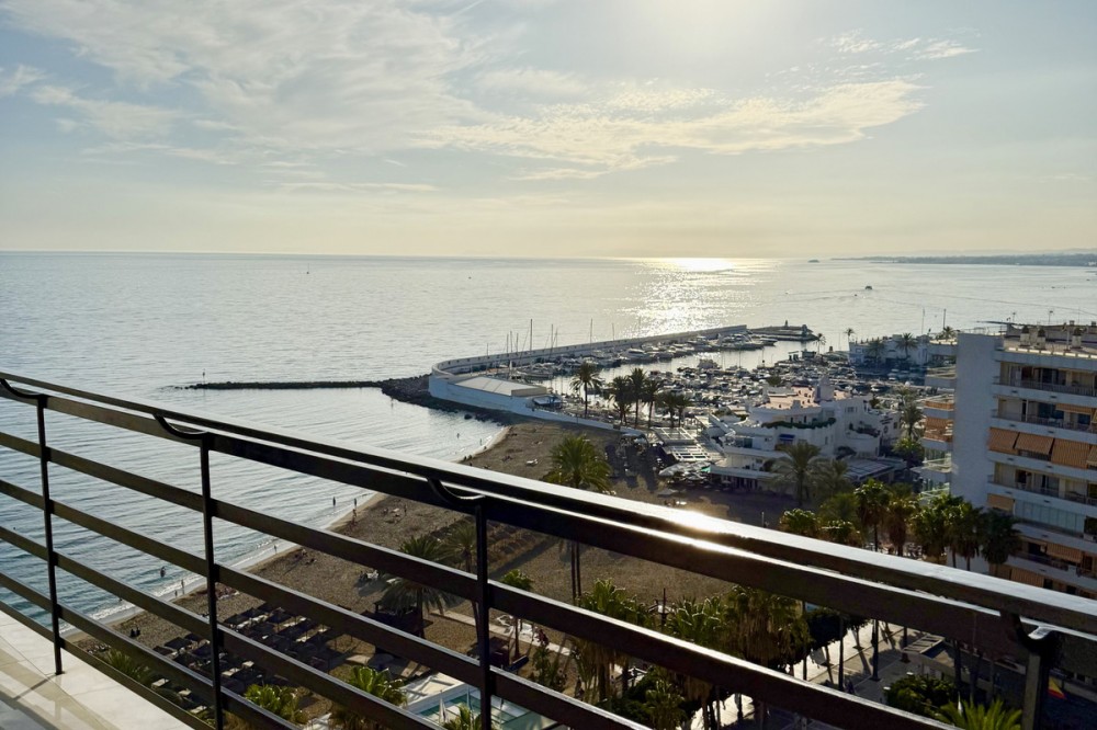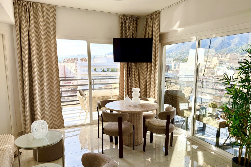 - Beachfront Investment in Central Marbella. Turnkey 1 bed apartment with rental license guaranteed for new owners. Ready for immediate move-in or rental. The community can fully manage your rentals, including bookings and key handling. A fully renovated apartment with an unbeatable beachfront location in the heart of Marbella – just a 5-minute walk from the Old Town and Plaza Del Los Naranjos. The property is completely move-in ready and can be rented out from day one. This top-renovated apartment combines comfort, security, and very strong rental potential. It is located in a secure urbanisation with 24-hour reception. Rentals are permitted by the homeowners’ association, and the building offers four elevators, ensuring convenience for both owners and guests. A key advantage for investors is that a rental license is granted to new owners, providing excellent conditions for stable and secure rental income. For those who prefer a hands-off ownership, there is a convenient arrangement where the reception assists with rentals, and the community can manage the entire rental process on your behalf, including bookings, key handling, and check-in/check-out. The property has a total area of 72 sqm, consisting of 52 sqm of living space and a generous 20 sqm wrap-around terrace. The terrace offers views of the sea and beach, as well as the mountains and the Old Town. Large panoramic windows provide abundant natural light and an open, airy atmosphere. Enjoy stunning sunsets, and in the evening, the rear side of the terrace reveals Marbella’s sparkling lights against the mountains and the Old Town – truly the best of both worlds. The interior features exclusive light oak throughout, including kitchen cabinetry, bedroom wardrobes, and bathroom storage. The apartment offers a spacious bedroom with views towards both the sea and the mountains, a modern bathroom with washing machine and heated towel rail, as well as a separate guest toilet. A public parking garage is located directly behind the building, convenient for guests arriving by car. The location is exceptional: frontline beach living with restaurants, shopping, and all services just steps away. A rare opportunity to secure a fully renovated beachfront apartment in central Marbella.