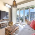 - Beachfront 1-Bedroom Apartment with Panoramic Sea Views & 24/7 Concierge – Edificio Mediterráneo, Golden Mile, Marbella With a valid tourist licence! Unique opportunity in one of Marbella’s most iconic and exclusive beachfront buildings: Edificio Mediterráneo, right on the Golden Mile promenade with direct sea views. This elegantly refurbished apartment has been tastefully decorated in a beautiful boho-chic style and features seamless indoor-outdoor living with large folding accordion doors that open the living area onto a west-facing terrace – perfect for spectacular sunsets over the Mediterranean. Key Features 1 bright double bedroom with sea views, fitted wardrobes, ceiling fan and large window 1 modern full bathroom with walk-in shower Open-plan living-dining room with air conditioning Fully equipped kitchen (oven, dishwasher, etc.) West-facing terrace with unobstructed sea, marina and city views Central heating & air conditioning Sold turnkey – ready to move in or rent Building Amenities 24/7 concierge and reception service Secure building with lift Prime Location Directly on the beachfront: step out of the lift and you’re on the famous Paseo Marítimo. Just moments from Dalí sculptures, the charming Old Town, best restaurants, boutiques, supermarkets and all services. Immediate access to public parking on Avenida del Mar. Ideal for both enjoying the true Marbella lifestyle and as a high-yield investment (proven strong tourist rental demand in this iconic building). Viewing highly recommended – contact us today to arrange a private viewing!