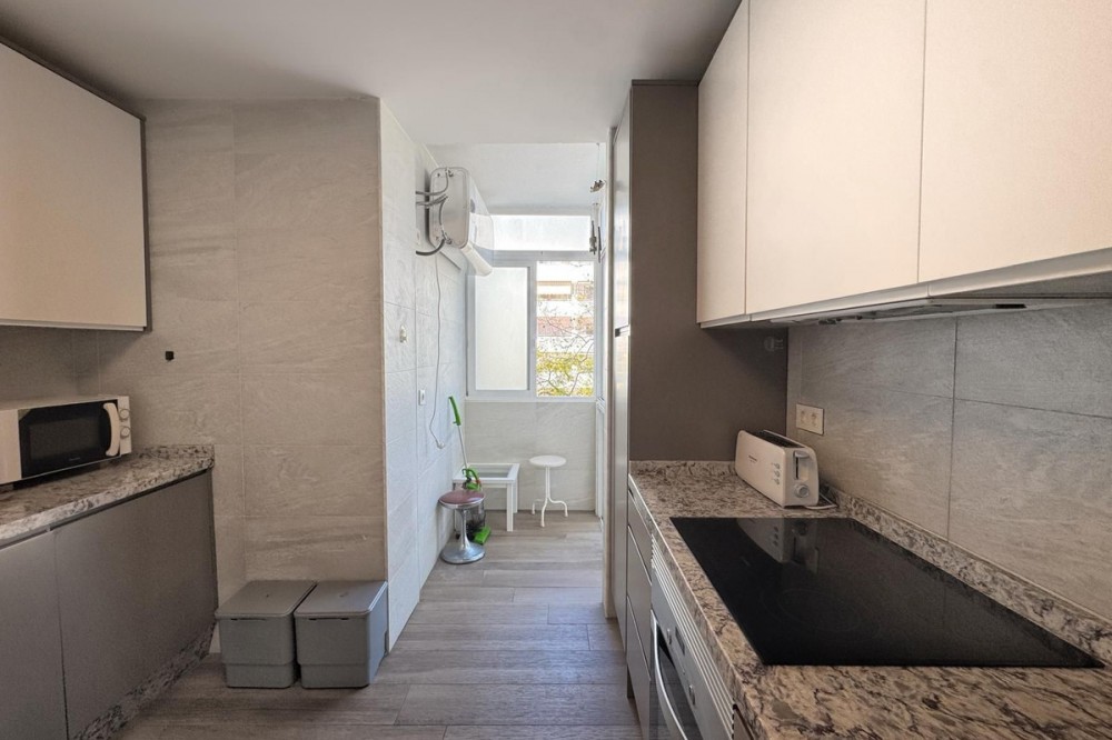 - Discover this magnificent apartment in Marbella, located in a privileged area where you will have everything you need within reach: bars, restaurants, leisure areas, shops, and all essential services for a comfortable and dynamic lifestyle. In addition, it is just a 5-minute walk from the beach, making it an ideal option to enjoy the Mediterranean lifestyle. The property is situated on the second floor of a building with an elevator and features 2 bedrooms and 1 bathroom. It boasts a spacious and bright living-dining room, filled with natural light thanks to a large window that opens onto a pleasant private terrace. From here, you can enjoy stunning panoramic views of the sea, Marbella’s old town, and La Concha, the most iconic mountain in the area. The kitchen is independent, fully equipped, and also includes a practical laundry area. The apartment has been renovated in a contemporary style, offering a modern and welcoming atmosphere. Among its features are air conditioning, independent electric heating, and fiber optic internet. Additionally, it has a tourist license, making it an excellent opportunity both as a permanent residence and as an investment. A bright, functional home with unique views in one of the best locations in Marbella.