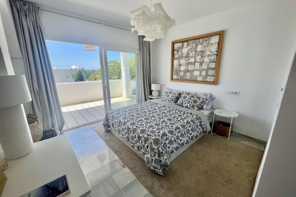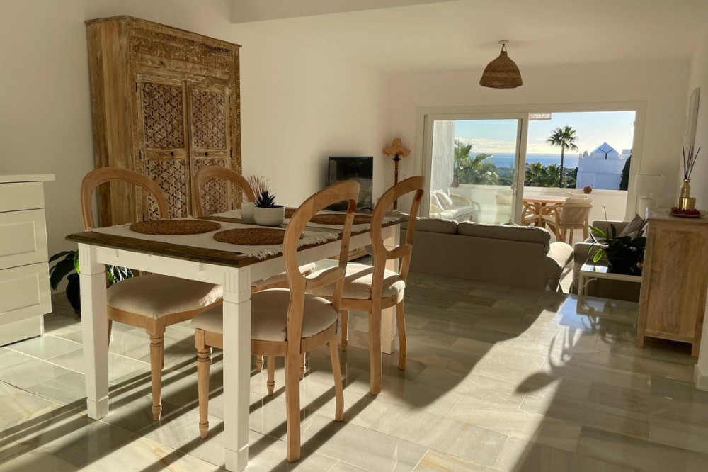 - Bright Apartment with Sea Views in la Reserva de Marbella This charming two-bedroom, two-bathroom apartment is located on the first floor of a quiet community, just under 10 minutes from the beach and the dunes of Cabopino. Fully renovated and furnished, the apartment features a fitted kitchen and air conditioning in two rooms, ready to move in. It is a legally registered property with LPO. The community offers a garden, a swimming pool, and communal parking, while the apartment also includes a private outdoor parking space. Situated in a peaceful neighborhood of villas and residential communities, it combines convenience with tranquility. Please note the building does not have an elevator and the community does not allow tourist rentals.