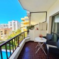 - Magnificent apartment for sale in Marbella, located just 100 meters from the beach and the promenade, in a quiet area yet close to all essential amenities: supermarkets, leisure areas, bars, and restaurants. The property is part of a well-maintained private residential complex featuring a swimming pool and beautifully kept communal gardens, perfect for enjoying the excellent climate all year round. Situated on the fourth floor, this bright exterior apartment offers pleasant views of the pool, gardens, mountains, and partial sea views. Thanks to its south-facing orientation, natural light fills the home throughout the day. The layout includes a spacious and bright living-dining room with direct access to a lovely terrace, ideal for relaxing or enjoying outdoor meals. It also features a fully equipped independent kitchen, two bedrooms, and one full bathroom. An excellent opportunity both as a permanent residence, a holiday home, or an investment in one of the most sought-after areas of the Costa del Sol.