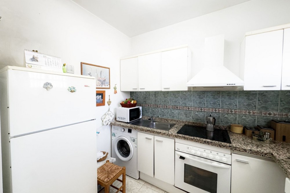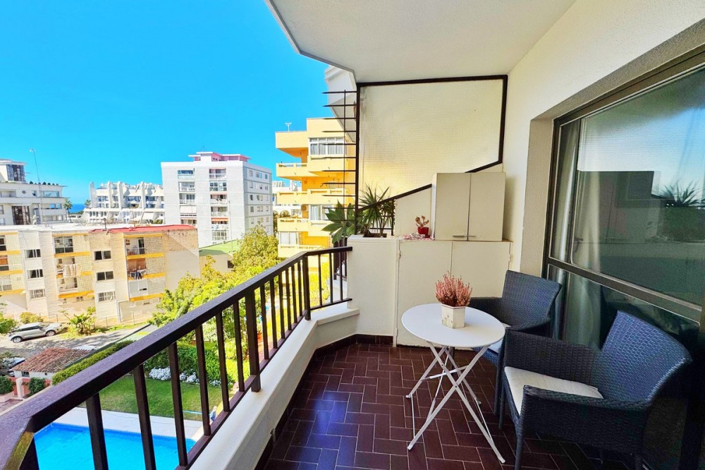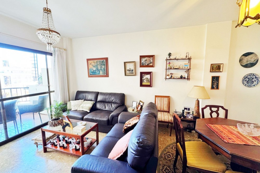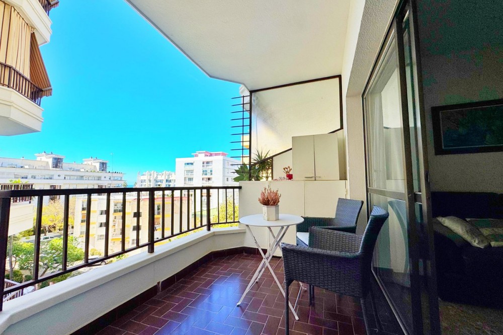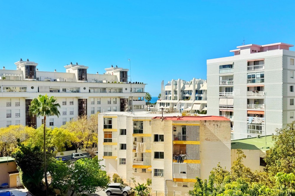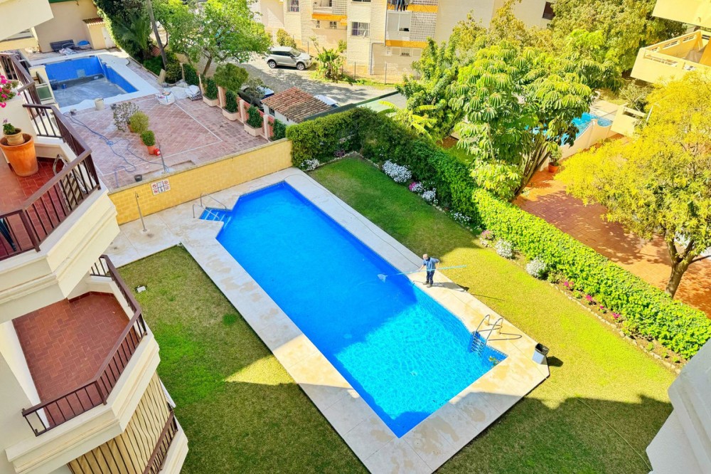 - Magnificent apartment for sale in Marbella, located just 100 meters from the beach and the promenade, in a quiet area yet close to all essential amenities: supermarkets, leisure areas, bars, and restaurants. The property is part of a well-maintained private residential complex featuring a swimming pool and beautifully kept communal gardens, perfect for enjoying the excellent climate all year round. Situated on the fourth floor, this bright exterior apartment offers pleasant views of the pool, gardens, mountains, and partial sea views. Thanks to its south-facing orientation, natural light fills the home throughout the day. The layout includes a spacious and bright living-dining room with direct access to a lovely terrace, ideal for relaxing or enjoying outdoor meals. It also features a fully equipped independent kitchen, two bedrooms, and one full bathroom. An excellent opportunity both as a permanent residence, a holiday home, or an investment in one of the most sought-after areas of the Costa del Sol.