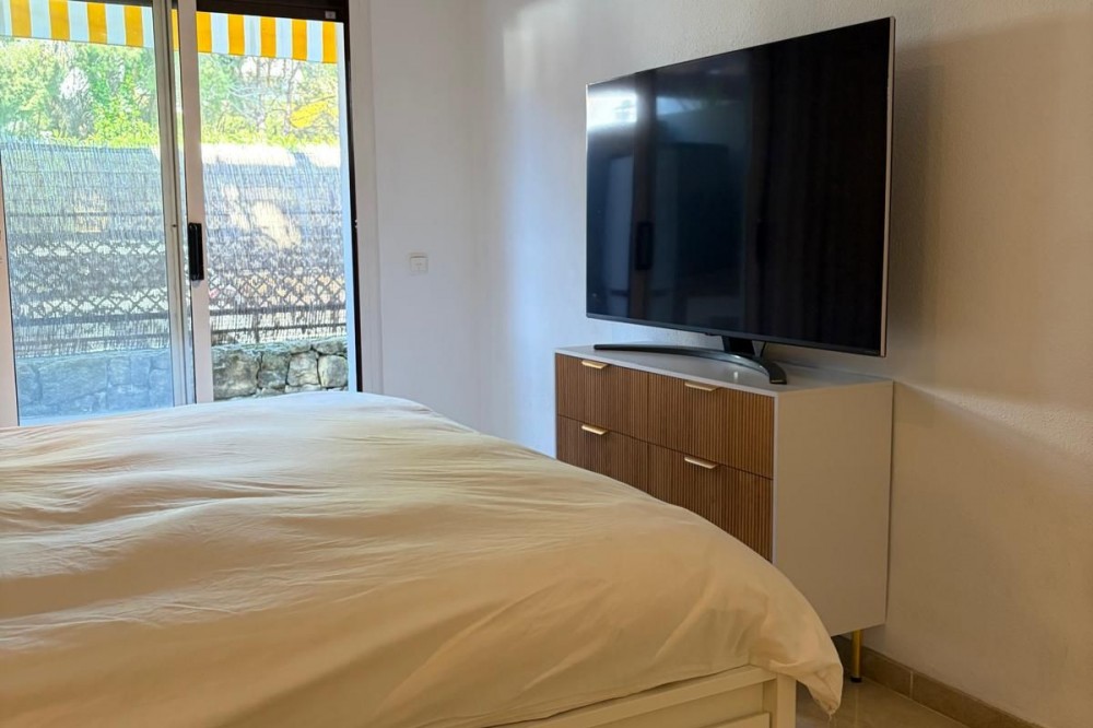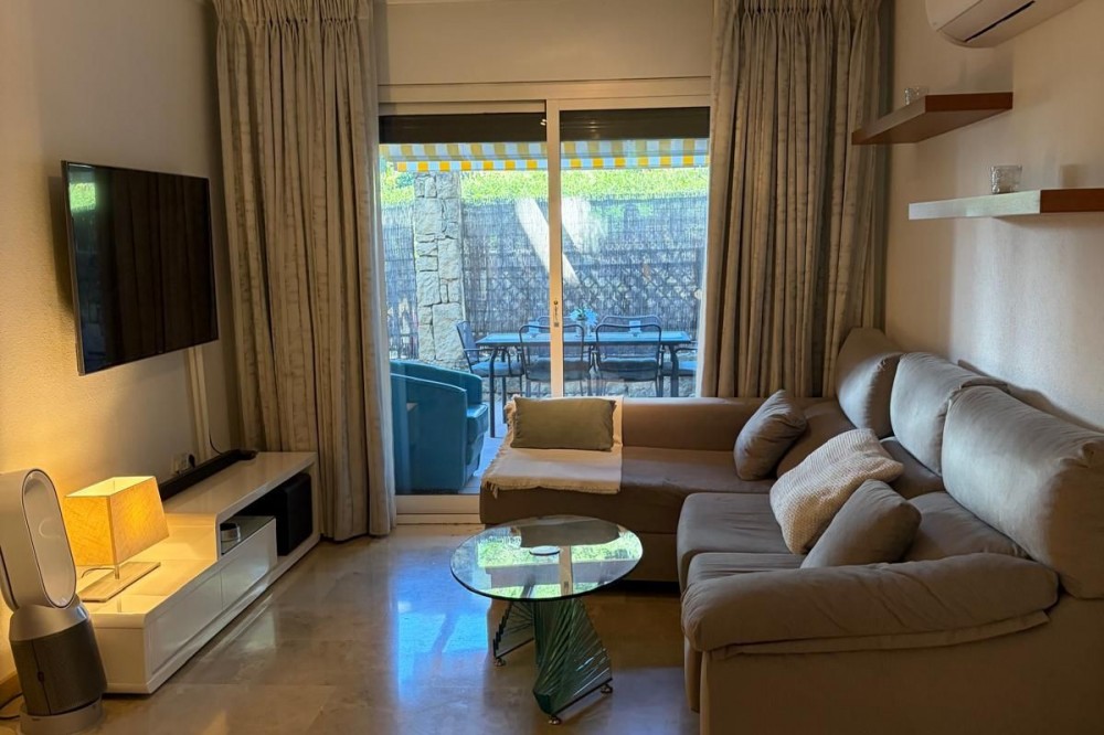 - Exclusive ground-floor apartment on Marbella’s Golden Mile Situated in the prestigious Las Lomas development of the Marbella Club, this elegant ground-floor apartment is located in one of Marbella’s most sought-after areas, just 2 km from Puerto Banús and the renowned Puente Romano beach. Its prime location, a mere 500 metres from Epic by Fendi and Design Hills — where Dolce & Gabbana’s new luxury developments are taking shape — makes it an excellent investment opportunity. The property forms part of a high-end residential complex, notable for its tranquillity, 24-hour security and concierge service (from 8:00 am to midnight, and 24 hours a day during the summer months). The development features well-maintained tropical gardens and attractive communal swimming pools. The apartment features a cosy entrance hall leading to a modern, fully fitted kitchen with top-of-the-range appliances (Bosch and Smeg). The spacious and bright living-dining room provides an ideal space for relaxation and socialising. It comprises two bedrooms with fitted wardrobes and two full bathrooms, one of which is en suite. The property is complemented by a magnificent 44 m² terrace, with direct access from the kitchen, living room and both bedrooms, perfect for enjoying the Mediterranean climate. It is sold fully furnished and equipped, ready to move into. Key features include: Daikin inverter air conditioning throughout the property Translated with DeepL.com (free version)