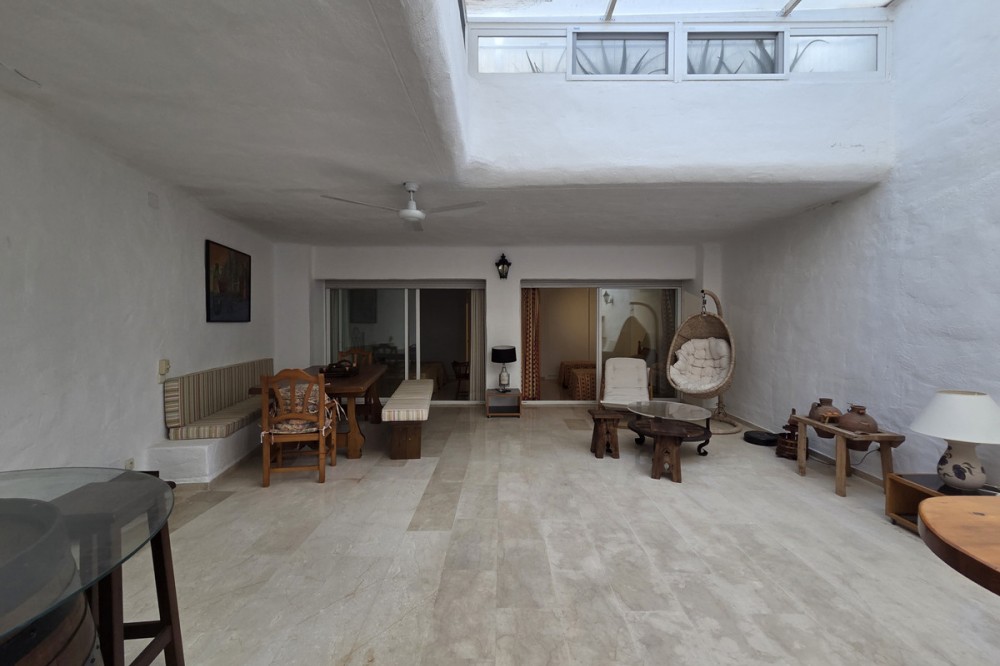 - Located in the sought-after Birdie Club complex in Río Real, East Marbella, this impressive south-facing duplex offers generous living spaces, abundant natural light, and a versatile layout ideal for family living. Set within a well-maintained urbanisation featuring a swimming pool and children’s park, the property also benefits from direct street access with a security barrier, ensuring both convenience and peace of mind. The home is distributed over two levels and comprises four bedrooms, three bathrooms—two of them en-suite—and a guest toilet on the main floor. The main level is designed for day-to-day living and entertaining, accessed via a spacious terrace connected to the communal pool area. Upon entering, a large entrance hall creates a strong sense of space and could even be adapted into an additional room if desired. This floor also includes a bright and generously sized kitchen with a separate utility terrace, as well as an expansive living and dining area that opens onto a large south-facing terrace, perfect for enjoying the sun throughout the day. The lower level is dedicated to the sleeping quarters. The principal bedroom features an en-suite bathroom and direct access to a wide terrace with a charming private garden. A second bedroom also benefits from an en-suite bathroom and shares this outdoor space. Two additional bedrooms are positioned near a third bathroom and have access to a large covered interior terrace, a highly versatile area that can be adapted as a leisure space, entertainment room, or relaxation zone. Offering multiple outdoor areas, excellent orientation, and a flexible layout, this property is perfectly suited for families seeking comfort, space, and quality of life. Its location in Río Real places it just minutes from the beach, golf courses, Marbella centre, and a wide range of amenities, making it an outstanding choice for both permanent living and investment.