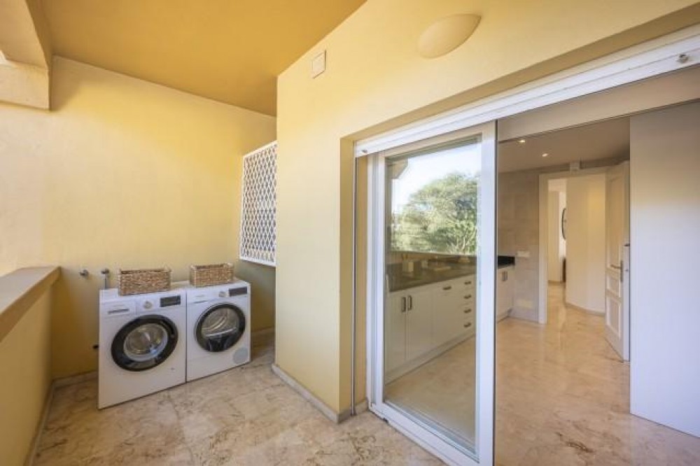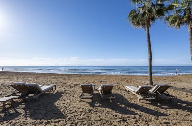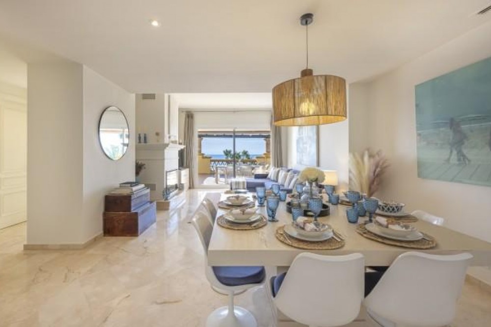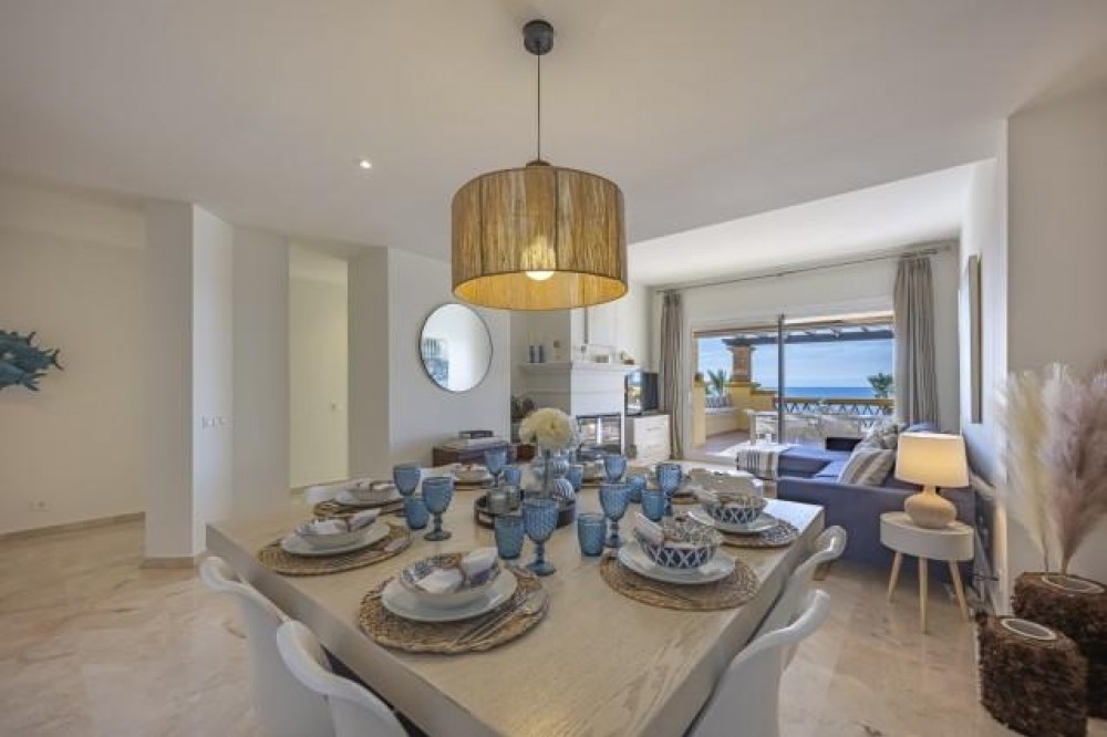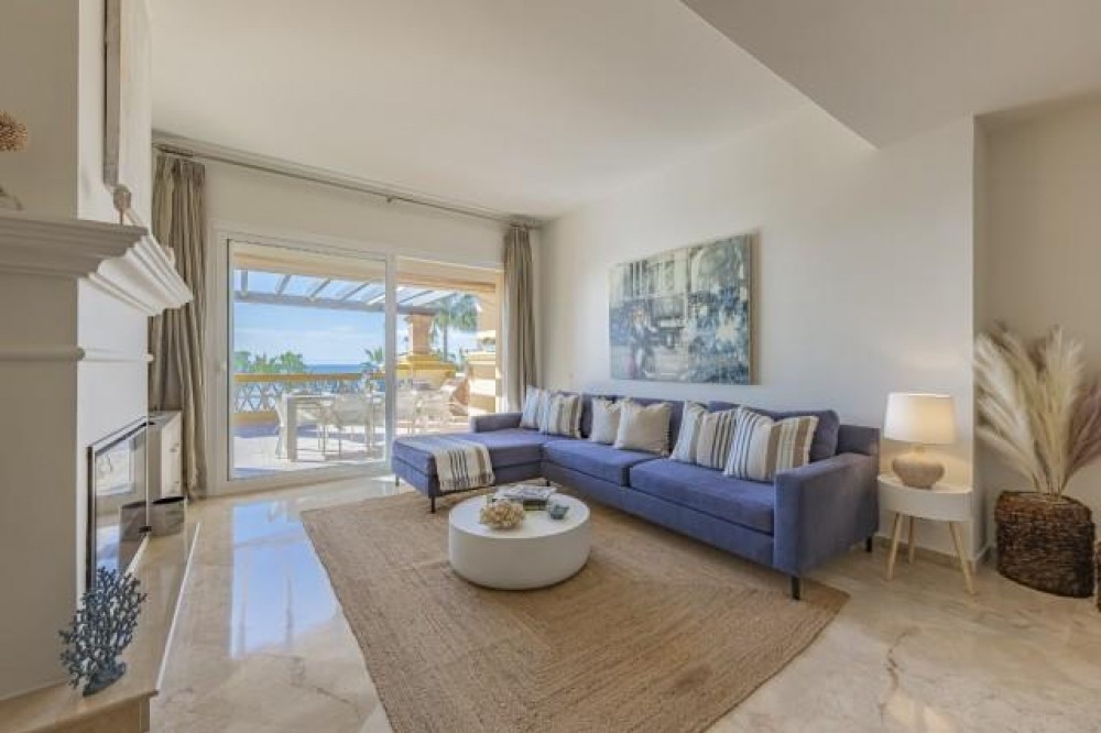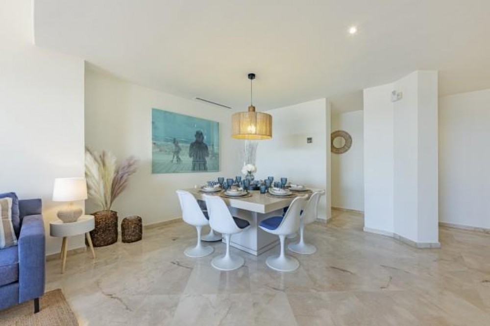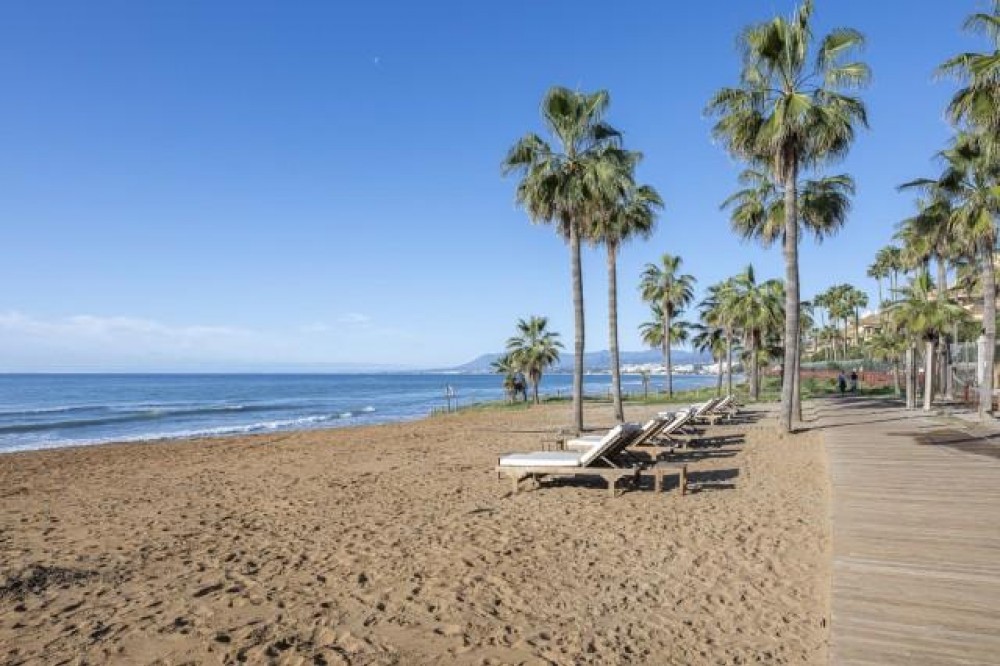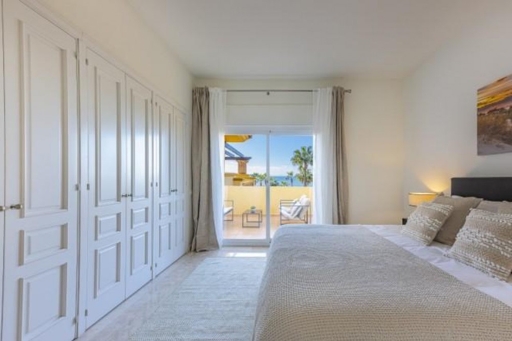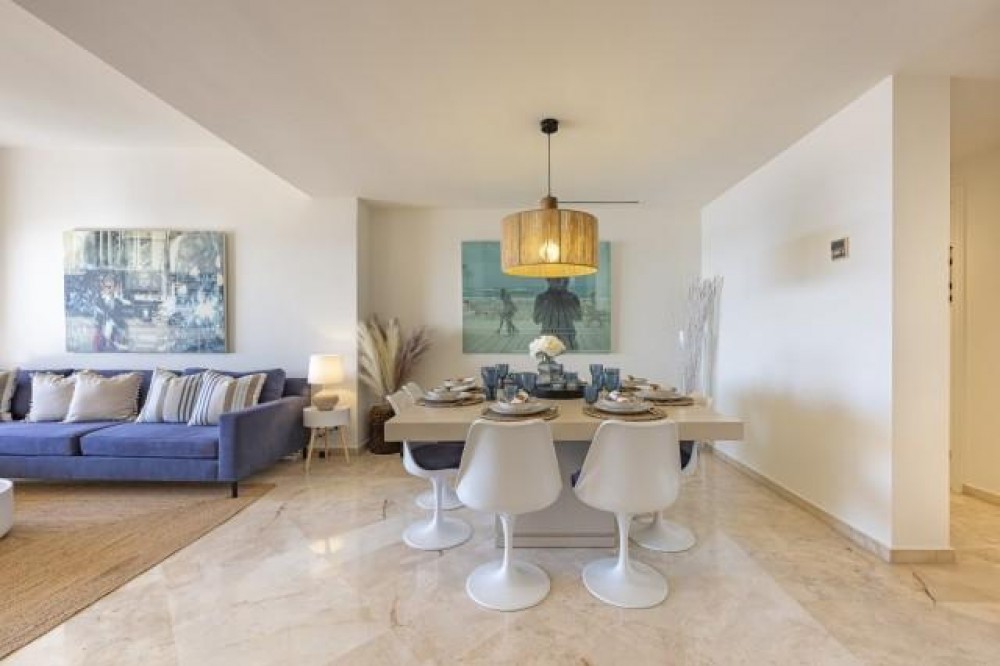 - Dit prachtige appartement met 3 slaapkamers biedt een adembenemend uitzicht op zee en is gelegen in een rustige gemeenschap aan het strand, genesteld rond de prestigieuze Rio Real Golf Course in Oost-Marbella. Het appartement baadt in natuurlijk licht en beschikt over een uitnodigende hal, een volledig uitgeruste keuken, een ruime woon- en eetkamer met panoramisch uitzicht, drie ruime slaapkamers en drie elegante badkamers. De woonkamer komt uit op een fantastisch terras van 45 m² op het zuiden, perfect om buiten te eten en te genieten van de mediterrane sfeer. Twee van de slaapkamers bieden direct uitzicht op zee en een eigen badkamer, terwijl de derde een eigen terras heeft. De woning beschikt over een handige parkeerplaats en twee opslagruimtes. Het Rio Real Playa-complex is een oase van weelderige tuinen en twee gemeenschappelijke zwembaden. Het ligt op slechts 5 minuten lopen van de beroemde Trocadero Beach Club en in de buurt van het Rio Real Hotel & Golf Club en zijn exclusieve voorzieningen. De internationale luchthaven van Malaga ligt op slechts 30 minuten rijden. De Rio Real Playa-community verbetert de woonervaring met twee gemeenschappelijke zwembaden (waarvan één verwarmd) en prachtig onderhouden tuinen. Er is ook gratis parkeergelegenheid voor vrienden en gasten. Extra voorzieningen zijn onder meer airconditioning, elektrische rolluiken, ingebouwde kasten, een wasruimte, dubbel glas en een beveiligde gated community. Ervaar het ultieme in wonen aan het strand met dit buitengewone appartement in Marbella East.
