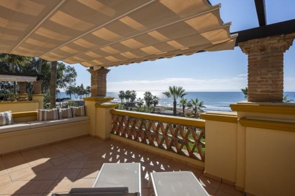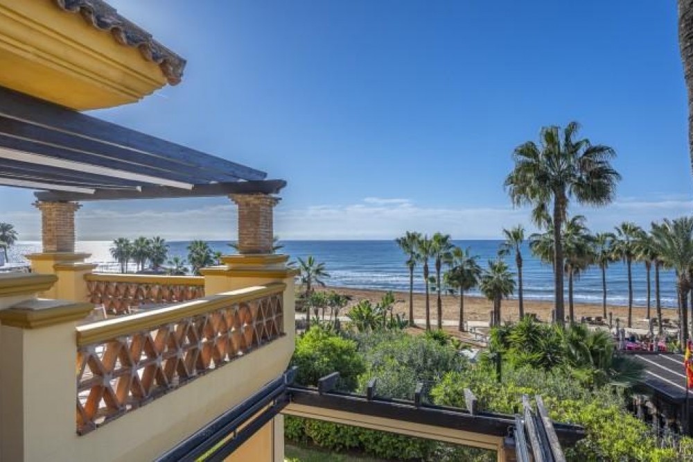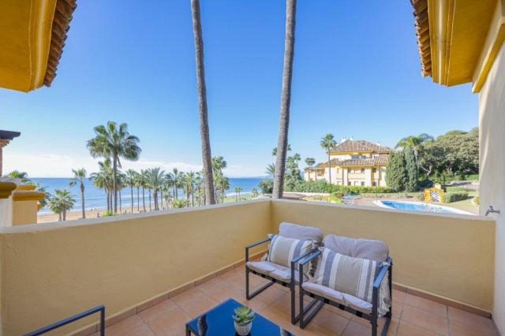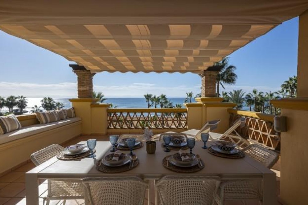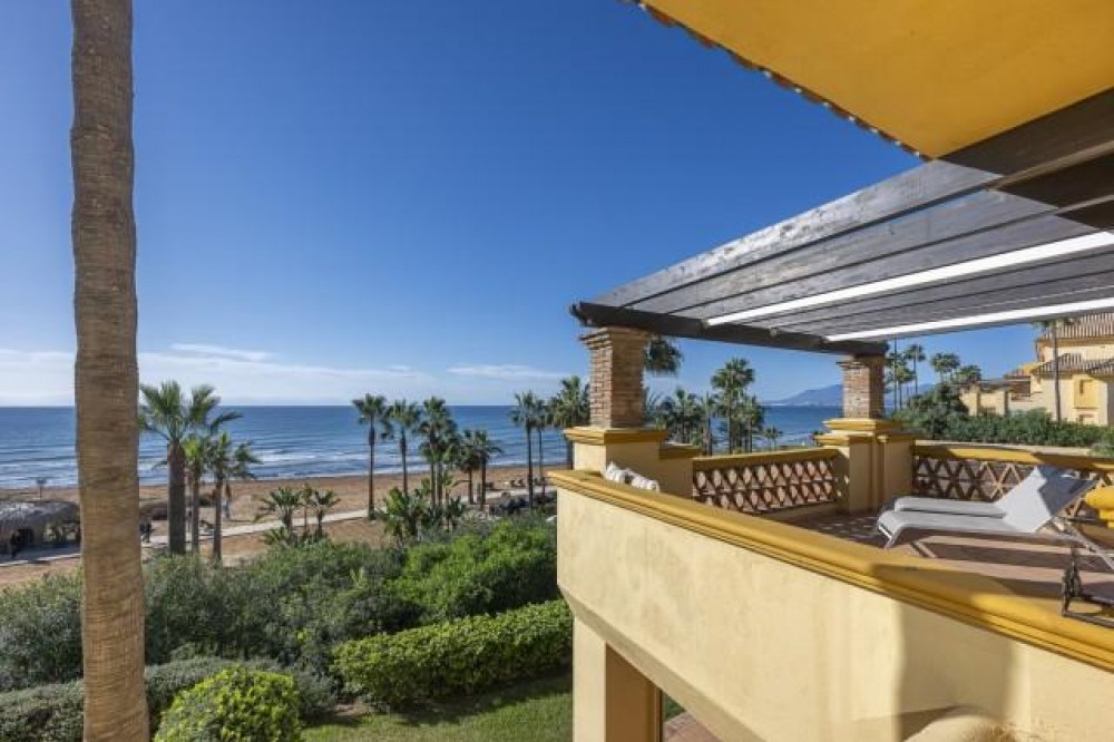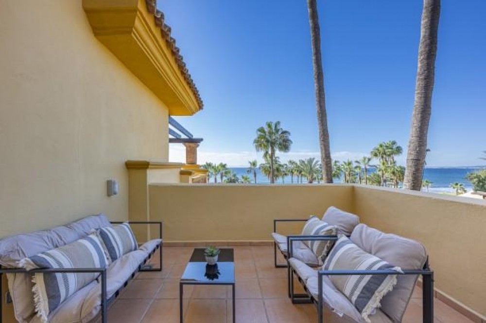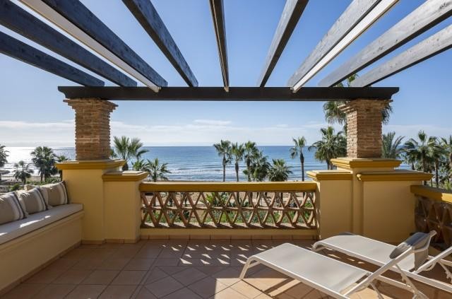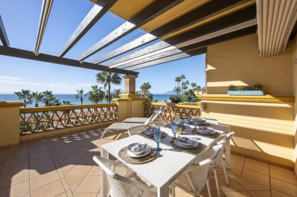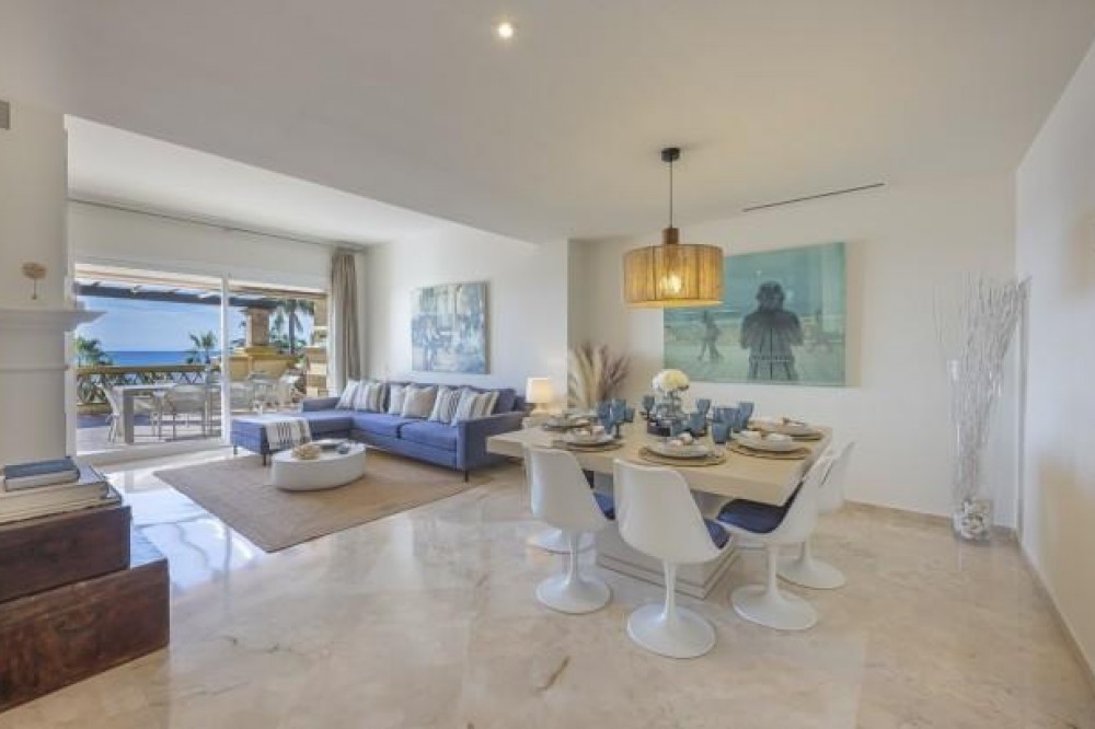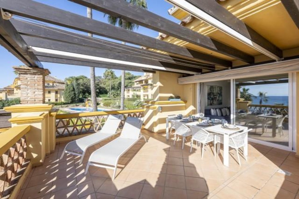 - Dit prachtige appartement met 3 slaapkamers biedt een adembenemend uitzicht op zee en is gelegen in een rustige gemeenschap aan het strand, genesteld rond de prestigieuze Rio Real Golf Course in Oost-Marbella. Het appartement baadt in natuurlijk licht en beschikt over een uitnodigende hal, een volledig uitgeruste keuken, een ruime woon- en eetkamer met panoramisch uitzicht, drie ruime slaapkamers en drie elegante badkamers. De woonkamer komt uit op een fantastisch terras van 45 m² op het zuiden, perfect om buiten te eten en te genieten van de mediterrane sfeer. Twee van de slaapkamers bieden direct uitzicht op zee en een eigen badkamer, terwijl de derde een eigen terras heeft. De woning beschikt over een handige parkeerplaats en twee opslagruimtes. Het Rio Real Playa-complex is een oase van weelderige tuinen en twee gemeenschappelijke zwembaden. Het ligt op slechts 5 minuten lopen van de beroemde Trocadero Beach Club en in de buurt van het Rio Real Hotel & Golf Club en zijn exclusieve voorzieningen. De internationale luchthaven van Malaga ligt op slechts 30 minuten rijden. De Rio Real Playa-community verbetert de woonervaring met twee gemeenschappelijke zwembaden (waarvan één verwarmd) en prachtig onderhouden tuinen. Er is ook gratis parkeergelegenheid voor vrienden en gasten. Extra voorzieningen zijn onder meer airconditioning, elektrische rolluiken, ingebouwde kasten, een wasruimte, dubbel glas en een beveiligde gated community. Ervaar het ultieme in wonen aan het strand met dit buitengewone appartement in Marbella East.