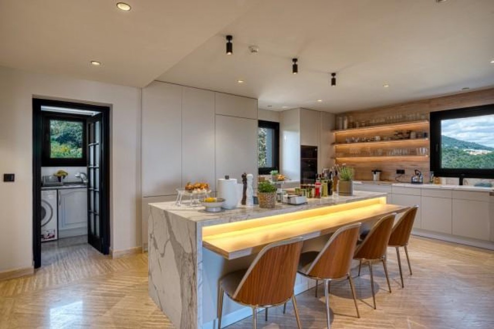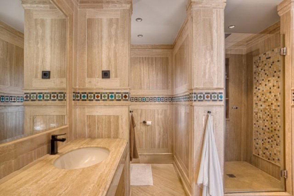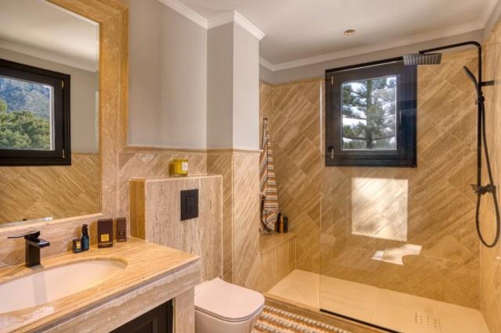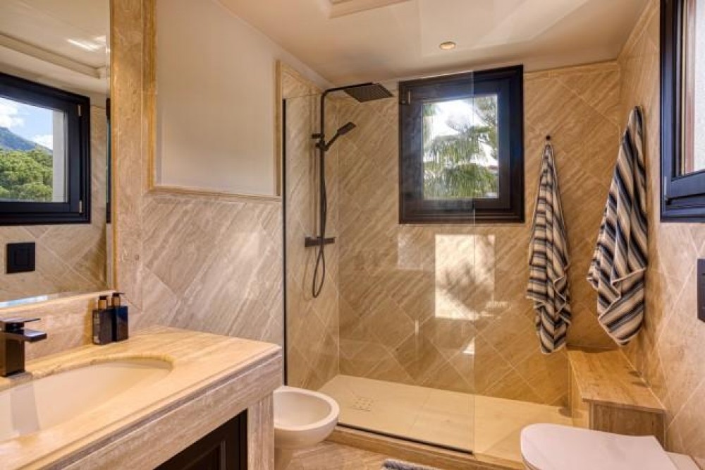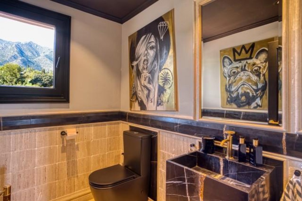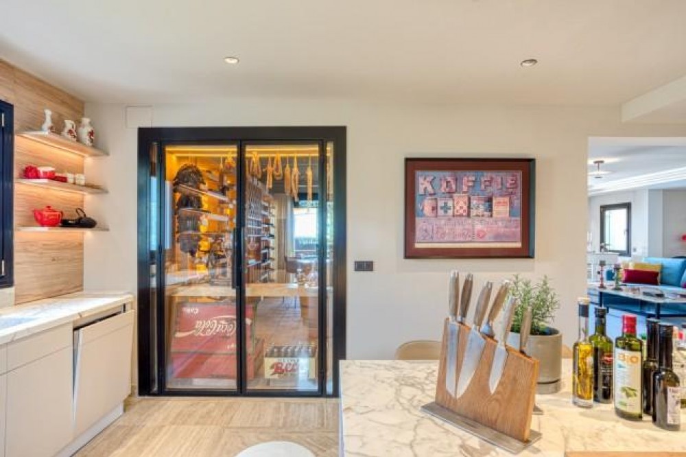 - Spectaculair duplex penthouse met vier slaapkamers en uitzicht op het zuiden in de prestigieuze en afgesloten gemeenschap van Monte Paraiso Country Club, met adembenemend uitzicht op zee en de bergen. Deze gewilde urbanisatie beschikt over 24-uurs beveiliging, drie buitenzwembaden, een lift en prachtig onderhouden tropische tuinen. Het pand verkeert in uitstekende staat en beschikt over een ruime woon- en eetkamer met directe toegang tot een groot privéterras, perfect om te genieten van het prachtige uitzicht. De aparte, volledig uitgeruste keuken heeft een bijkeuken. Alle vier de slaapkamers hebben een eigen badkamer, waarbij de master suite een inloopkast met uitzicht op zee en een luxe badkamer heeft. Daarnaast is er een gastentoilet. Op de bovenste verdieping biedt het penthouse drie uitgestrekte terrassen, ideaal voor buitenentertainment, inclusief een barbecueplek. Een eigen wijnkelder voegt een vleugje exclusiviteit toe. Andere voorzieningen zijn vloerverwarming, airconditioning, marmeren vloeren, een berging en een eigen parkeerplaats voor twee grote voertuigen. Dit is een unieke kans om een luxe penthouse te bezitten in een van de meest exclusieve gemeenschappen van Marbella, op slechts enkele minuten van het strand en het beroemde Puente Romano Hotel. natuurlijk licht