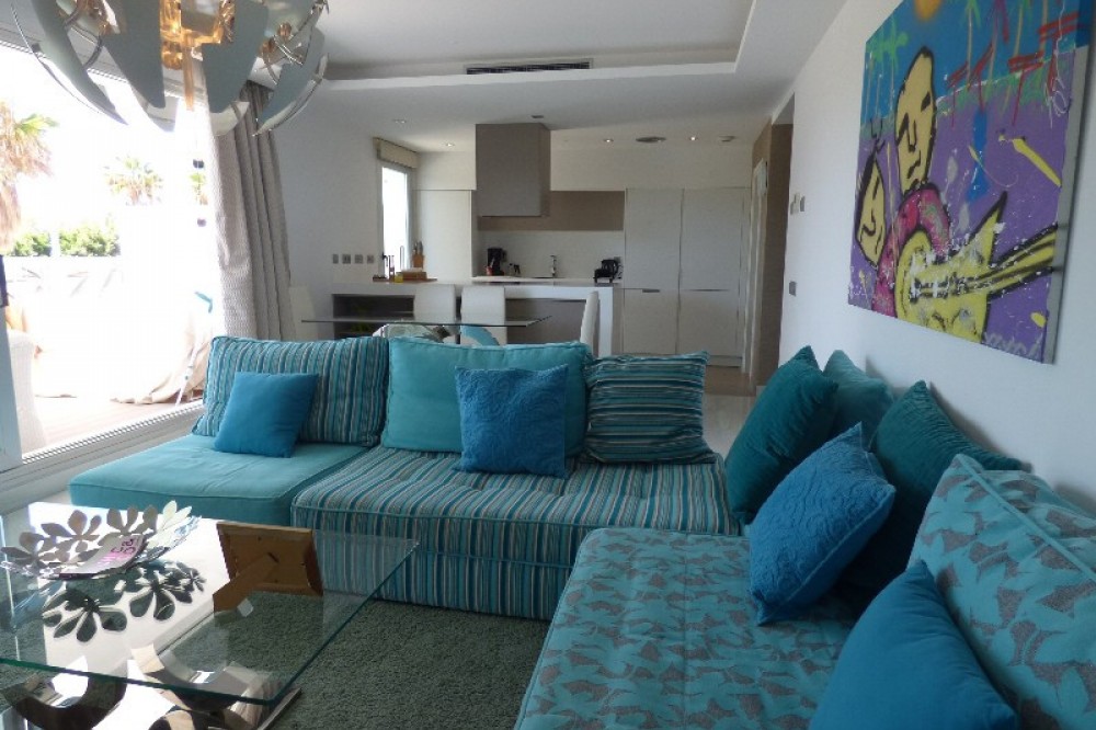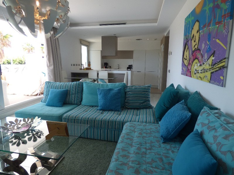 - Apartment for sale in Jade Beach, San Pedro de Alcantara. This south facing, first floor apartment is located less then 400 meters from San Pedro beach and its promenade leading to Puerto Banus and Marbella. An excellent location, only 5 minutes'' drive to Puerto Banus and less than 10 minutes to the centre of Marbella. It is a rare opportunity to find a property within walking distance to all kind of facilities, as the beach, international schools, San Pedro town centre with nice Spanish restaurants, shops, boutiques and of course the new Boulevard that offers amusements throughout the year. The apartment has been built to a high standard using quality materials and modern design. It comprises of 3 spacious double bedrooms and 2 bathrooms (one en-suite). The open plan kitchen and living area leads directly to an extensive terrace with a dining area and plenty of room for a sofa area and separate sunbathing area. The kitchen is fully fitted with breakfast bar and separate laundry room. Features are under floor heating in bathrooms, air conditioning, underground parking space, storage room and communal swimming pool.Possibility of enclosing the terrace with glass curtains gaining extra living area for the winter, but still have an open terrace in the summer or whenever one wishes..2 underground parking spaces plus 1 big storeroom included in the price. Furniture not included!!