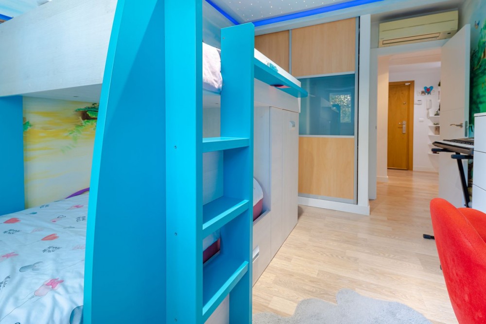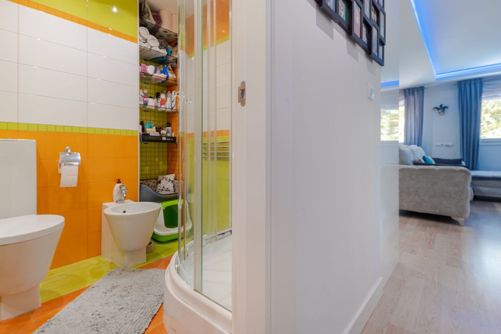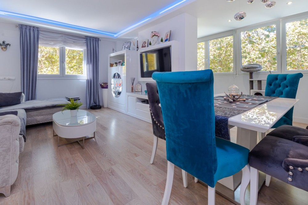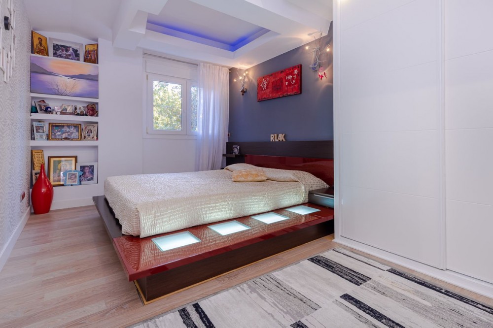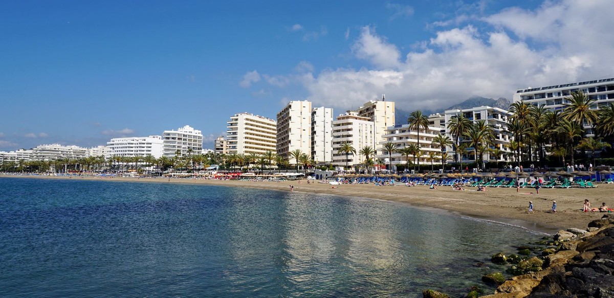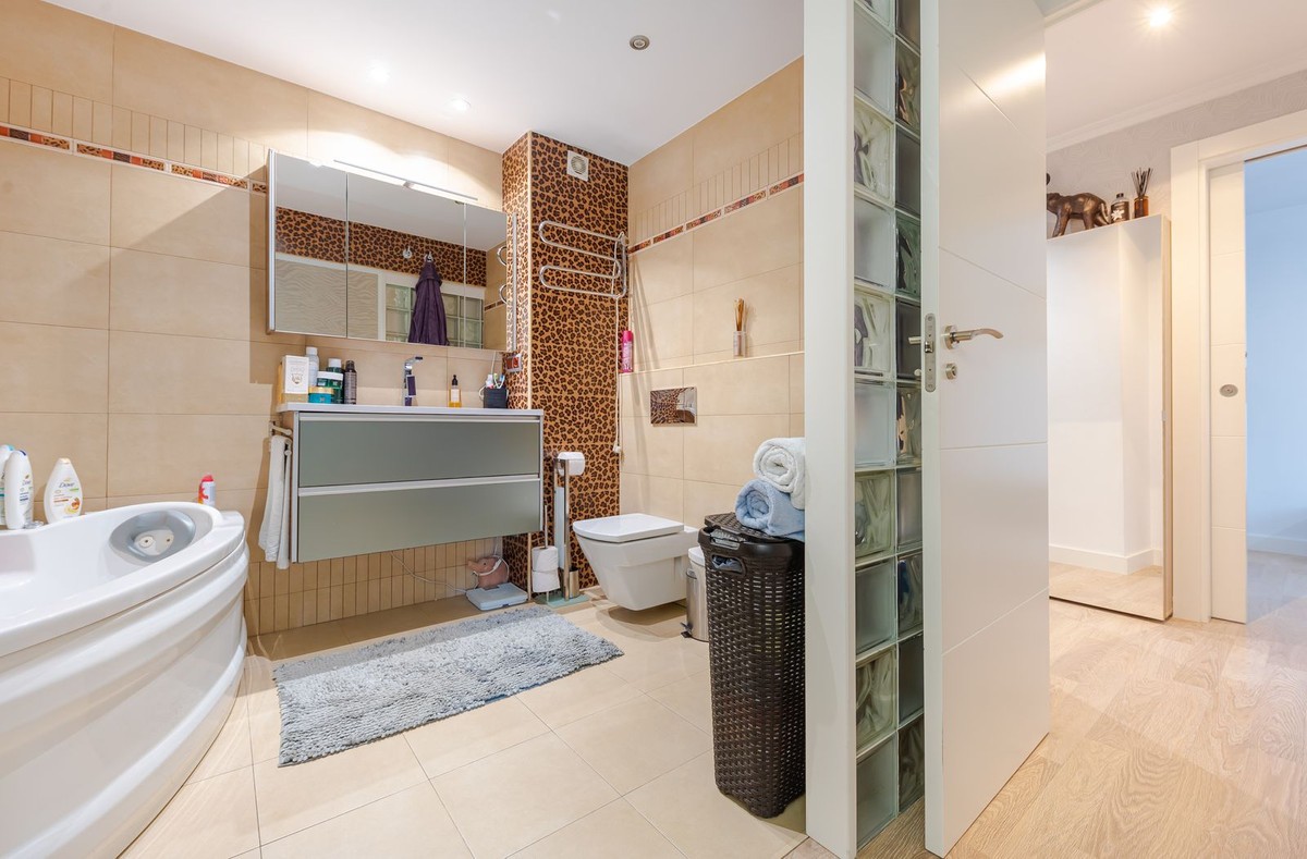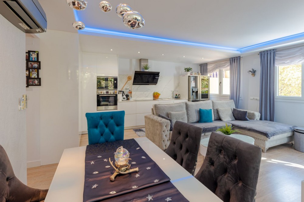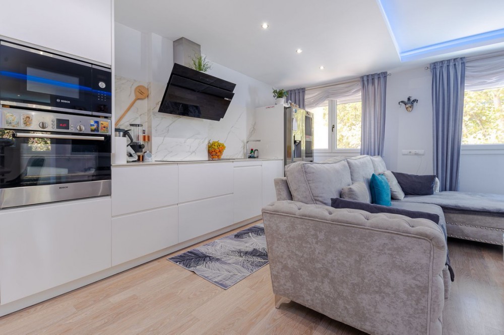 - Marina Terraces! Has Tourist licence! This 3-bedroom, 2-bathroom condo is move-in ready! It has everything you can imagine! Recently refurbished and with garage and storage! housing: 112 m2 plus 32 m2 of garage and 17m2 storage room Bathrooms, kitchen, floors, cabinets, ceilings and windows have recently been changed, the entire apartment is remodeled with many details: LED lights in different colors on the ceilings, custom-made wooden wardrobes, custom-made shelves - furnished with very good taste! This apartment is ideal to live all year round or also as an investment to rent because it is very central to everything: shops downstairs in the building, pharmacy 100 m, ambulatory right in front, cefeterias nearby and the beach only 7 min. Middle Floor Apartment, Marbella, Costa del Sol. 3 Bedrooms, 2 Bathrooms, Built 112 m². Setting : Town, Close To Shops, Close To Sea, Close To Schools, Urbanisation. Orientation : North West. Condition : Excellent, Recently Renovated. Pool : Communal, Children`s Pool. Climate Control : Air Conditioning, Hot A/C, Cold A/C. Views : Urban, Street. Features : Lift, Fitted Wardrobes, Near Transport, Storage Room, Ensuite Bathroom, Access for people with reduced mobility, Jacuzzi, Double Glazing, Courtesy Bus, Basement, Handicap access. Furniture : Fully Furnished. Kitchen : Fully Fitted. Garden : Communal. Security : Gated Complex, Entry Phone. Parking : Underground. Utilities : Electricity, Drinkable Water. Category : Resale.