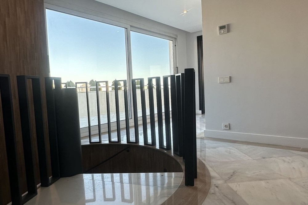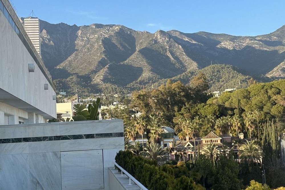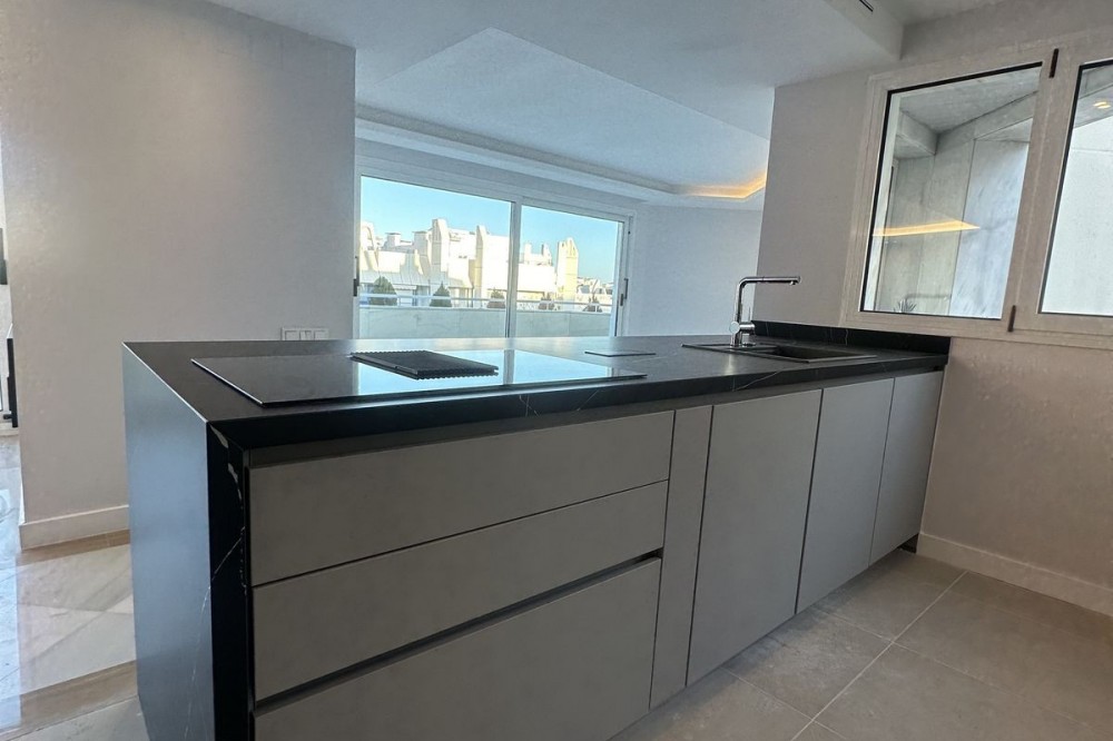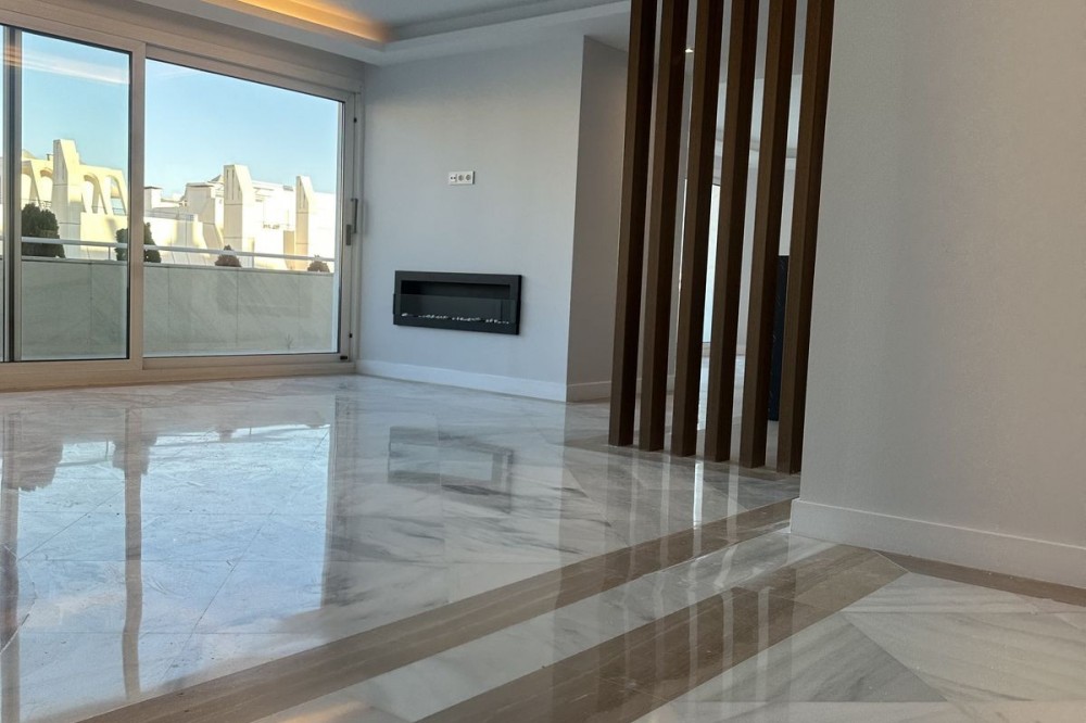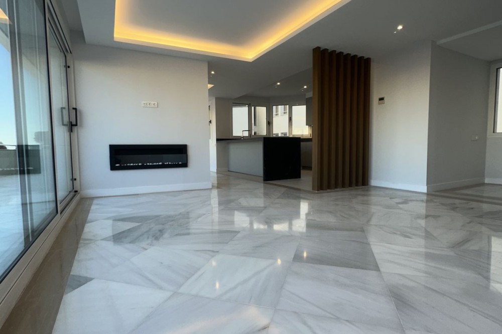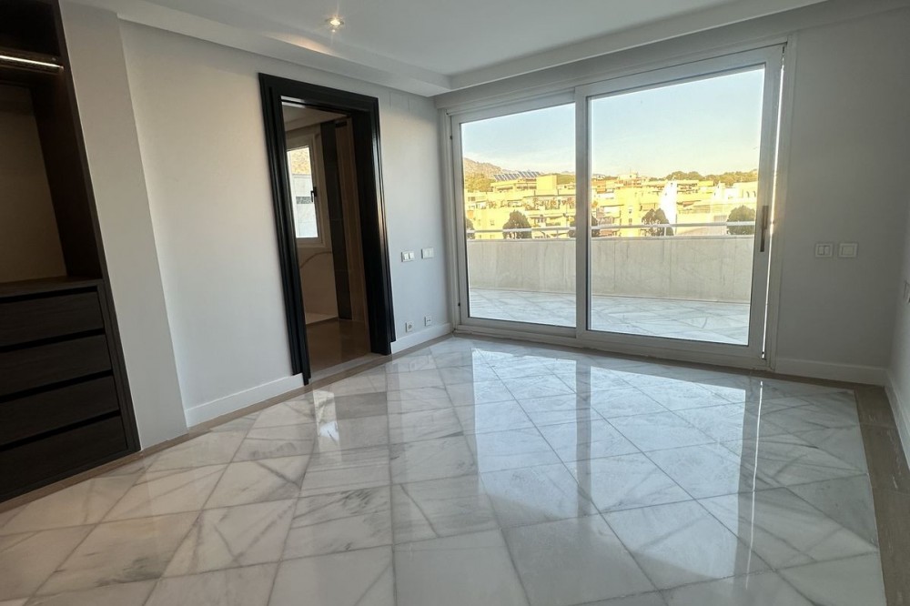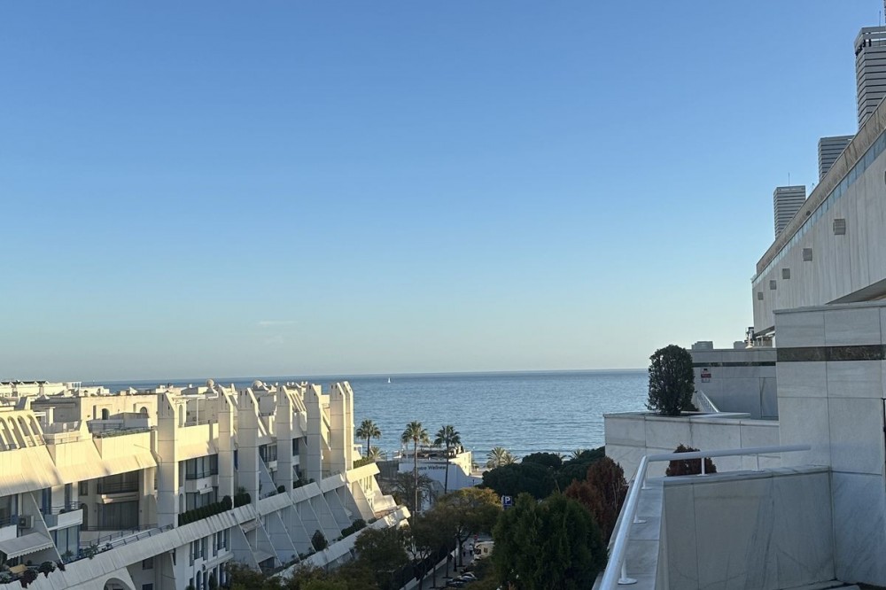 - We present a unique opportunity to acquire a newly renovated, brand-new duplex penthouse in the luxurious Cipreses del Mar ( Náyade building ) development, located in the heart of Marbella's Golden Mile and the second line from the sea, offering magnificent and open views of the sea and mountains. The development offers all kinds of amenities, including a large communal pool, a children's pool, and a perfectly maintained garden area. It also features 24-hour concierge service and security. In addition to enjoying the luxury of having the sea just 100 meters away, you will find all kinds of restaurants, supermarkets, pharmacies, and cafes nearby. The property consists of three bedrooms (two of them en suite), three bathrooms, a guest toilet, a large furnished kitchen area, a living room with a fireplace, and a dining room. The price includes two spacious garage spaces. The first floor is distributed into an entrance hall that leads to the living room, kitchen, and dining room, all of which share a large terrace, a guest toilet, and a bedroom with an en-suite bathroom. A modern staircase takes us to the second floor, where there is another bedroom, a full bathroom, a wardrobe area, and a large master bedroom with a dressing area and a full bathroom, all with access to the large terrace with views. The property has been recently renovated with top-quality materials and finishes, making it one of the best properties for sale in the area. 3D renderings with a real decoration project for furnishing are attached. Without a doubt, it is worth a visit!