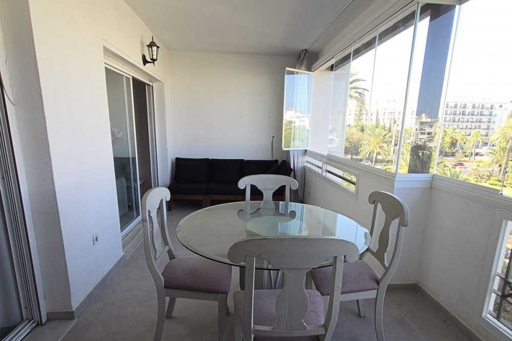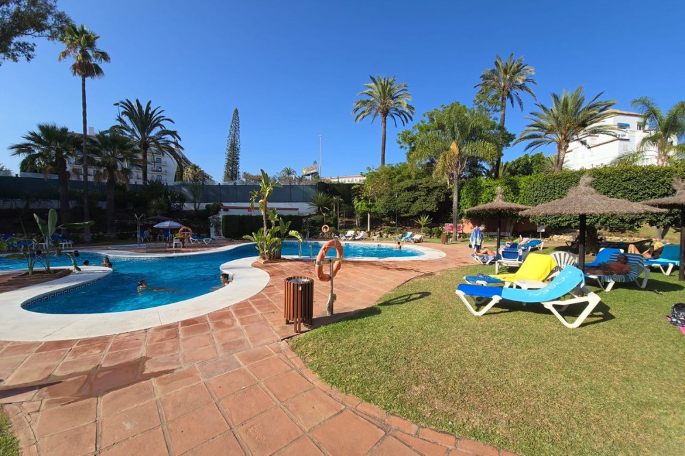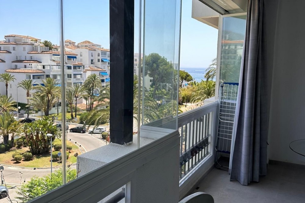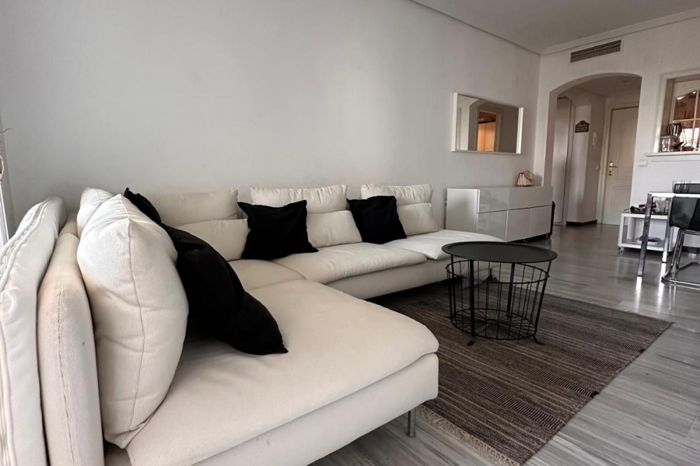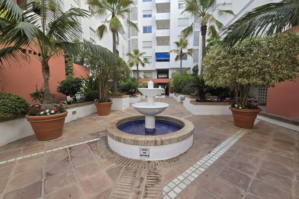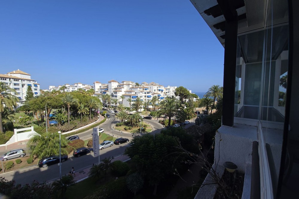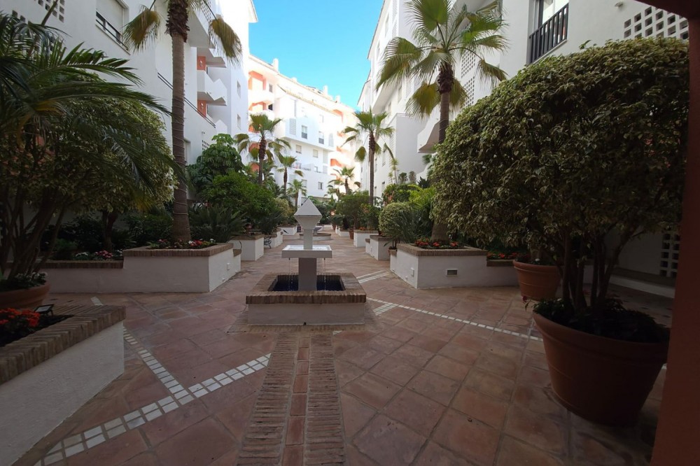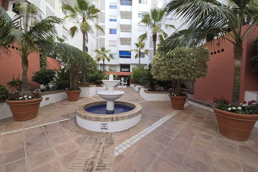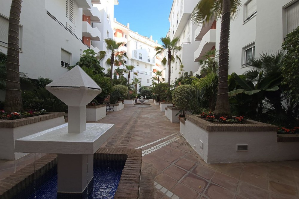 - Flat for sale within walking distance to the luxury shops of Puerto Banus, 5 minutes walking distance to the port, shopping centre and restaurants. The flat is located in a beautiful urbanization with gardens and swimming pool, 24h security. It consists of a living-dining room, kitchen with opening to the living room, 1 bedroom with wardrobes, 1 complete bathroom, and a terrace with beautiful sea and mountain views. Sold with garage space, storage room. Selling price 480.000€.