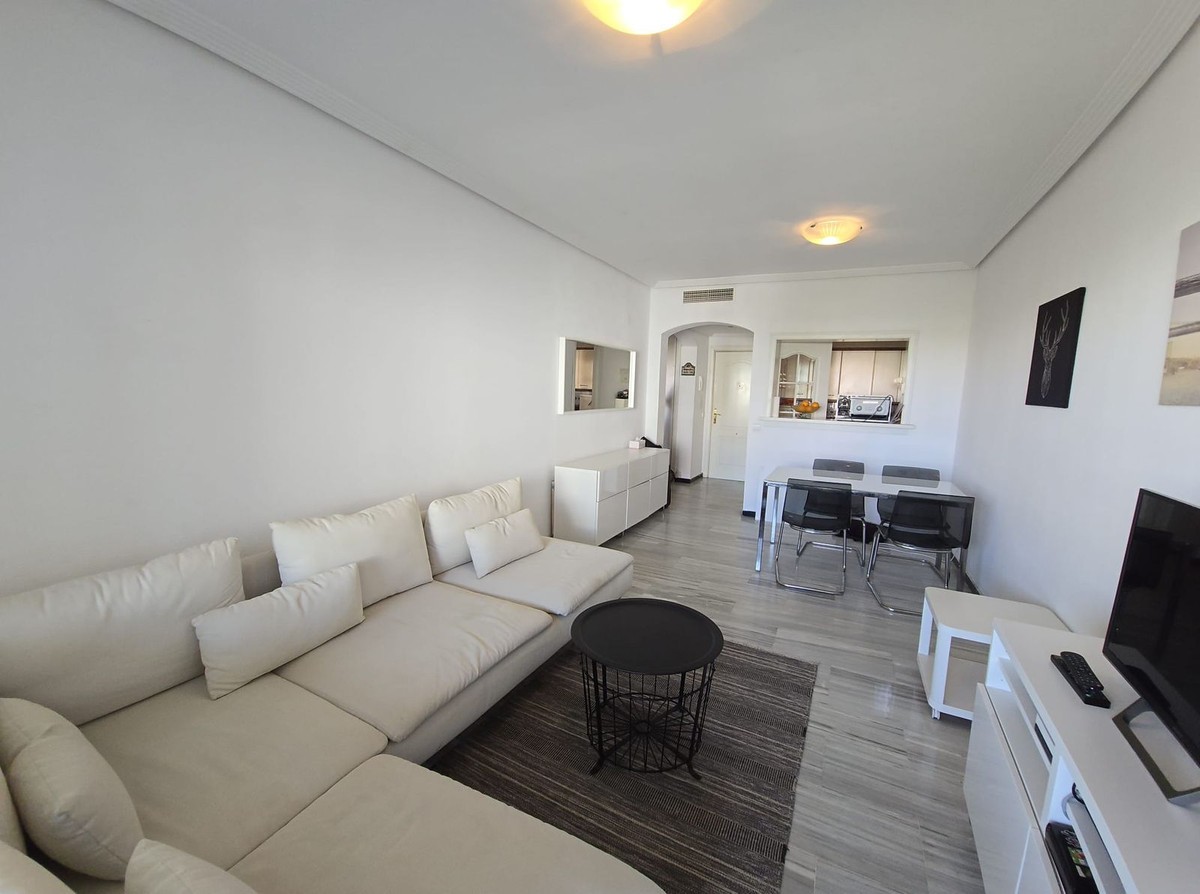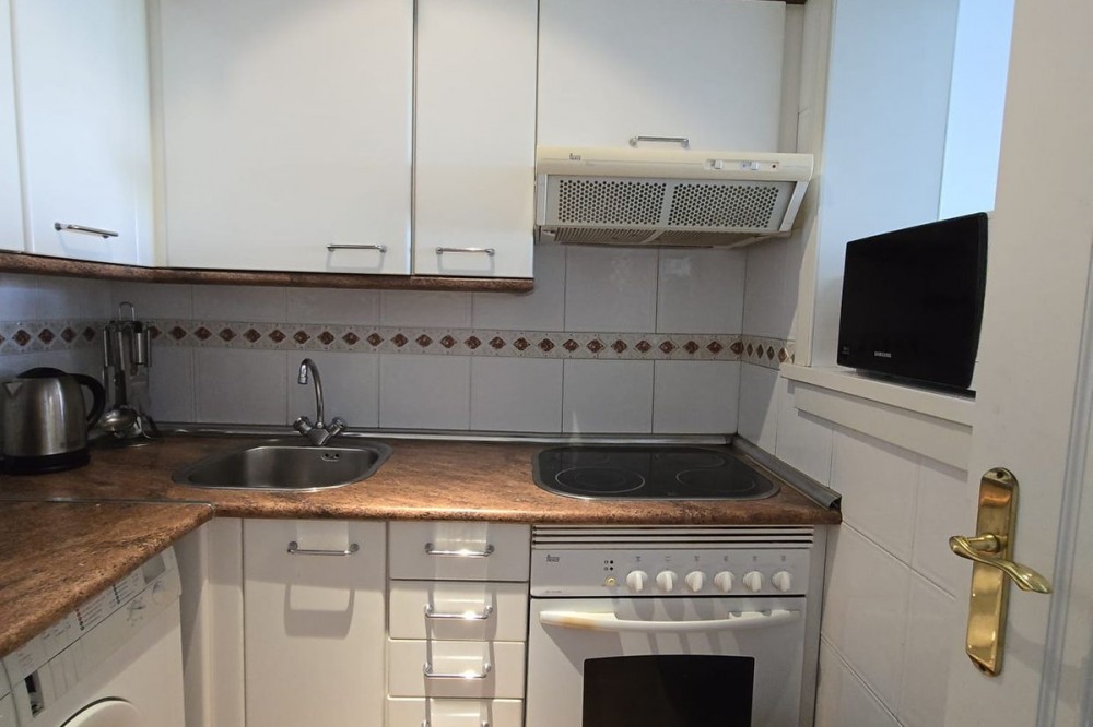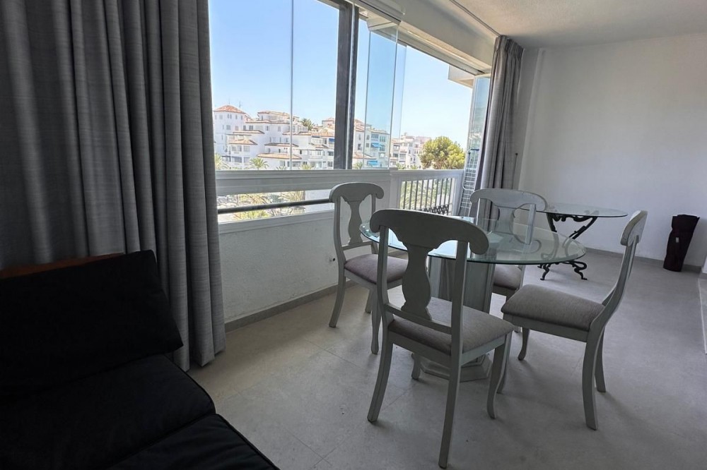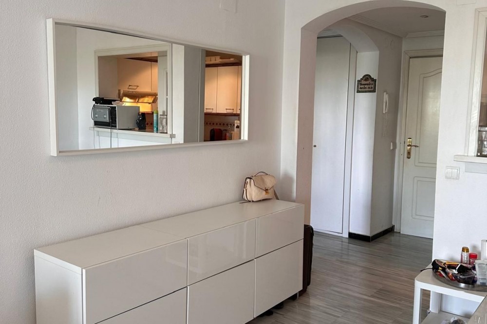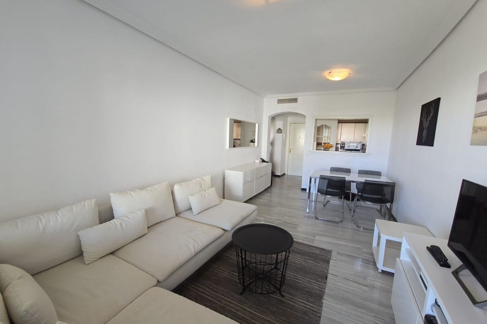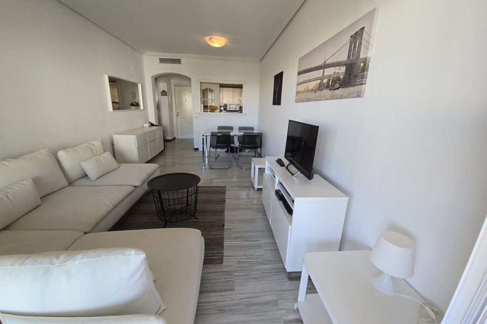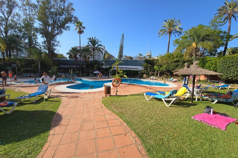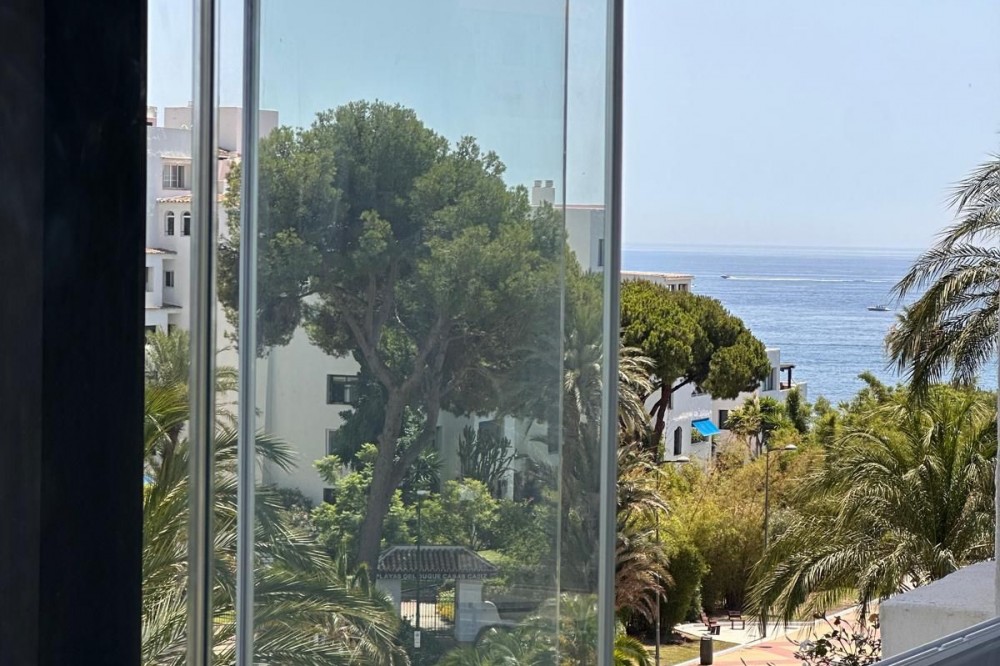- Flat for sale within walking distance to the luxury shops of Puerto Banus, 5 minutes walking distance to the port, shopping centre and restaurants. The flat is located in a beautiful urbanization with gardens and swimming pool, 24h security. It consists of a living-dining room, kitchen with opening to the living room, 1 bedroom with wardrobes, 1 complete bathroom, and a terrace with beautiful sea and mountain views. Sold with garage space, storage room. Selling price 480.000€.