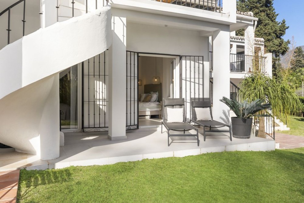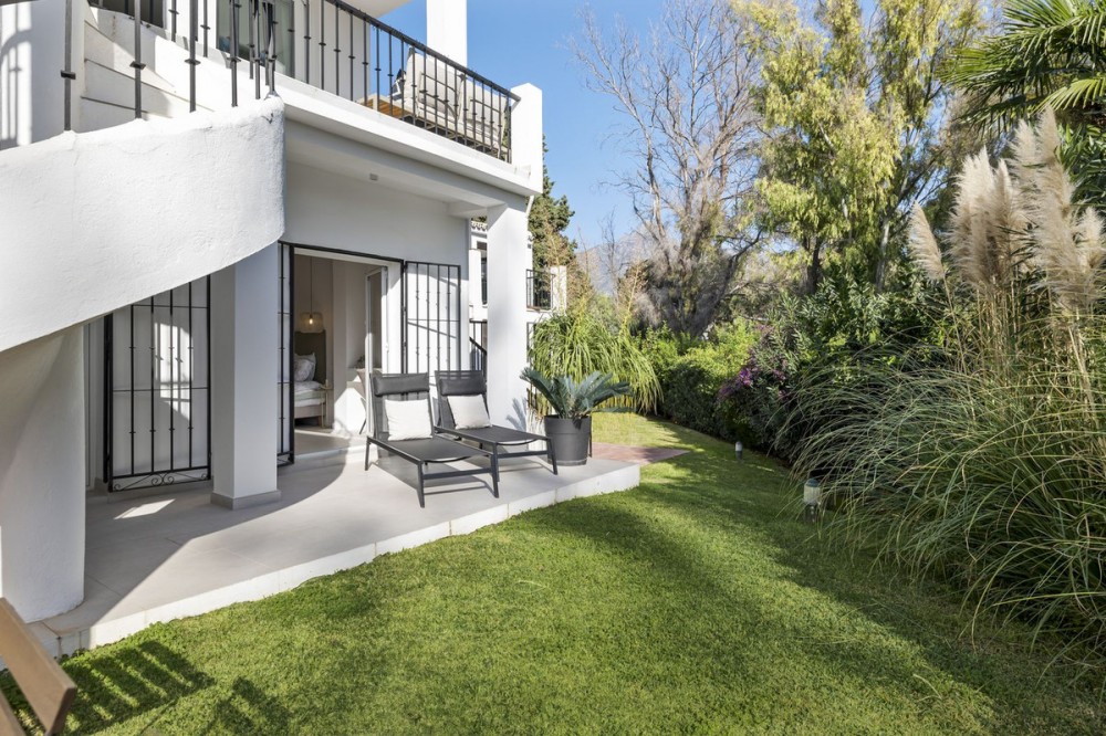 - Amazing townhouse (4 Bed) in Aloha Golf-Marbella Welcome to this stunning semi-detached duplex-style home, located in the heart of the golf area, with direct views of Aloha Golf (in the La Retranca urbanization, with an amazing communal pool). The location is perfect: just a short distance from the prestigious Aloha College, all essential amenities, the sea, and the vibrant Puerto Banús. Here, you’ll find the perfect balance between tranquility and all the charm this area has to offer! Spacious and well-designed living areas The home is spread over two levels. On the upper floor, you’ll find two bedrooms, offering plenty of space for your family, guests, or even a home office. The living and dining areas have access to a spacious terrace facing south-southwest, featuring a barbecue and a relaxing lounge area, ideal for enjoying the outdoors. On the lower floor, there are three additional bedrooms, both with direct access to a landscaped garden with a terrace, perfect for soaking up the sun and enjoying the green surroundings. A comfortable and unique lifestyle, A must see !!! This property is more than just a house; it’s a place where you can enjoy a comfortable and practical lifestyle, with all amenities within easy reach. Call us quickly to arrange a viewing—we have the keys in the office!
