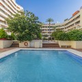 - LARGE PROPERTY 200 METERS FROM THE BEACH IN THE CENTER OF MARBELLA Fantastic large property, with a privileged location in the center of Marbella, 200 meters from the promenade and the beach, surrounded by all kinds of services (restaurants, supermarkets, banks, pharmacies...etc) and just a few minutes walk from the Old Town. Large renovated property consisting of a total of three bedrooms, three bathrooms, large living room with open plan and large terrace of more than 70m2. Established within an emblematic building with gardens and communal pool. Includes parking space. An ideal property for clients who want to enjoy a property in the center of Marbella ready to move into.