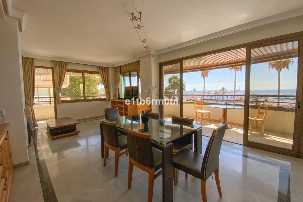- Location · Location · Location. This apartment could not have a better location. With panoramic unobstructed sea views, and in addition, mountain views this spectacular apartment is distributed in a spacious living room with access to the terraces of with spectacular views of the sea and the mountains, three bedrooms, three bathrooms, two en-suite, fully fitted kitchen. Currently in the process of being refurbished it will be ready to move into end of October 2025. Located In one of the best areas of Marbella is this exclusive south-facing building, the apartments are distributed one per floor. It is a great opportunity to acquire a unique home on the seafront of Marbella both to live all year round or as a vacation rental, close to all services, restaurants, shops, a shopping center, and just 5 minutes from the old town. It is sold with a car parking space and storage room.