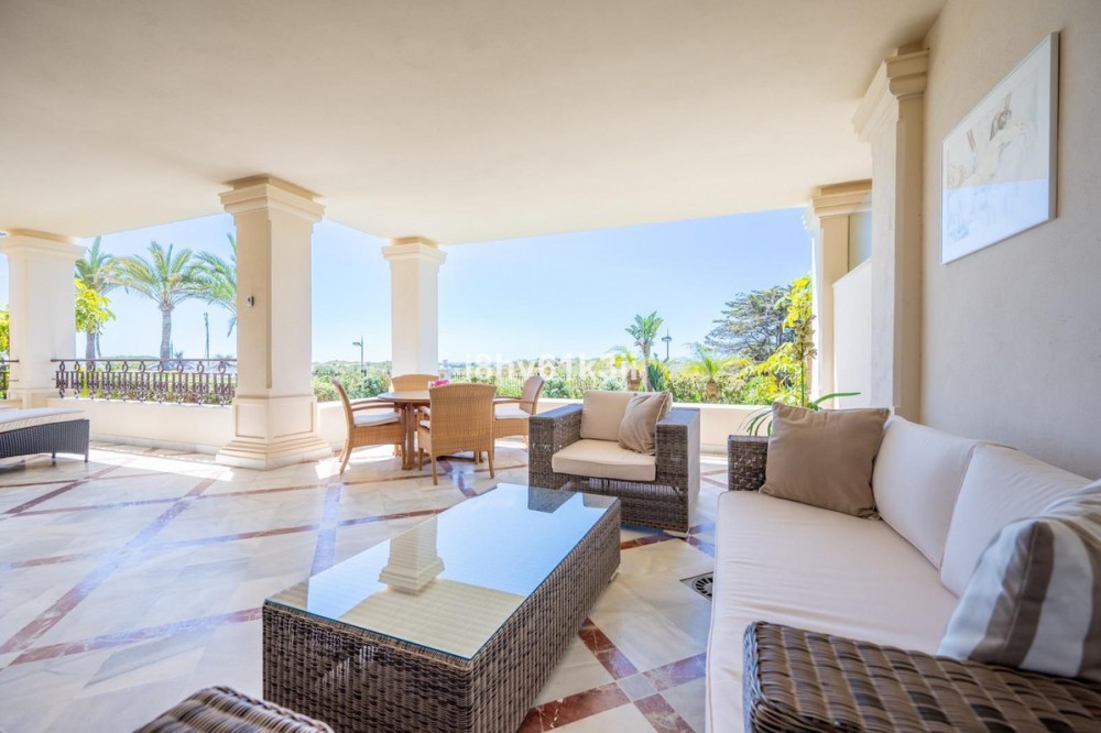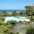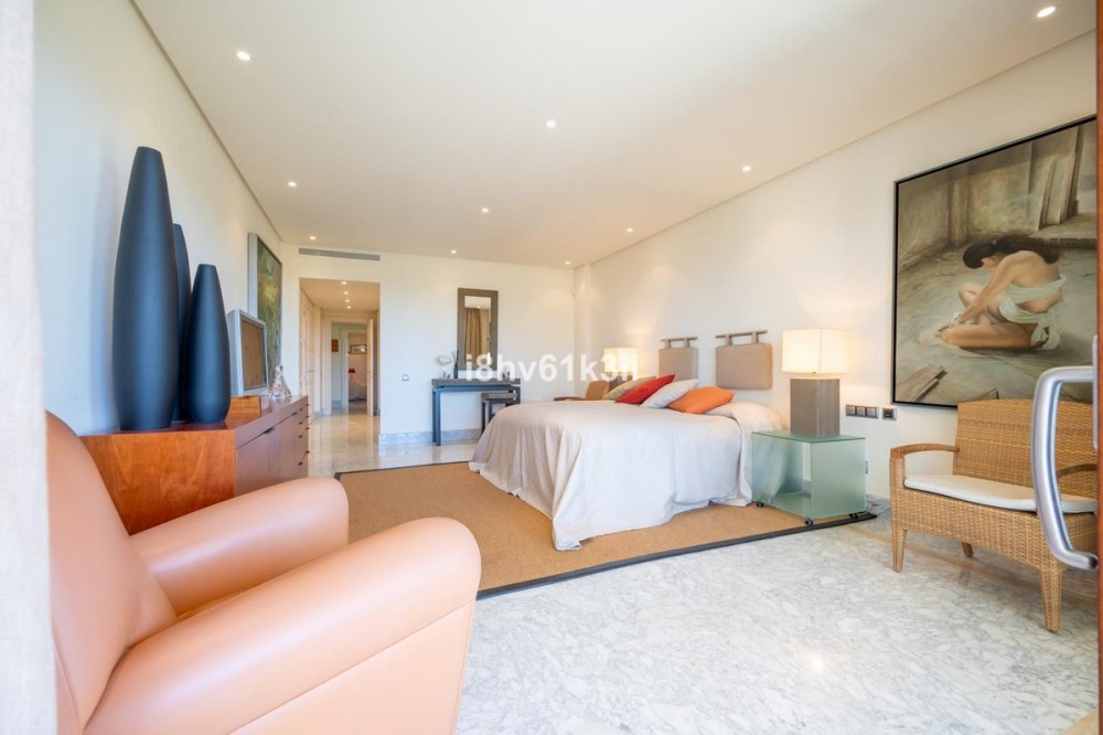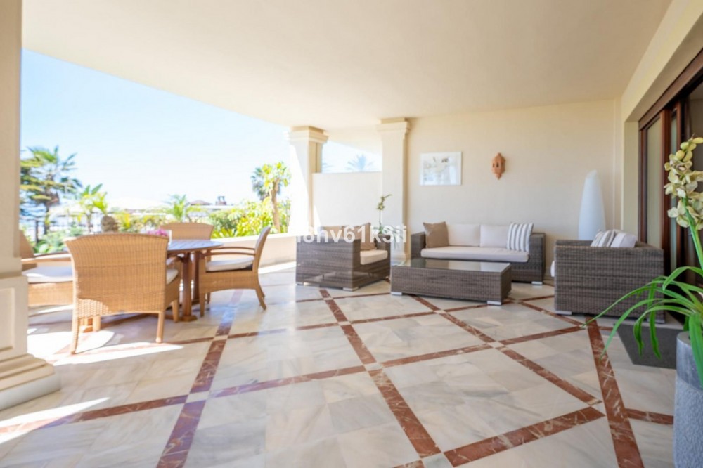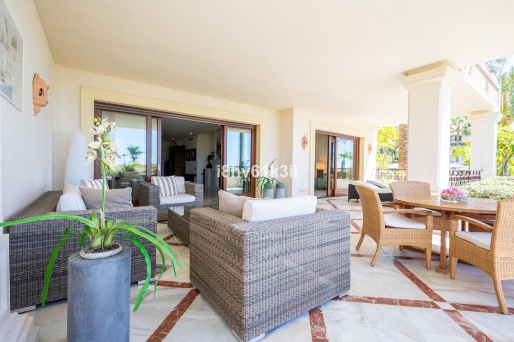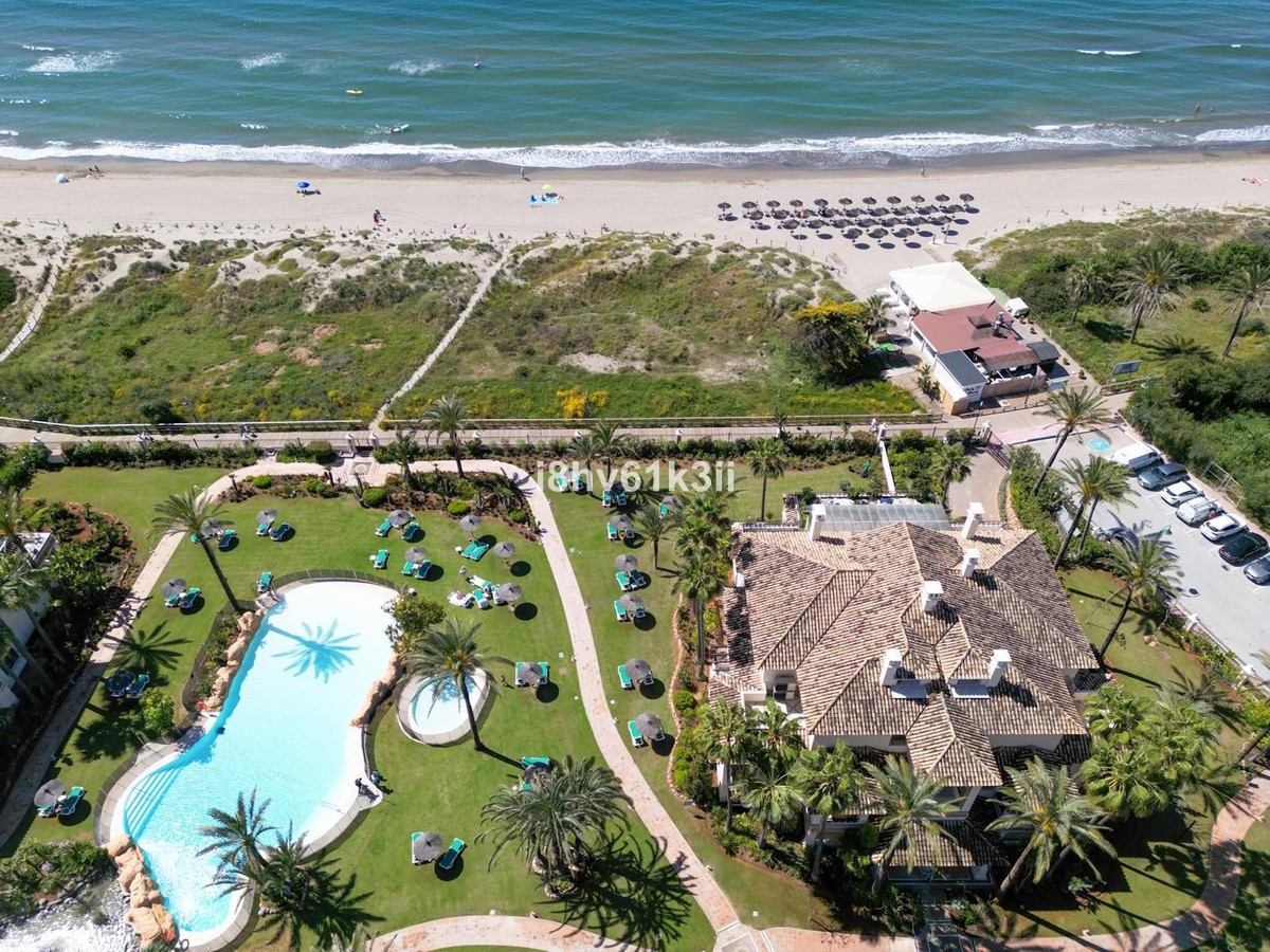 - The luxurious three-bedroom ground-floor apartment, front line beach in Los Monteros Playa, is finished to the highest of standards and taste. The property has just been beautifully refurbished including a brand new high-tech kitchen. It is perfectly positioned in one of the poolside apartment blocks, with stunning views of the sea and protected sand dunes. The apartment comprises a very spacious living- and dining room, with an open fire and direct access to the double terrace with sea views, a fully fitted kitchen, and a separate dining terrace and laundry room. Just off the main entrance hall is a guest bathroom. The left-wing comprises the 3 double bedrooms, all en-suite. The main bedroom's entrance has numerous built-in wardrobes, has direct access to the terrace, has sea views, and has a double bathroom with a very large shower. Further features: alarm, under-floor heating throughout, A/C, 2 closed underground parking spaces, storeroom, and marble floors.