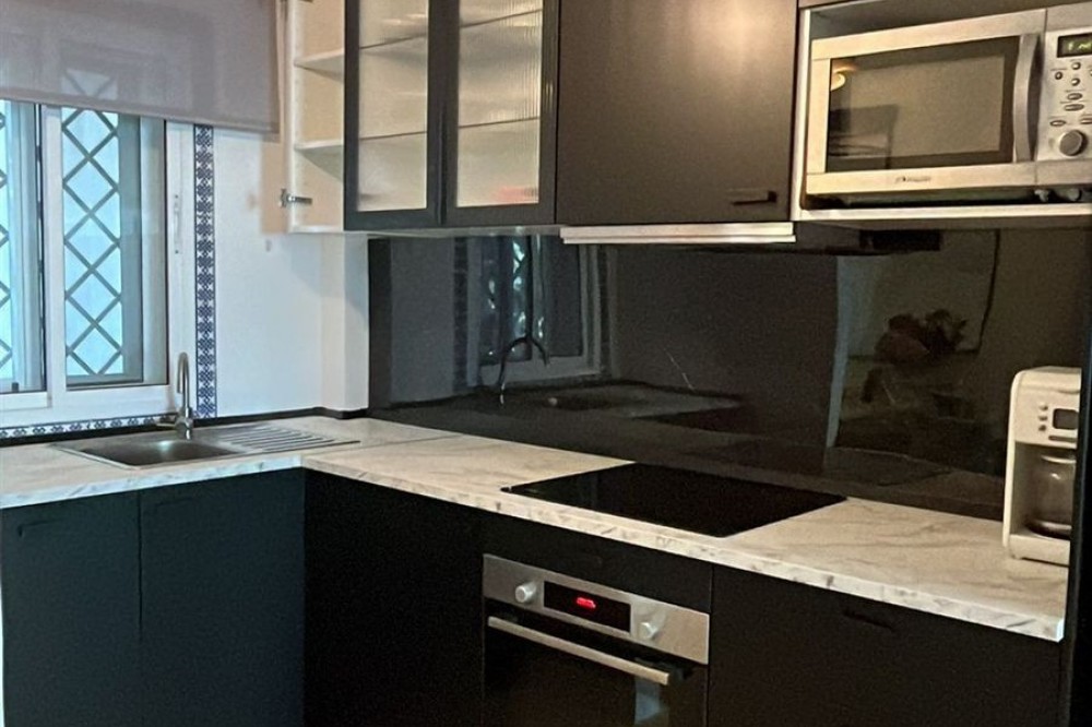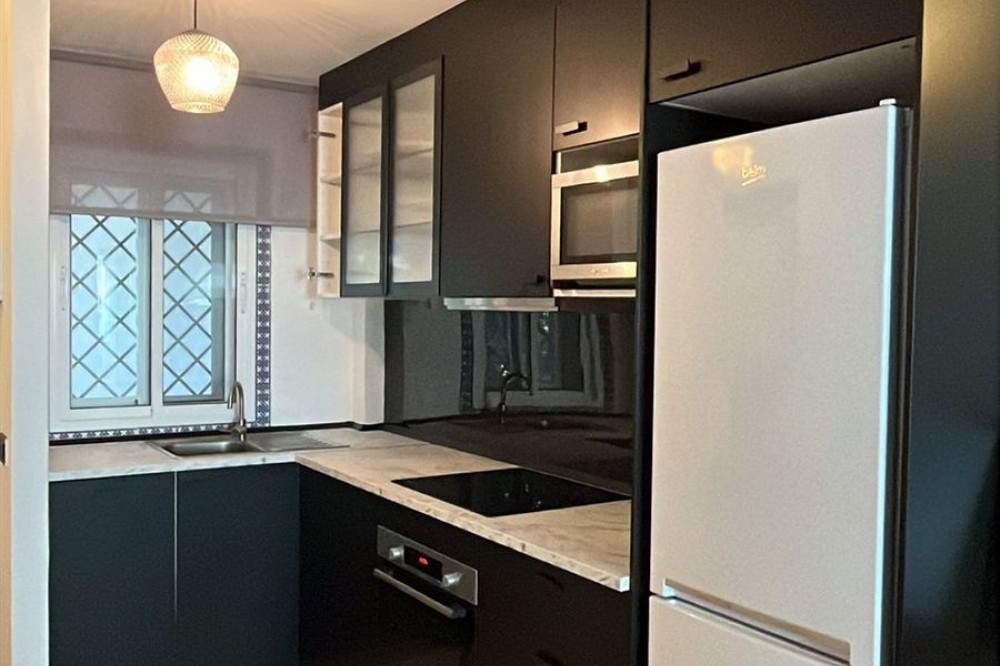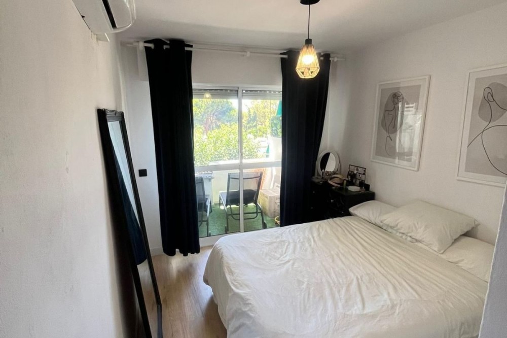 - Newly renovated apartment with aprox 5 min walk to the beach in Artola Baja area. The apartment building has approved rental license. It is a farmacy in the building. Parking is outside. There are parking spaces in the basement that you can purchase upon availibility. The apartment has gone thrue a few renovations like new floors, new kitchen with Bosch dishwasher and owen and integrated extraction fan. New Bathroom with walk in shower and washing machine. New doors in the apartment. New Bosch AC in bedroom and livingroom. L- shaped terrace with glass enclosure between new tiled terrace and to te open space of the terrace. The L-shaped terrace has two functions. One part of the terrace is a winter but it is beeing used as a play room for the owners childreen today. You can use it as a dining room to enjoy the beautiful sunset and views of the gardens in front. The enclosed winter garden can be opened to the other part of the terrace. This apartment is close to transport, farmacy, restaurants, schools and only 2 min drive to Cabopino and 10 min drive to Marbella Center. it is 40 minutes to Malaga Airport. This is a perfect holiday apartment with very good rental income or just enjoy a low maintanance cost apartment, very close to the beautiful beaches in Artola and Cabopino.