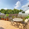 - A unique and unrepeatable property, a beautiful one-bedroom penthouse apartment with a large, private, sunny terrace and beautiful unobstructed views over the Old Town. Located on a quiet pedestrian street in Marbella's Old Town, very peaceful and quiet. The apartment has a separate bedroom, a bathroom with a shower and an exterior window, a cozy living room, and a fully equipped kitchen with a dining area, both with direct access to a fantastic outdoor terrace of aprox. 25 sqm, where there are different areas to relax or sunbathe on the sun lounger, or to sit and eat outside. The apartment is in excellent condition and ready to move into. This small building has only three neighbors. Additionally, there is another fantastic terrace on the building's roof where there is a small communal room, currently used as a cleaning and laundry room for this apartment. Ideal for tourist use with extremely high profitability.