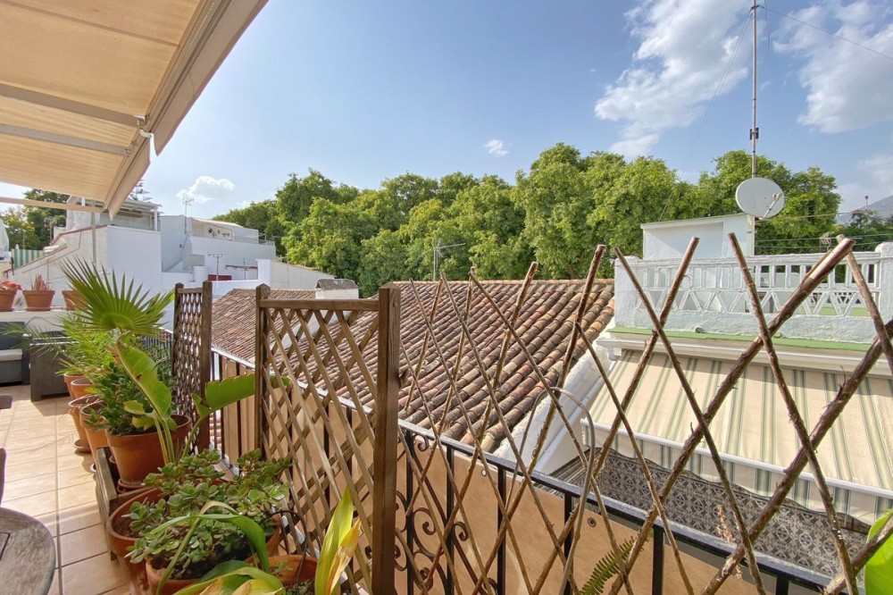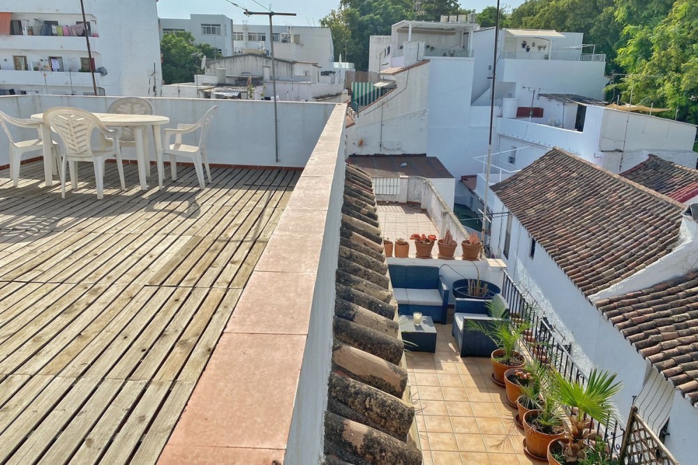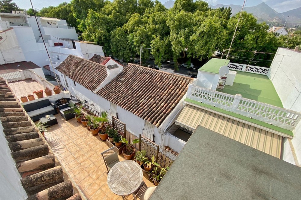 - A unique and unrepeatable property, a beautiful one-bedroom penthouse apartment with a large, private, sunny terrace and beautiful unobstructed views over the Old Town. Located on a quiet pedestrian street in Marbella's Old Town, very peaceful and quiet. The apartment has a separate bedroom, a bathroom with a shower and an exterior window, a cozy living room, and a fully equipped kitchen with a dining area, both with direct access to a fantastic outdoor terrace of aprox. 25 sqm, where there are different areas to relax or sunbathe on the sun lounger, or to sit and eat outside. The apartment is in excellent condition and ready to move into. This small building has only three neighbors. Additionally, there is another fantastic terrace on the building's roof where there is a small communal room, currently used as a cleaning and laundry room for this apartment. Ideal for tourist use with extremely high profitability.
