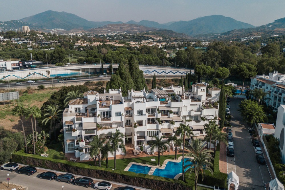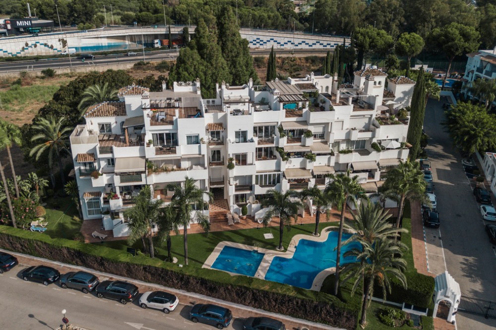 - Welcome to your dream getaway on the Costa del Sol — a bright and spacious apartment designed for effortless beachside living, just a 12-minute walk from the world-famous Puerto Banús. Located only 200 meters from the beach, this apartment offers a perfect blend of comfort, style, and convenience. Enjoy sun-filled mornings and shaded afternoons on the large, private terrace — ideal for relaxing, dining, or simply soaking up the Mediterranean lifestyle. Part of the terrace is covered, allowing you to retreat from the heat when needed, while still enjoying the outdoors. The apartment features a generous open-plan living room with direct access to the terrace, creating a seamless indoor-outdoor living experience. The main bedroom includes a private en-suite bathroom and its own access to the terrace. One of the additional bedrooms also opens to the terrace, while another has access to a separate, private balcony — perfect for morning coffee or evening wine. Everything you need is right at your doorstep. A hotel located directly in front of the apartment offers the luxury of enjoying a delicious breakfast whenever you like. A taxi station is also conveniently located just outside, making transportation easy — though you might never need it with everything within walking distance. On-site amenities, beautifully maintained grounds, and a prime location near shops, restaurants, and the marina make this apartment an ideal choice for those seeking a low-maintenance, high-quality lifestyle by the sea. Whether you're looking for a holiday home, a rental investment, or a permanent residence, this property offers the ultimate in relaxed, luxury coastal living — just minutes from the heart of Puerto Banús.