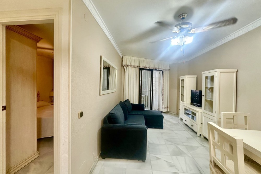 - BEACHSIDE GROUND FLOOR APARTMENT – REFORM OPPORTUNITY IN MARBELLA DEL MAR WITH TOURIST LICENSE Fantastic opportunity in the sought-after Marbella del Mar complex, set directly on the beachfront and only 10 minutes’ walk to Marbella Old Town. This 1-bedroom, 1-bathroom ground floor apartment offers a spacious terrace with pool views and lateral sea views, ideal to reform and create your dream coastal residence or a profitable holiday rental. The gated community features landscaped gardens, two swimming pools, and direct access to the promenade and sandy beaches. Short-term holiday rentals are allowed, making this property a strong investment option. With renovation and modern updates, this apartment has excellent potential as a stylish beachside home or a high-yield rental in one of Marbella’s most prestigious addresses. Location Marbella – Marbella del Mar, Beachfront, Beachside with lateral sea views. Ground Floor Apartment, Marbella, Costa del Sol. 1 Bedroom, 1 Bathroom, Built 66 m², Terrace 15 m². Setting : Beachfront, Town, Commercial Area, Beachside, Close To Golf, Close To Port, Close To Shops, Close To Sea, Close To Town, Close To Schools, Close To Marina, Urbanisation, Front Line Beach Complex. Orientation : South. Condition : Good, Renovation Required. Pool : Communal. Views : Sea, Garden, Pool, Urban. Features : Covered Terrace, Lift, Fitted Wardrobes, Near Transport, Private Terrace, Marble Flooring. Furniture : Fully Furnished. Kitchen : Fully Fitted. Garden : Communal. Security : Gated Complex, Entry Phone, 24 Hour Security. Parking : Street. Utilities : Electricity. Category : Bargain, Cheap, Investment, Reduced, Resale.