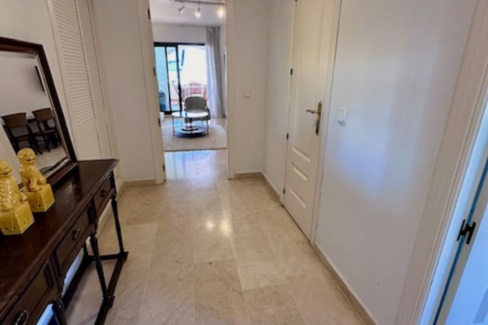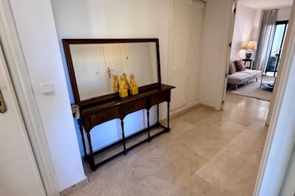 - Magnificent apartment for sale in one of the best areas of San Pedro de Alcantara (Marbella). Nueva Alcantara, on the beachfront and of course with wonderful sea views and a pool. This magnificent property is located right next to the Nueva Alcantara Paddle Club, walking distance to the sea, and strategically within walking distance of the town of San Pedro and its shops. The location is ideal! We describe the property as follows: The apartment is located on the first floor of the building. A very spacious entrance hall, a bright and spacious kitchen to the right, with a large window overlooking the community, and a separate laundry area. In the hallway, we find a guest bathroom and enter the spacious living-dining room with access to a large terrace (approximately 25 m2) with direct views of the pool and the sea! The home has three magnificent bedrooms, two of which are quite spacious. The master bedroom has an en-suite bathroom, and all have balconies overlooking the beautiful development. The third bedroom is slightly smaller and includes a study area. Here, we have another full bathroom shared with the two bedrooms (the home has two full bathrooms and a guest toilet). This is a very practical and bright apartment, ideal for a large family, and above all, in a prime location, where we can walk to the sea and enjoy life without having to use the car. The development includes a concierge, swimming pools, and beautiful gardens. The apartment has one underground garage for sale. Don't hesitate to call us to schedule your visit to the property. We'll be happy to assist you!