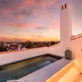 - Luxurious Duplex Penthouse in Exclusive El Dorado, Nueva Andalucía – Stunning Sea Views, Private Plunge Pool, and Prime Location! Elevate your lifestyle in this exquisite duplex penthouse, nestled in the highly sought-after El Dorado urbanization in Nueva Andalucía – a true epitome of modern Scandinavian elegance and comfort. Spanning 135 m² across two floors on the 3rd level, this fully furnished property boasts 3 bedrooms and 3 bathrooms, designed for seamless luxury living with a proven rental track record, including a valid First Occupation License (LPO) and active tourist license. The main floor features a bright open-concept kitchen equipped with top-of-the-line appliances, flowing effortlessly into a spacious living area that opens onto a south-facing terrace. This outdoor haven includes a dining table, high bar, and barbecue zone, all overlooking the expansive communal pool. The upper floor is equally captivating, with two en-suite bedrooms: the master suite complete with a walk-in closet and access to a private terrace featuring a heated plunge pool and breathtaking panoramic sea views. The second bedroom offers a west-facing terrace with serene mountain vistas, perfect for afternoon unwinding. Key Features: Outdoor Excellence: Three terraces (two south-facing and one west-facing) for sun-soaked relaxation, plus lush communal gardens and a large swimming pool. Secure and Convenient: Gated community with security, two underground parking spaces, and low community fees. Contemporary Furnishings: Fully equipped in a sleek modern style, ready for immediate occupancy or high-yield rentals. Unbeatable Location: Steps from Centro Plaza's restaurants, supermarkets, and shops; close to the beach and glamorous Puerto Banús, blending convenience with exclusivity. This duplex penthouse isn't just a home – it's a savvy investment in luxury, functionality, and profitability on the Costa del Sol. Contact us today to arrange a viewing and secure this exceptional opportunity!